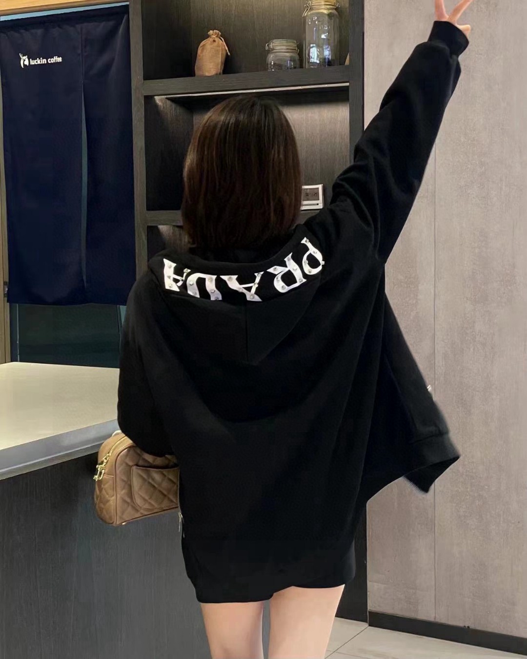 这款衣服是AAAAA 1:1 质量 (非常棒). 使用了和原版一模一样的材料. 商标部分也保持了和普拉达/Prada一样. 图片拍摄是实物衣服拍摄, 您所收到的实物保证和我们图片一模一样.