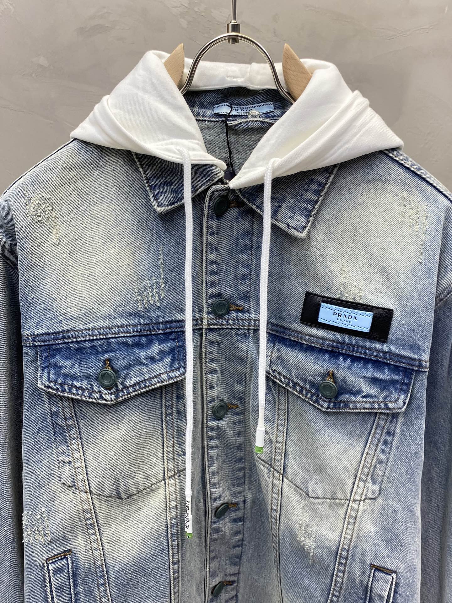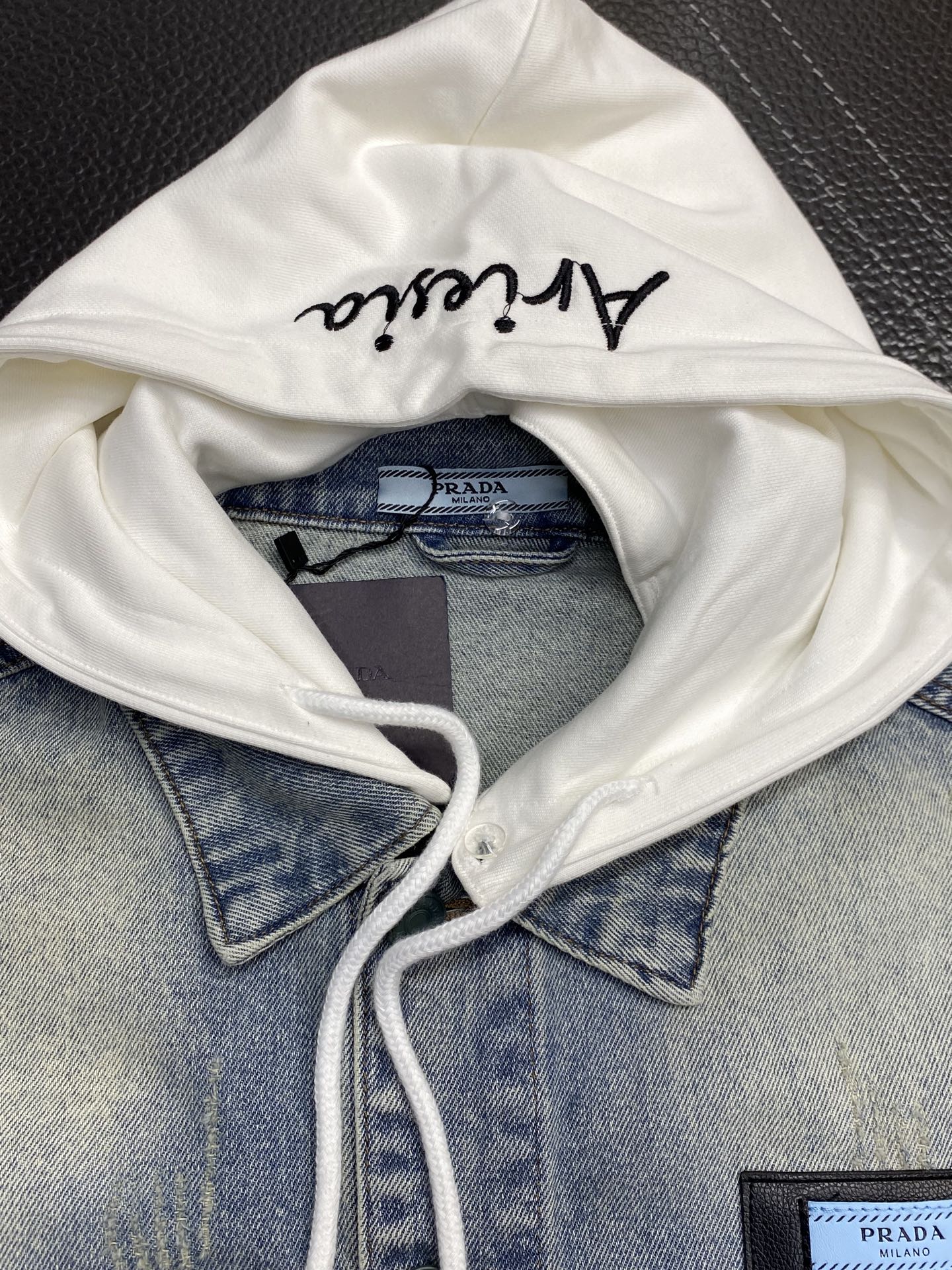 这款衣服是AAAAA 1:1 质量 (非常棒). 使用了和原版一模一样的材料. 商标部分也保持了和普拉达/Prada一样. 图片拍摄是实物衣服拍摄, 您所收到的实物保证和我们图片一模一样.