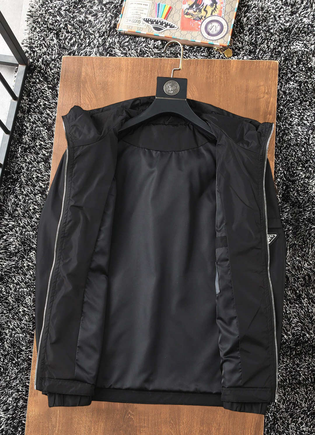 这款衣服是AAAAA 1:1 质量 (非常棒). 使用了和原版一模一样的材料. 商标部分也保持了和普拉达/Prada一样. 图片拍摄是实物衣服拍摄, 您所收到的实物保证和我们图片一模一样.