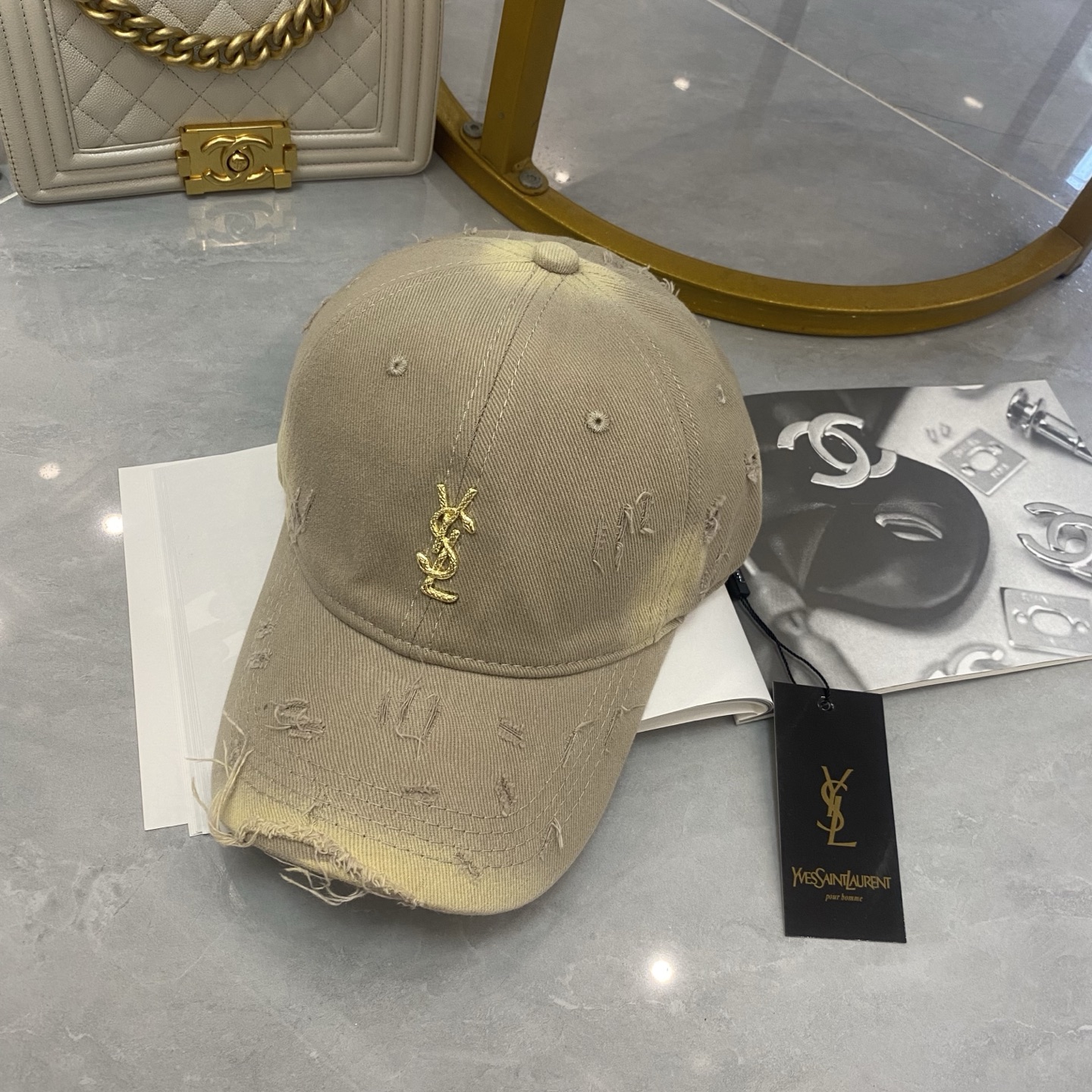 这款帽子是AAAAA 1:1 质量 (非常棒). 使用了和原版一模一样的材料. 商标部分也保持了和圣罗兰/Saint Laurent一样. 图片拍摄是实物帽子拍摄, 您所收到的实物保证和我们图片一模一样.