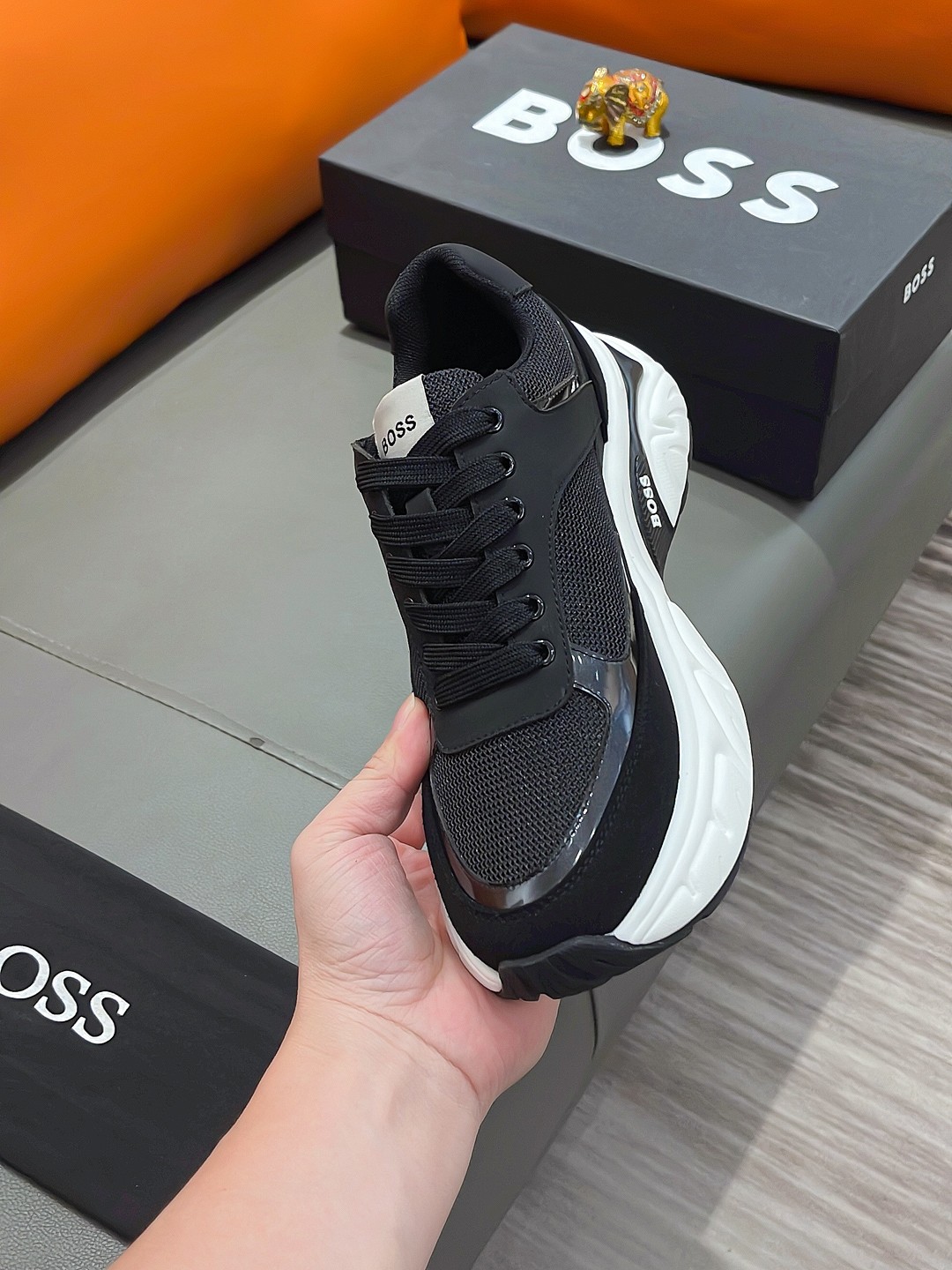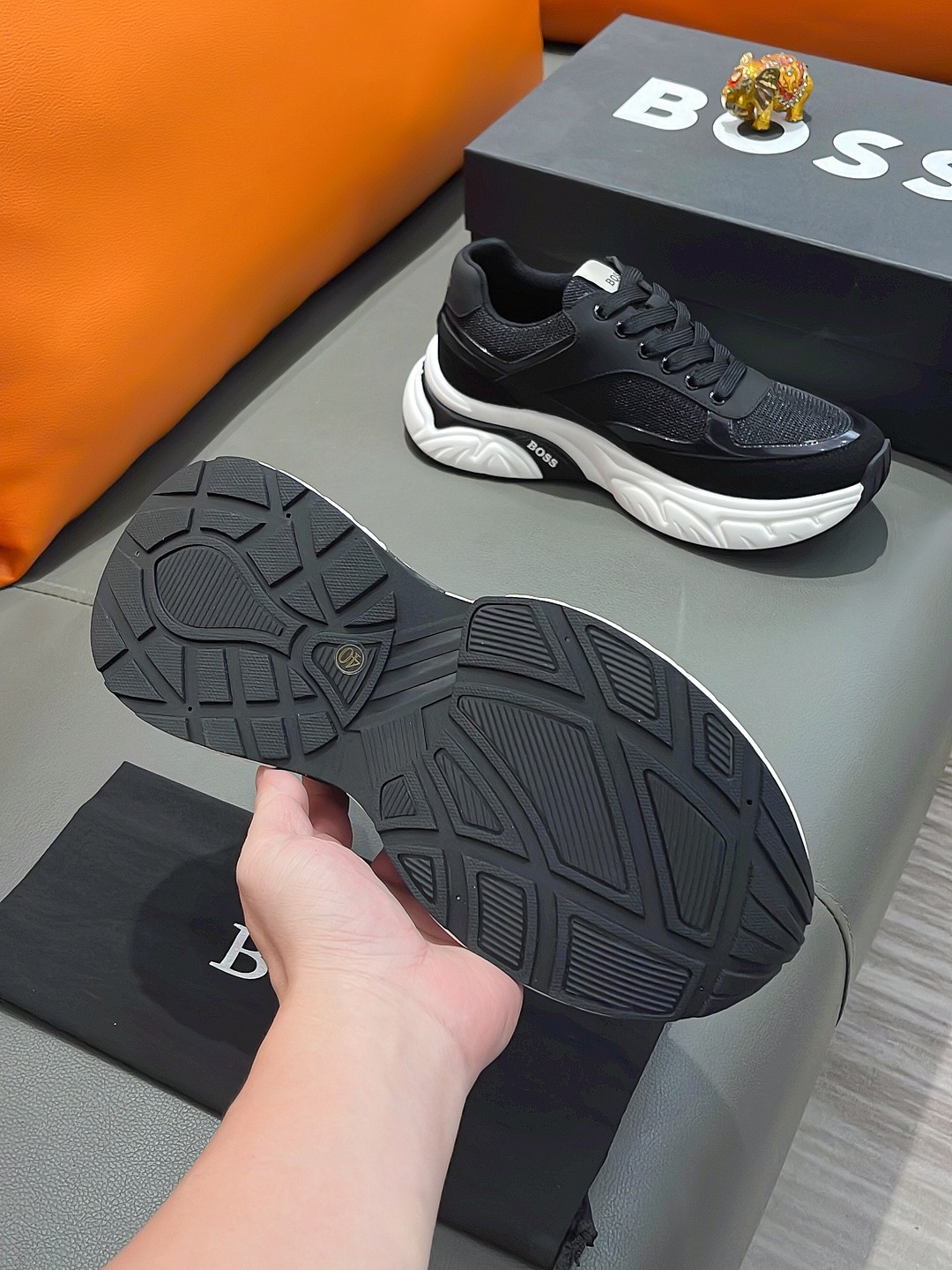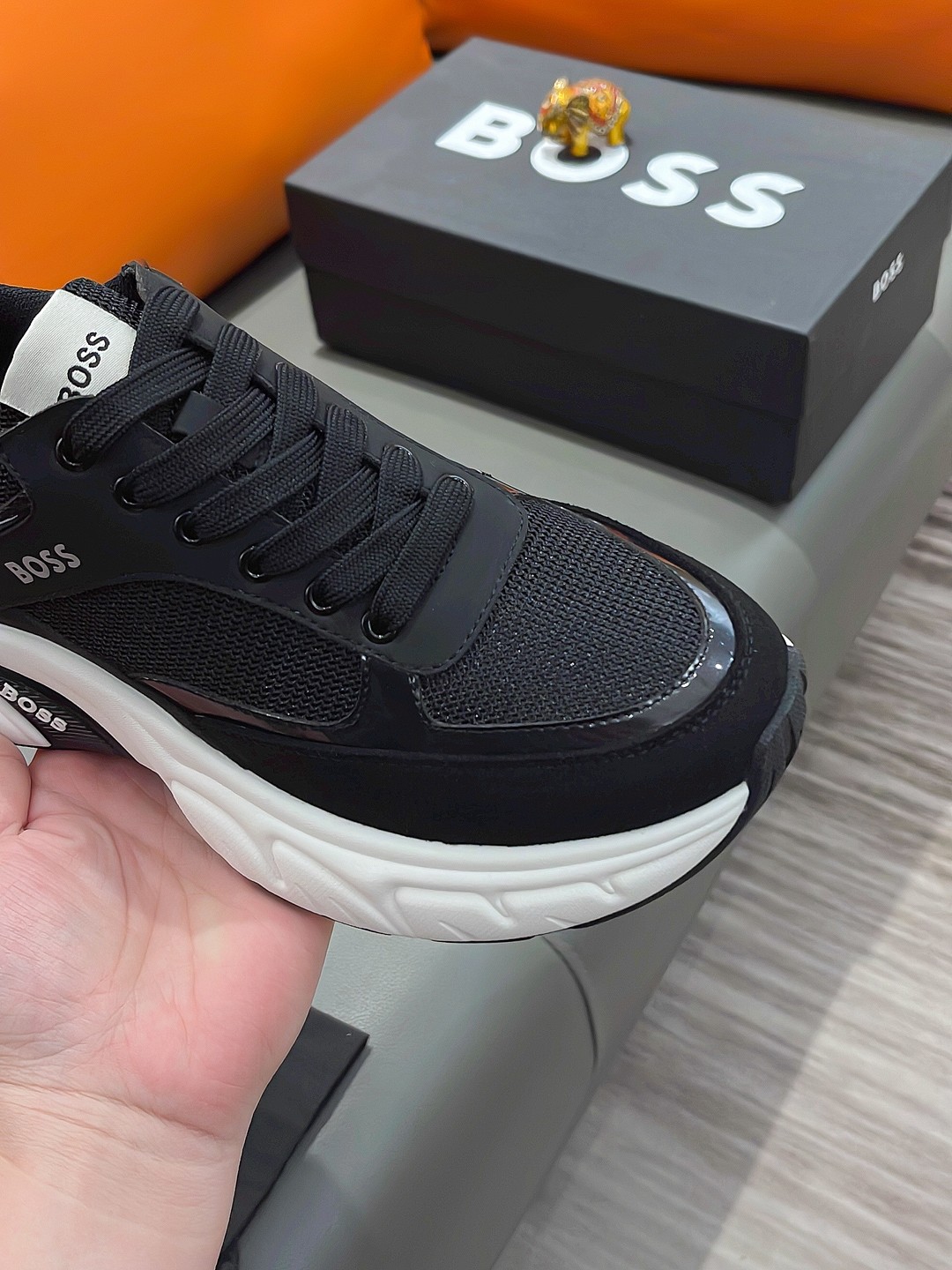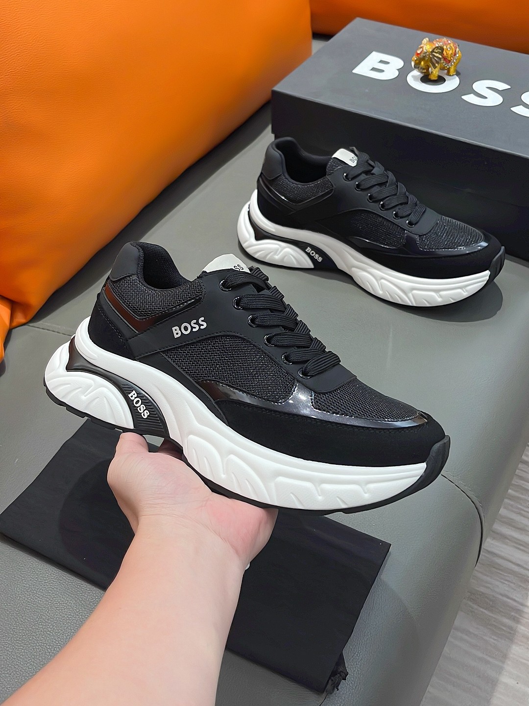 这款鞋子是AAAAA 1:1 质量 (非常棒). 使用了和原版一模一样的材料. 商标部分也保持了和BOSS一样. 图片拍摄是实物鞋子拍摄, 您所收到的实物保证和我们图片一模一样.