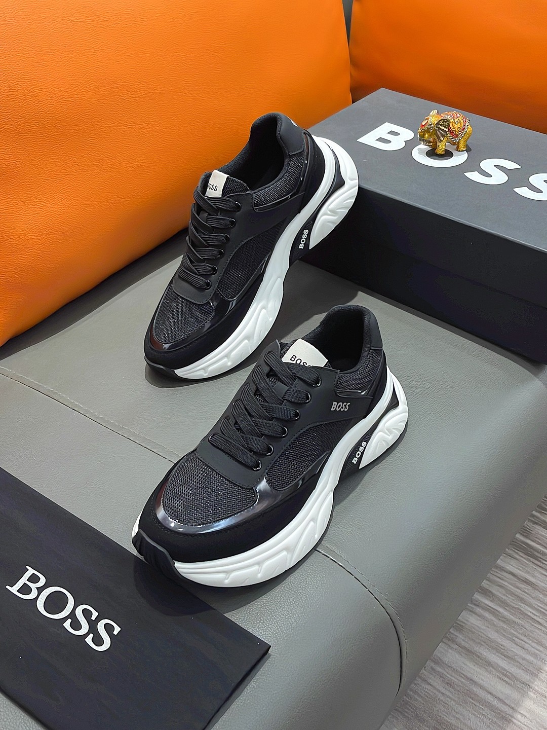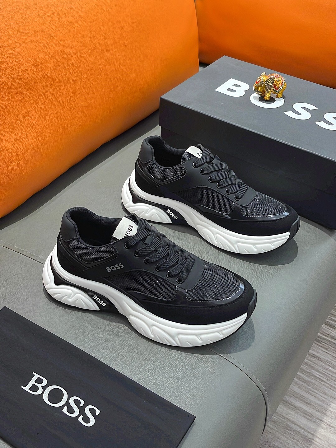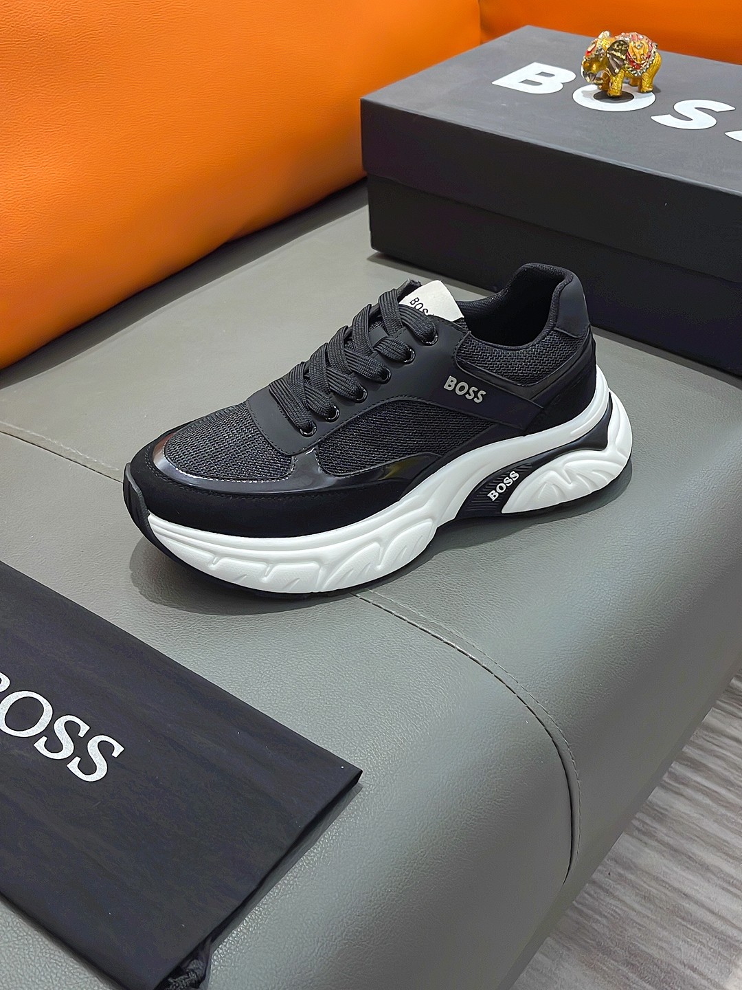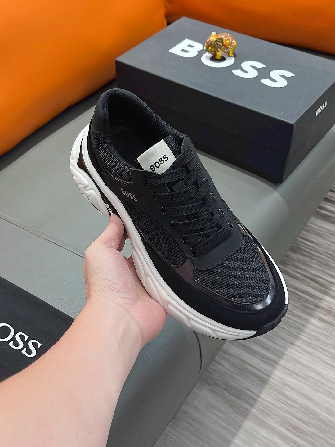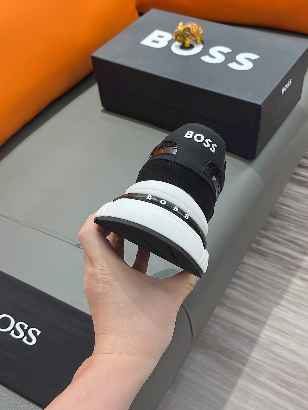 这款鞋子是AAAAA 1:1 质量 (非常棒). 使用了和原版一模一样的材料. 商标部分也保持了和BOSS一样. 图片拍摄是实物鞋子拍摄, 您所收到的实物保证和我们图片一模一样.