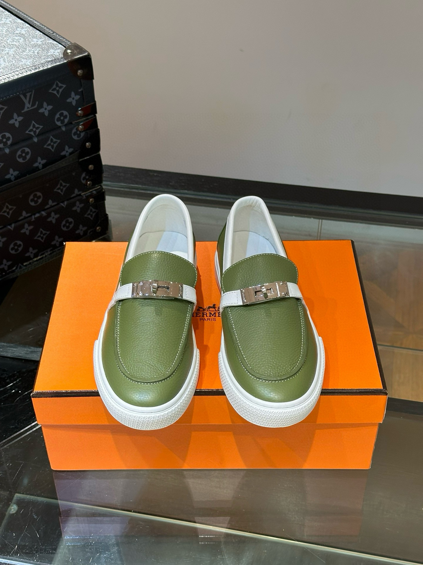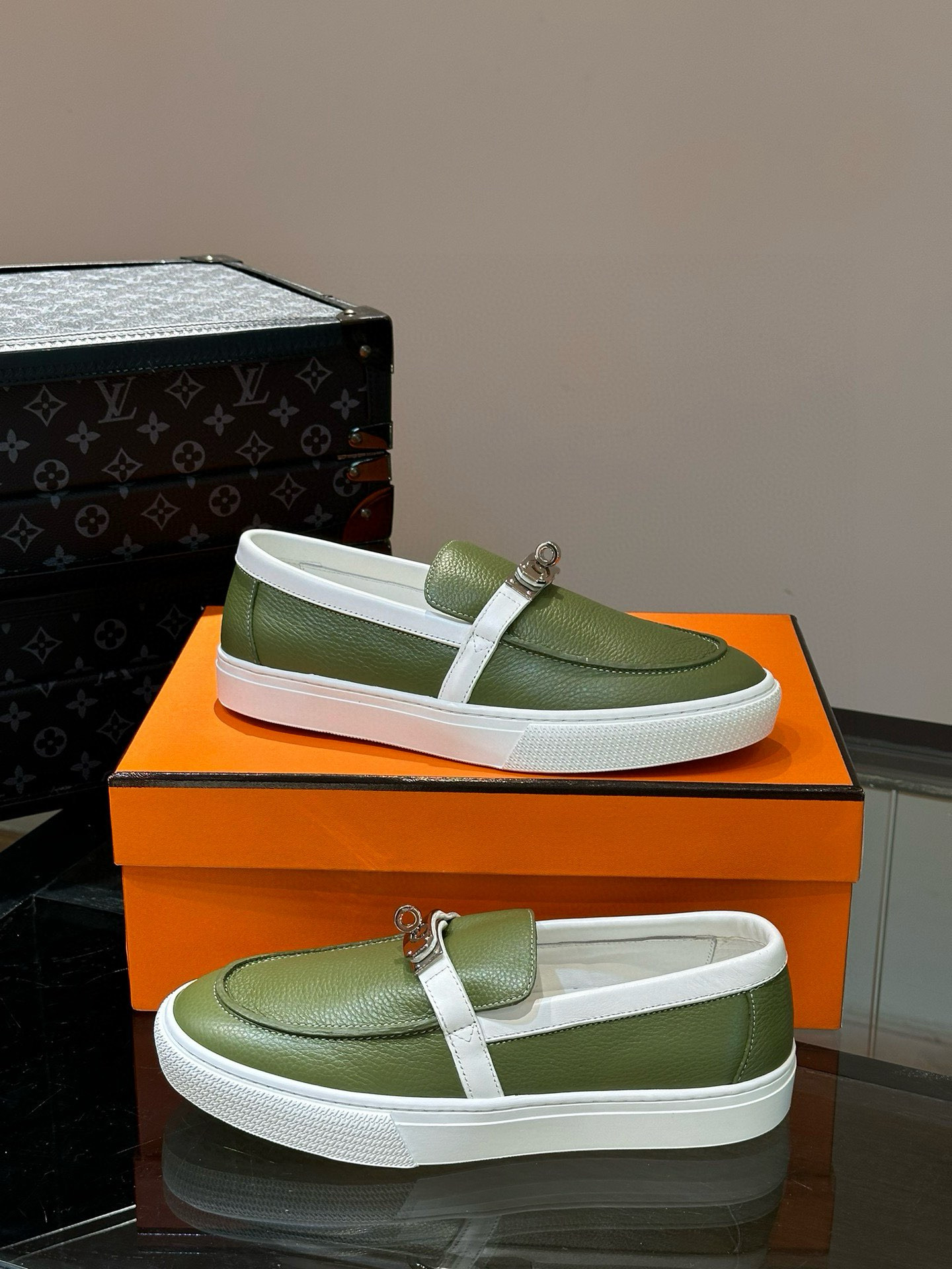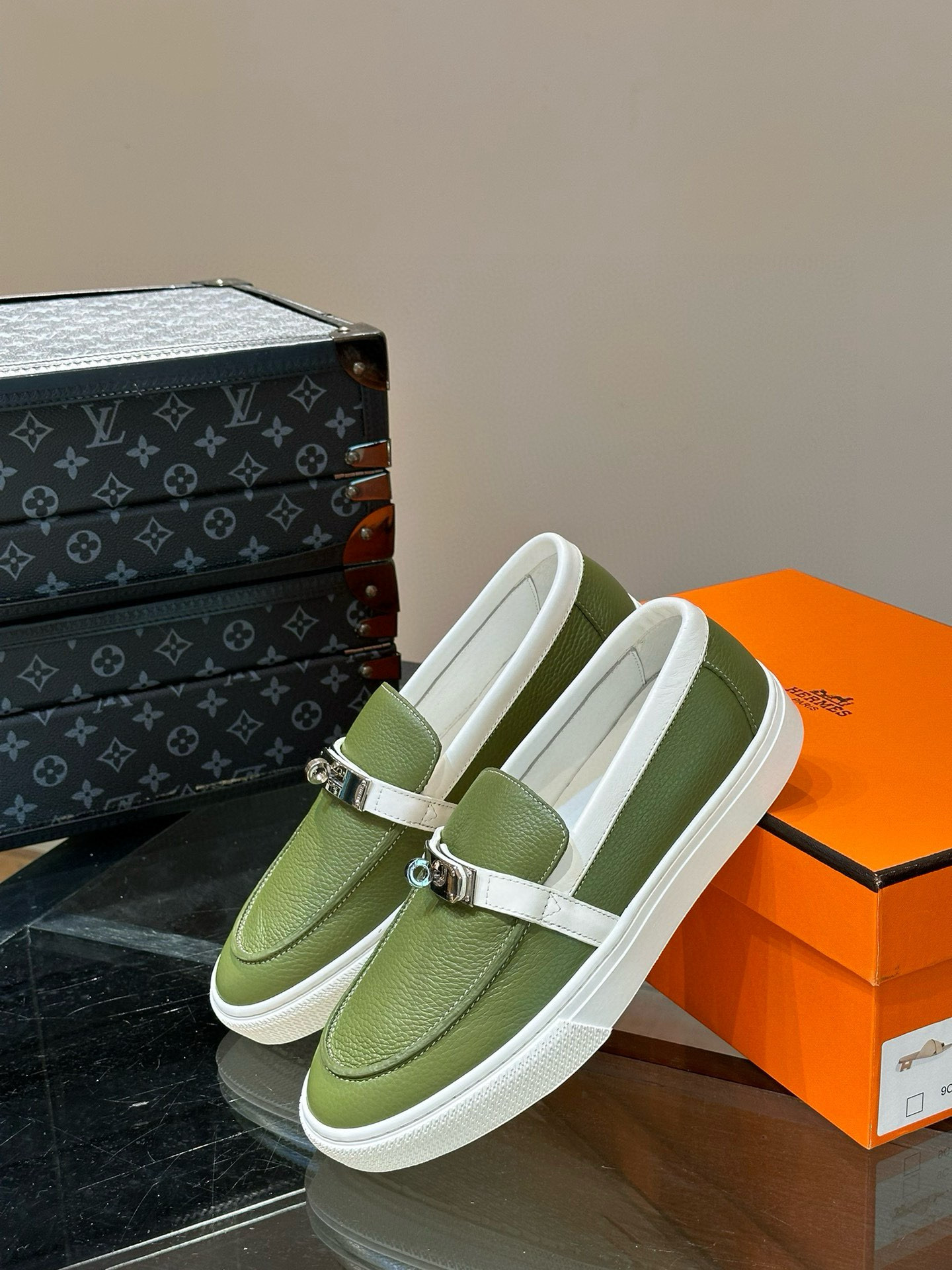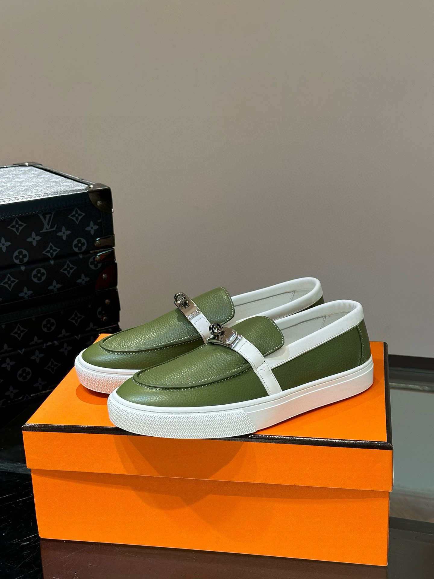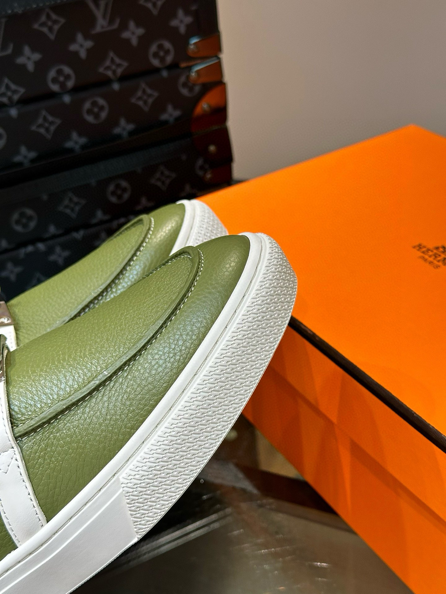 这款鞋子是AAAAA 1:1 质量 (非常棒). 使用了和原版一模一样的材料. 商标部分也保持了和爱马仕/Hermes一样. 图片拍摄是实物鞋子拍摄, 您所收到的实物保证和我们图片一模一样.