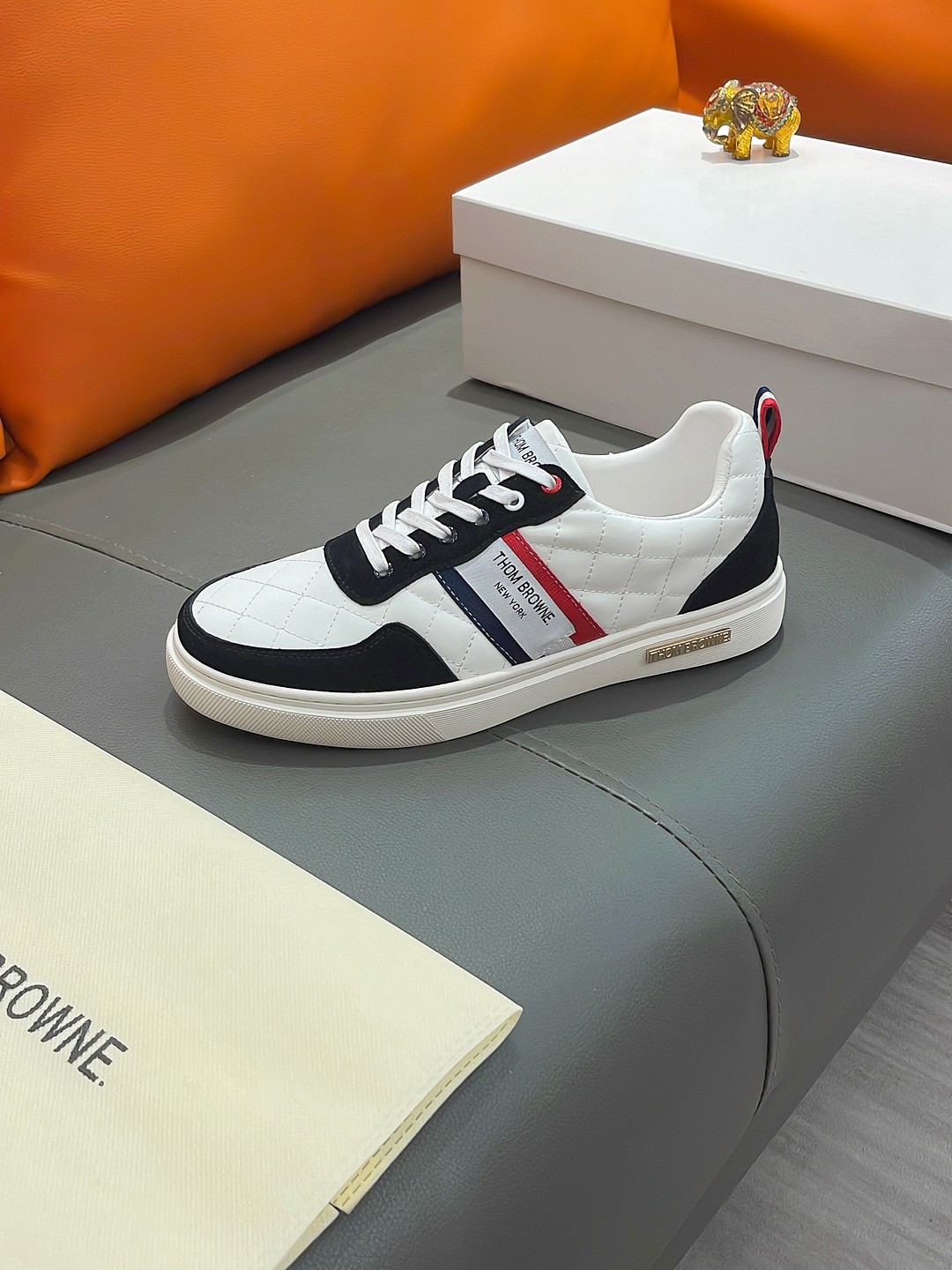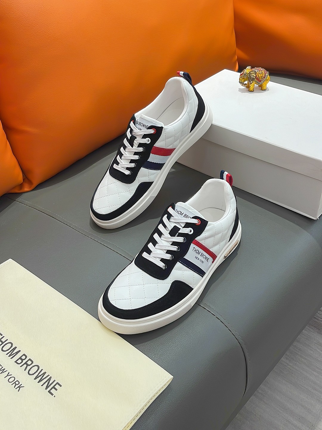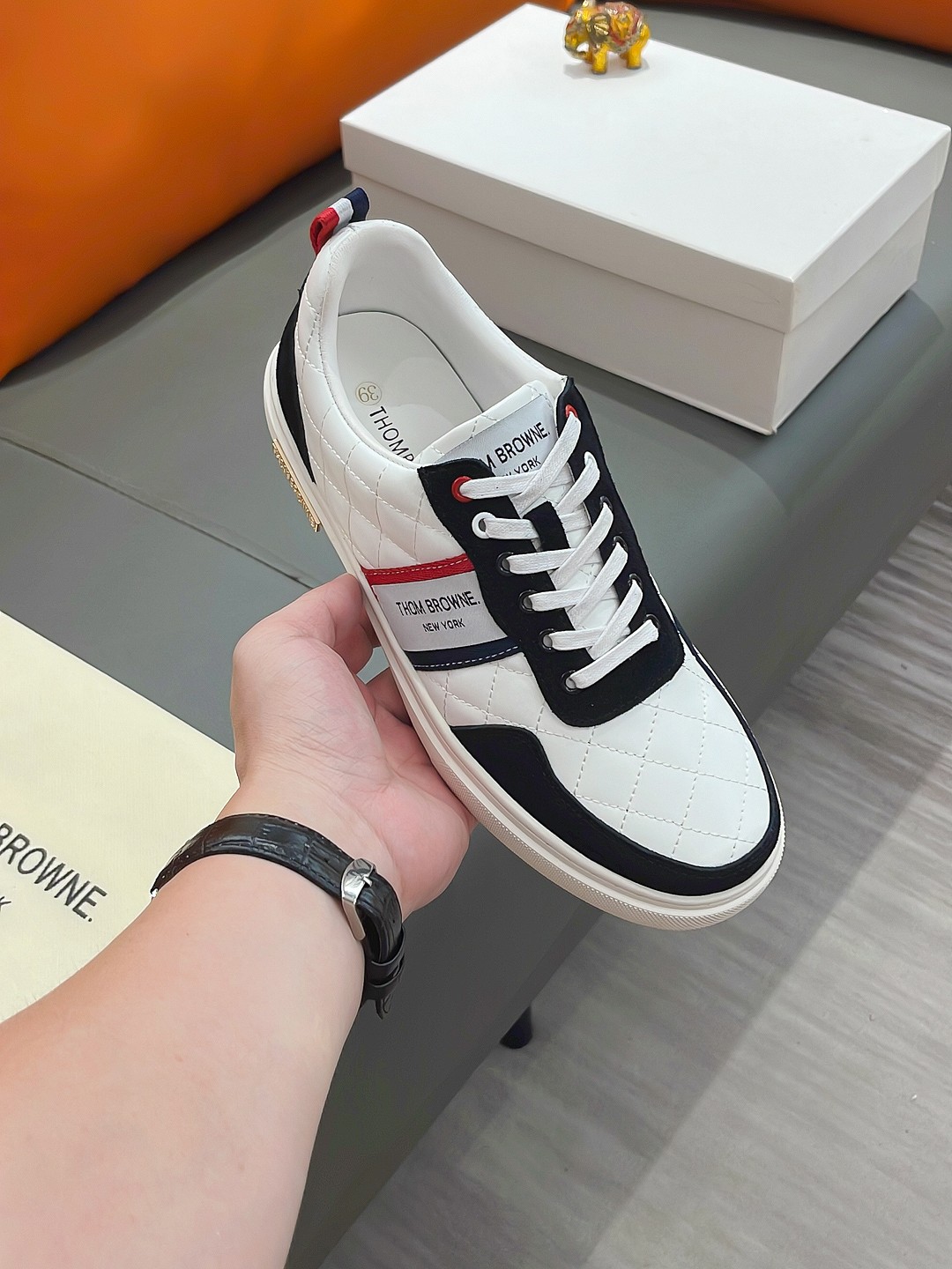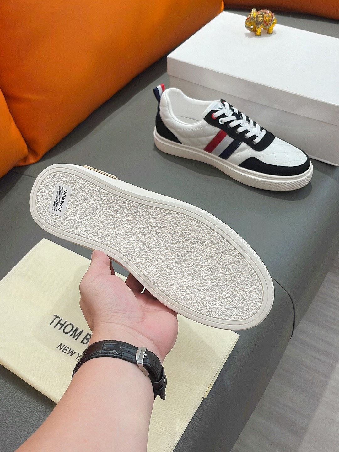 这款鞋子是AAAAA 1:1 质量 (非常棒). 使用了和原版一模一样的材料. 商标部分也保持了和汤姆布朗/Thom Browne一样. 图片拍摄是实物鞋子拍摄, 您所收到的实物保证和我们图片一模一样.