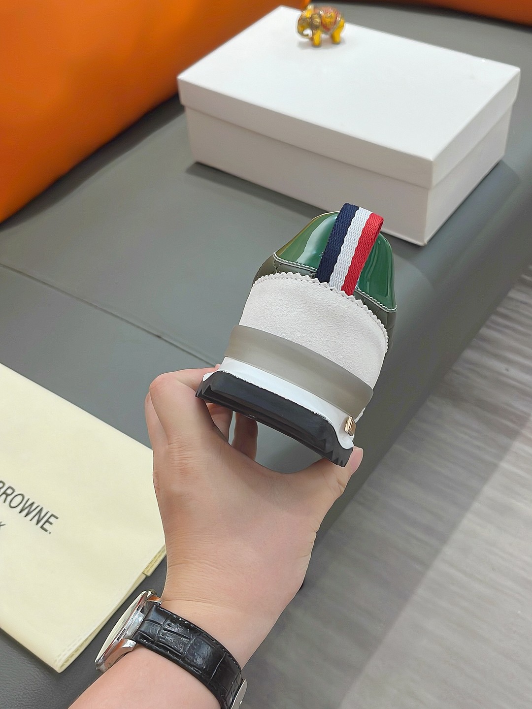 这款鞋子是AAAAA 1:1 质量 (非常棒). 使用了和原版一模一样的材料. 商标部分也保持了和汤姆布朗/Thom Browne一样. 图片拍摄是实物鞋子拍摄, 您所收到的实物保证和我们图片一模一样.