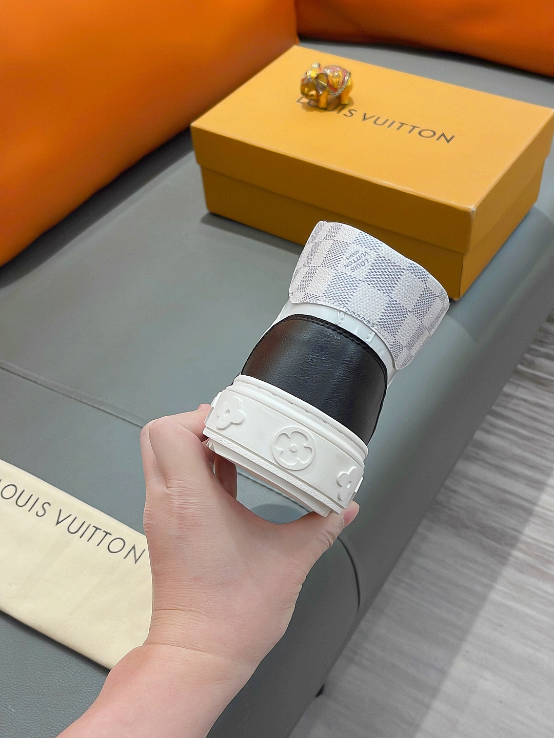 这款鞋子是AAAAA 1:1 质量 (非常棒). 使用了和原版一模一样的材料. 商标部分也保持了和路易威登/Louis Vuitton一样. 图片拍摄是实物鞋子拍摄, 您所收到的实物保证和我们图片一模一样.