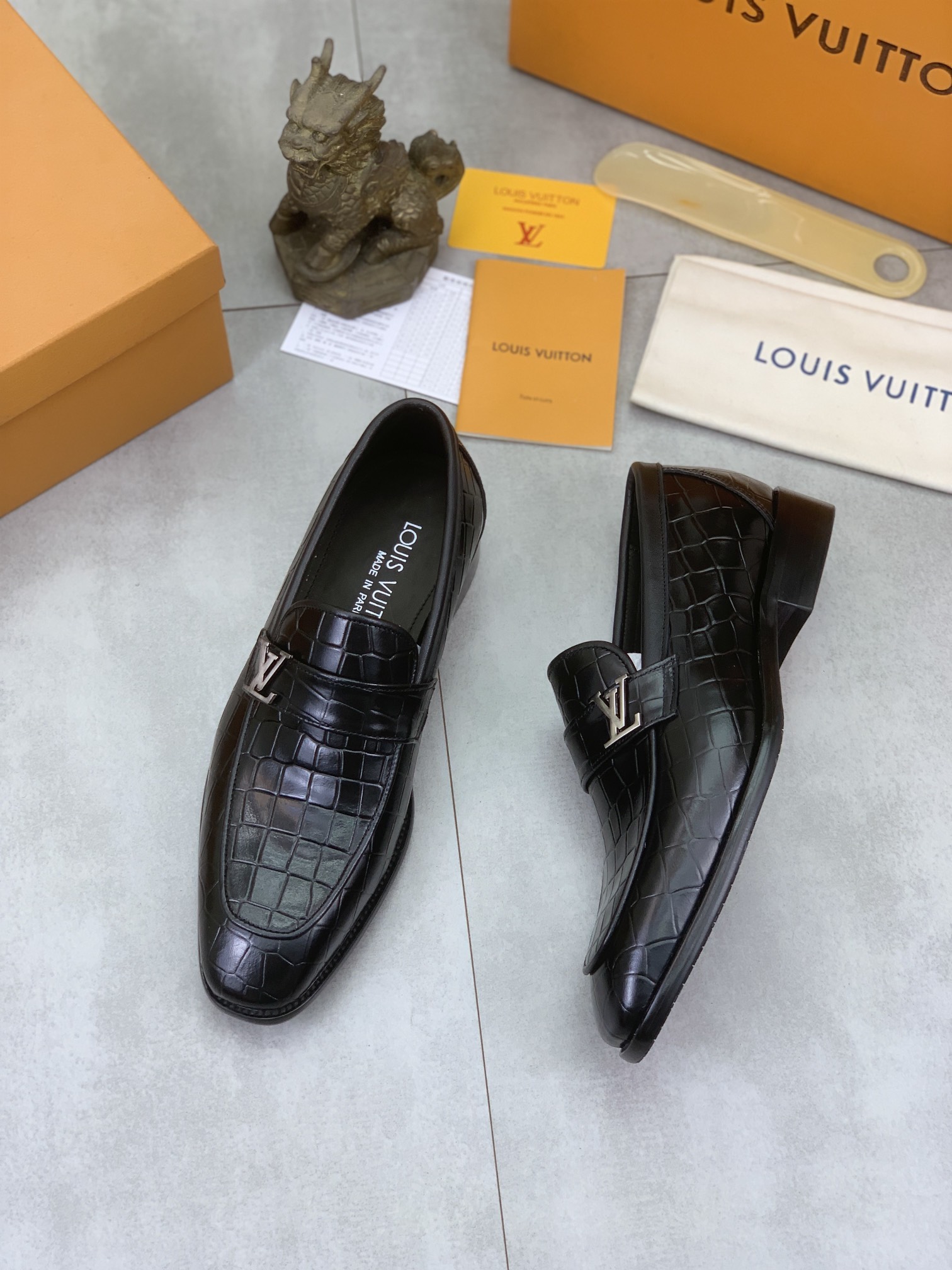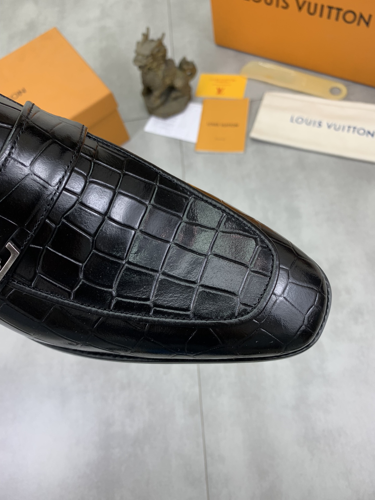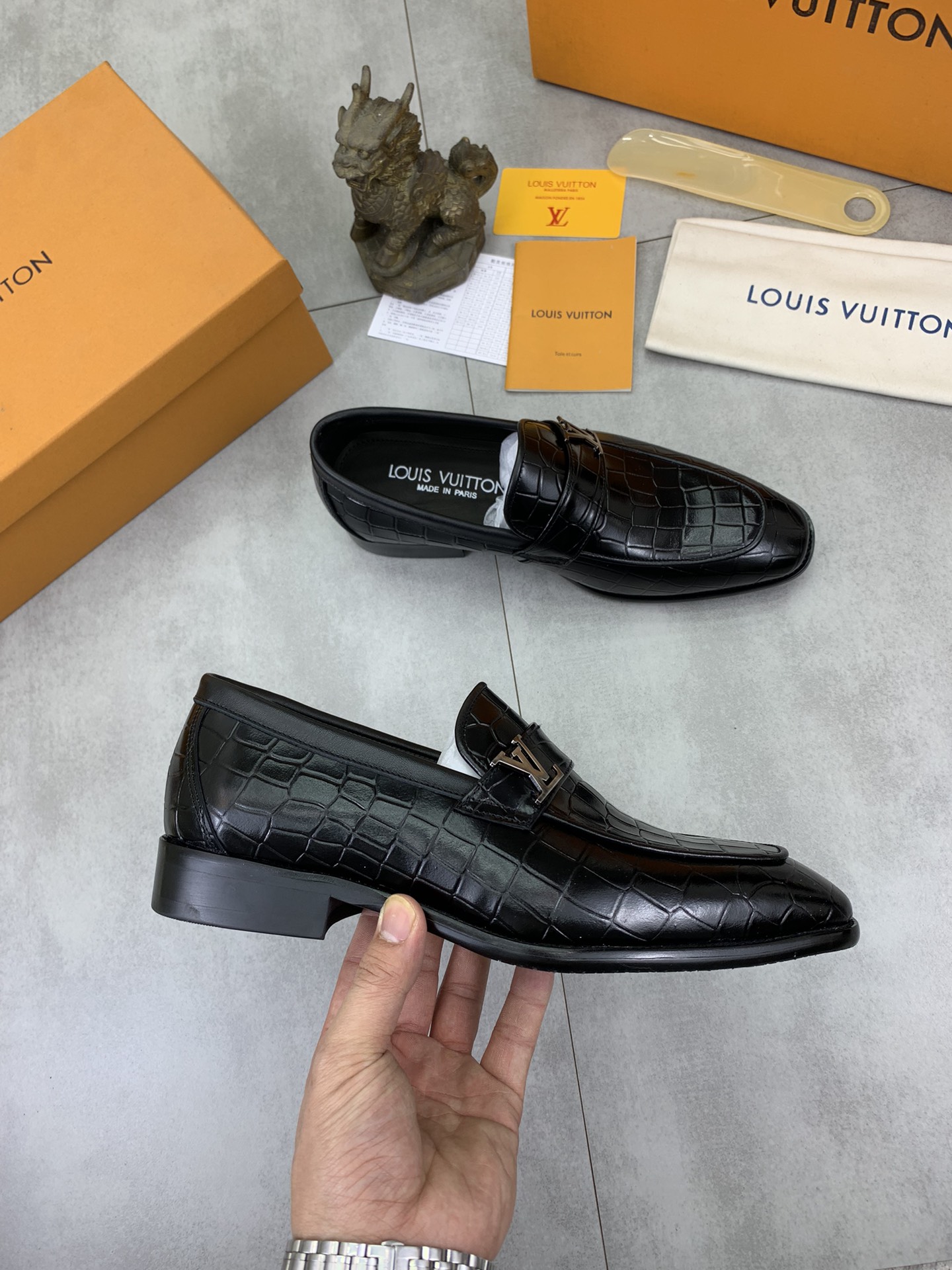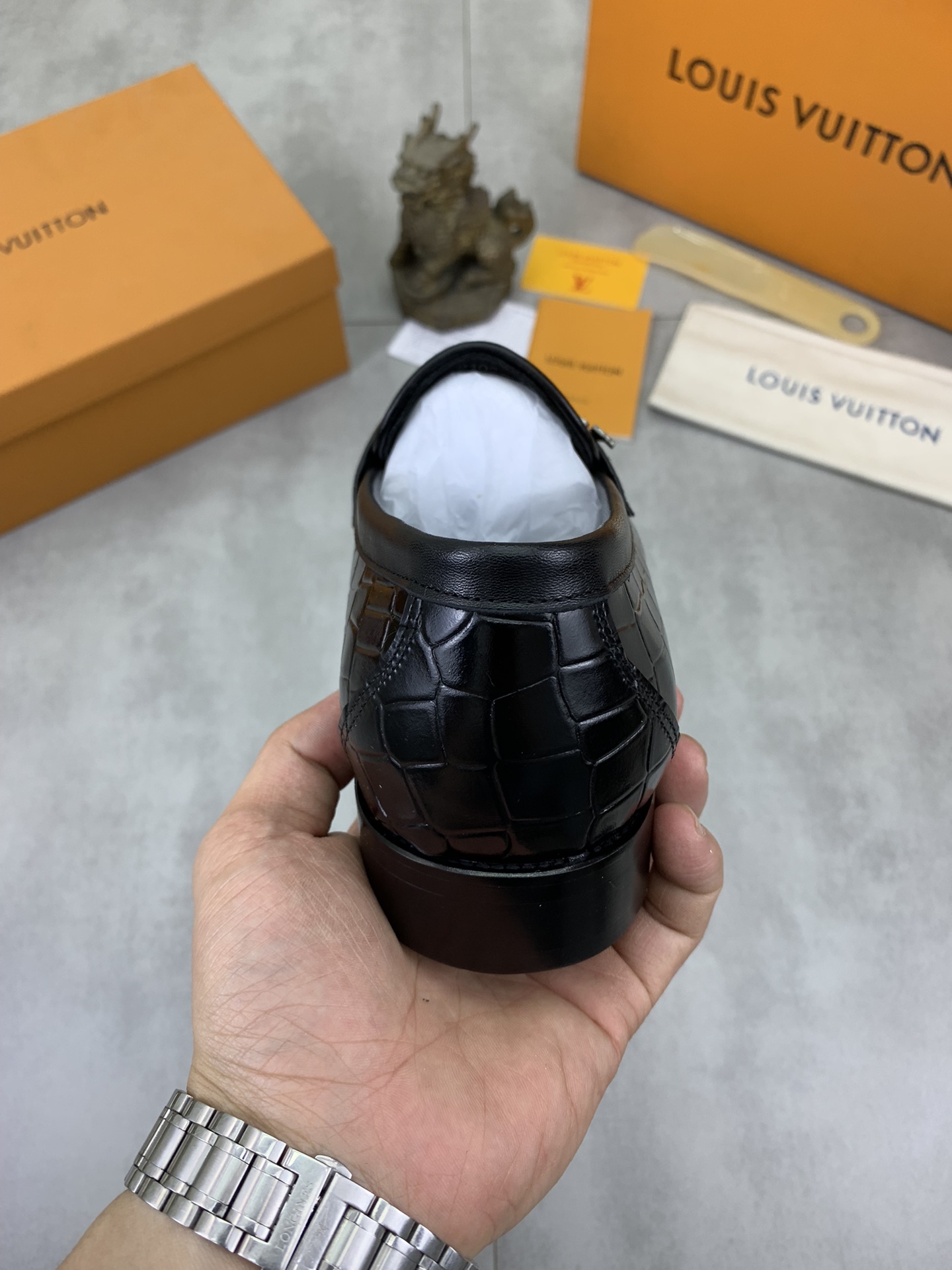 这款鞋子是AAAAA 1:1 质量 (非常棒). 使用了和原版一模一样的材料. 商标部分也保持了和路易威登/Louis Vuitton一样. 图片拍摄是实物鞋子拍摄, 您所收到的实物保证和我们图片一模一样.