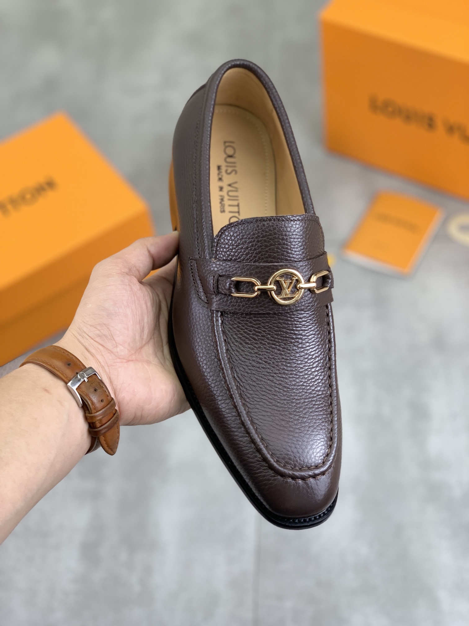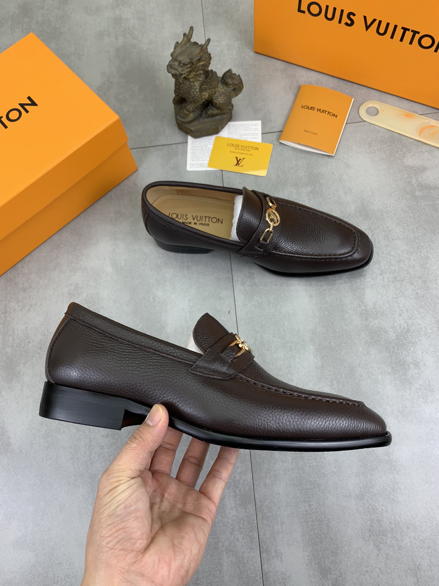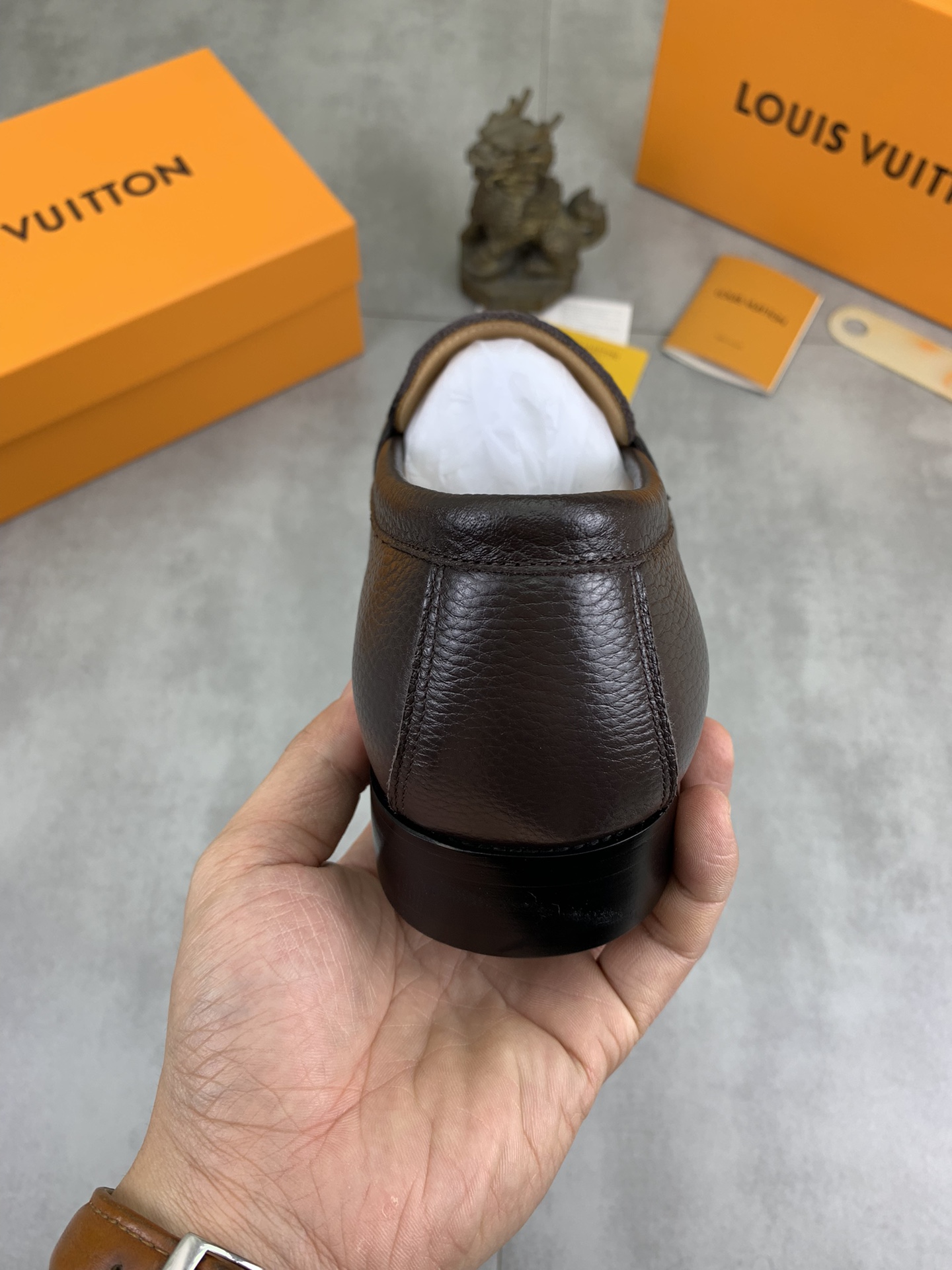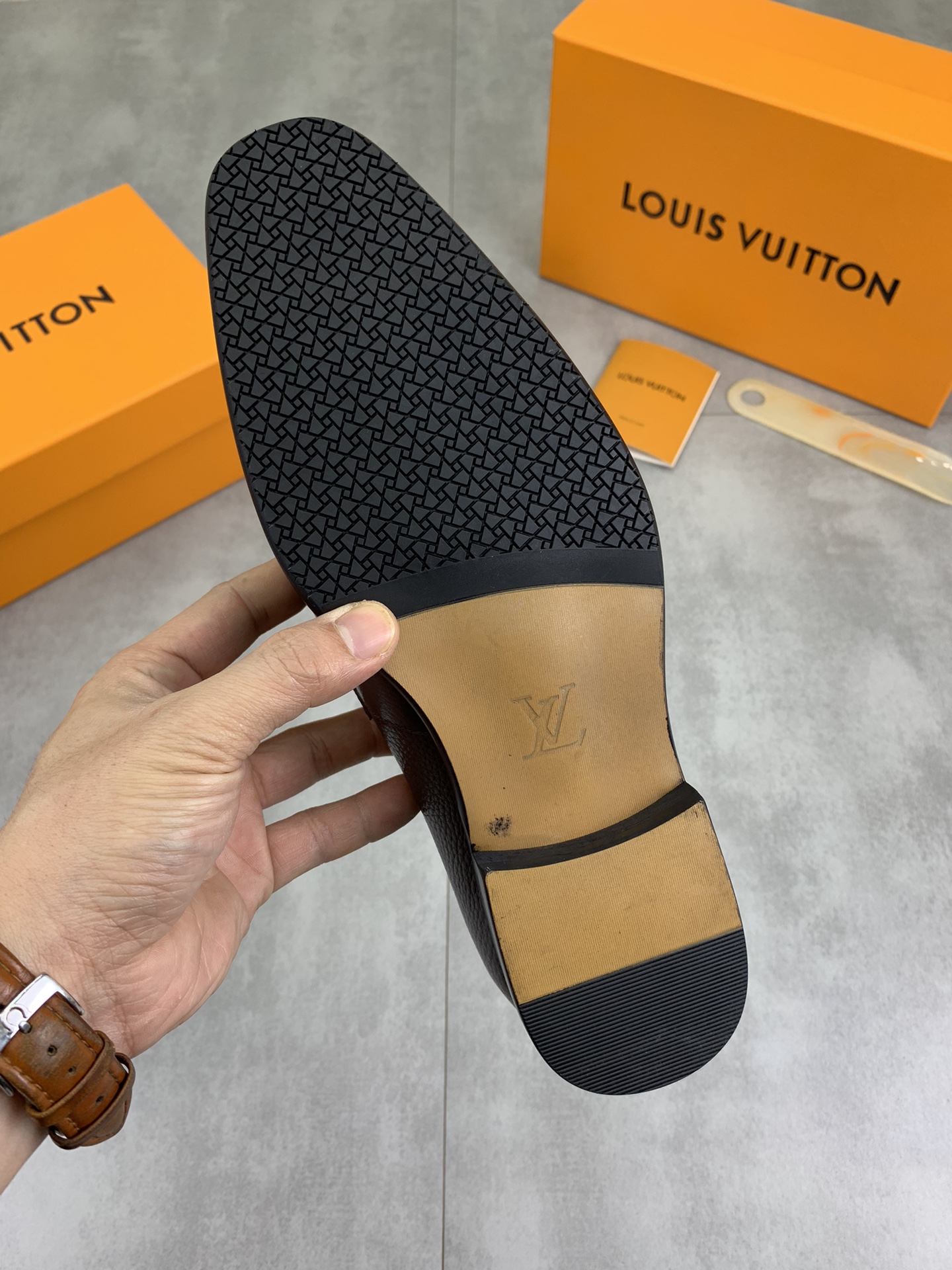 这款鞋子是AAAAA 1:1 质量 (非常棒). 使用了和原版一模一样的材料. 商标部分也保持了和路易威登/Louis Vuitton一样. 图片拍摄是实物鞋子拍摄, 您所收到的实物保证和我们图片一模一样.