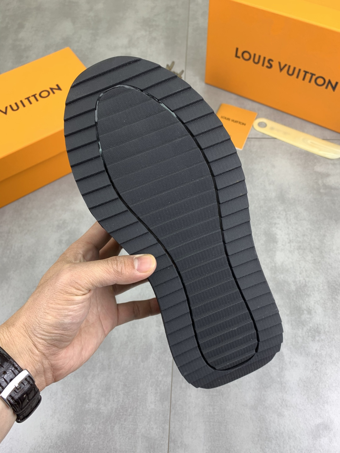 这款鞋子是AAAAA 1:1 质量 (非常棒). 使用了和原版一模一样的材料. 商标部分也保持了和路易威登/Louis Vuitton一样. 图片拍摄是实物鞋子拍摄, 您所收到的实物保证和我们图片一模一样.