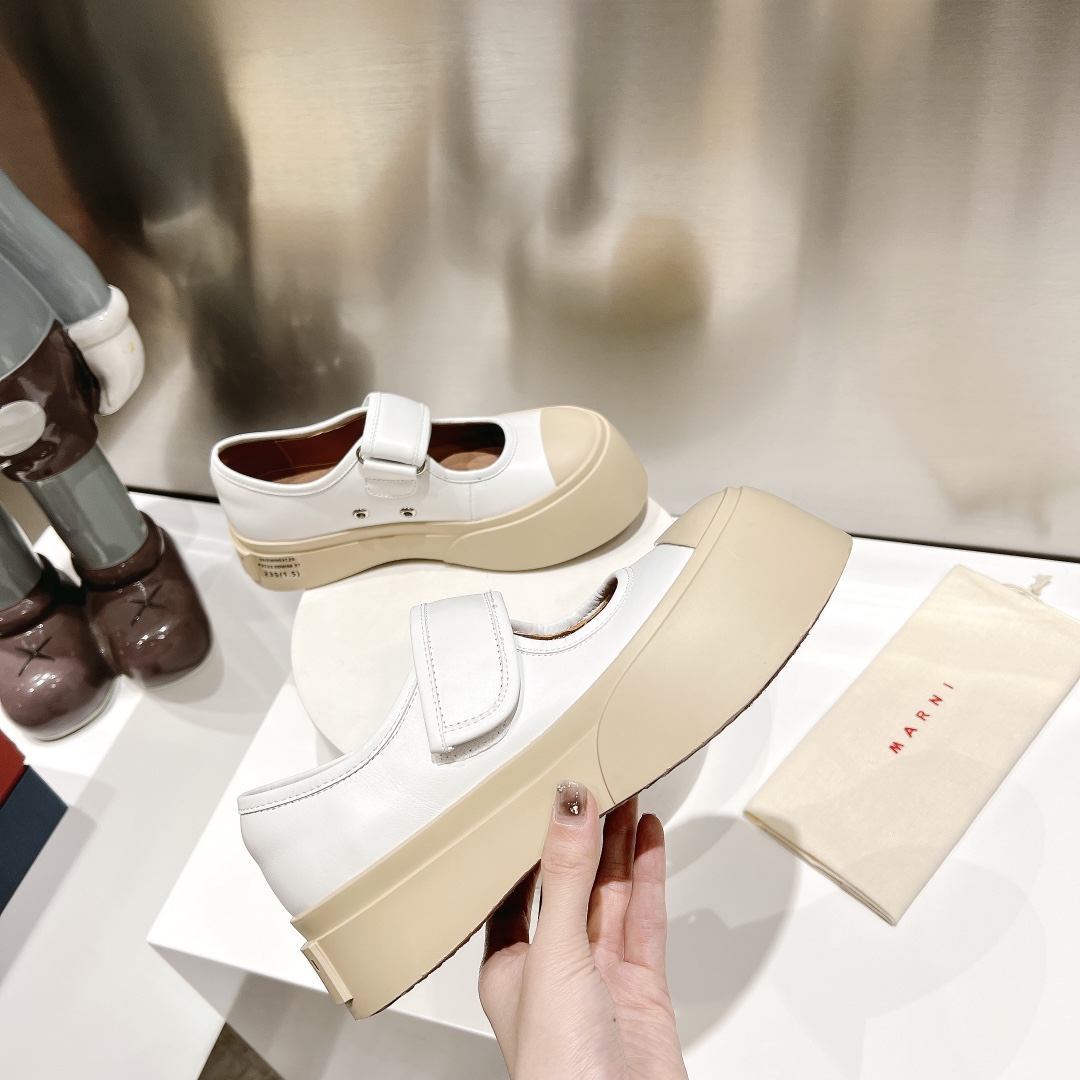 这款鞋子是AAAAA 1:1 质量 (非常棒). 使用了和原版一模一样的材料. 商标部分也保持了和马尔尼/Marni一样. 图片拍摄是实物鞋子拍摄, 您所收到的实物保证和我们图片一模一样.