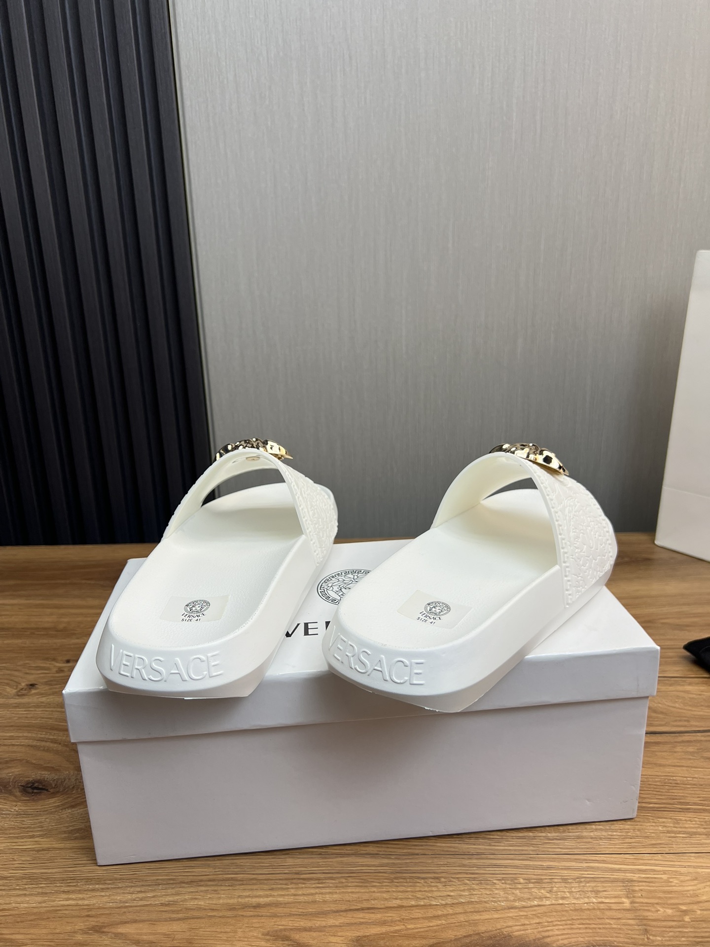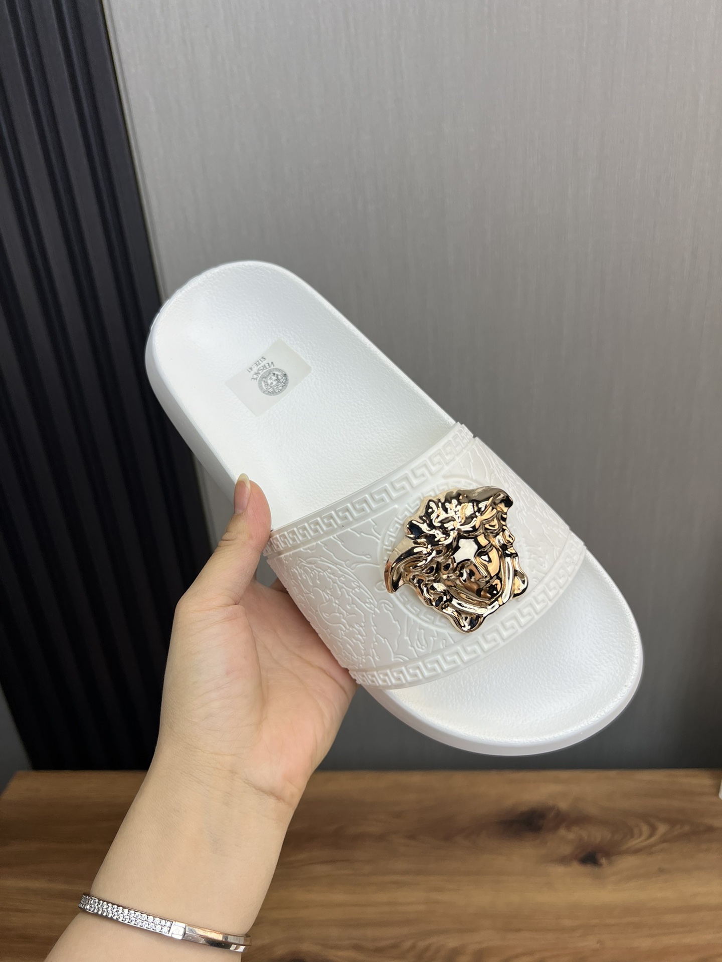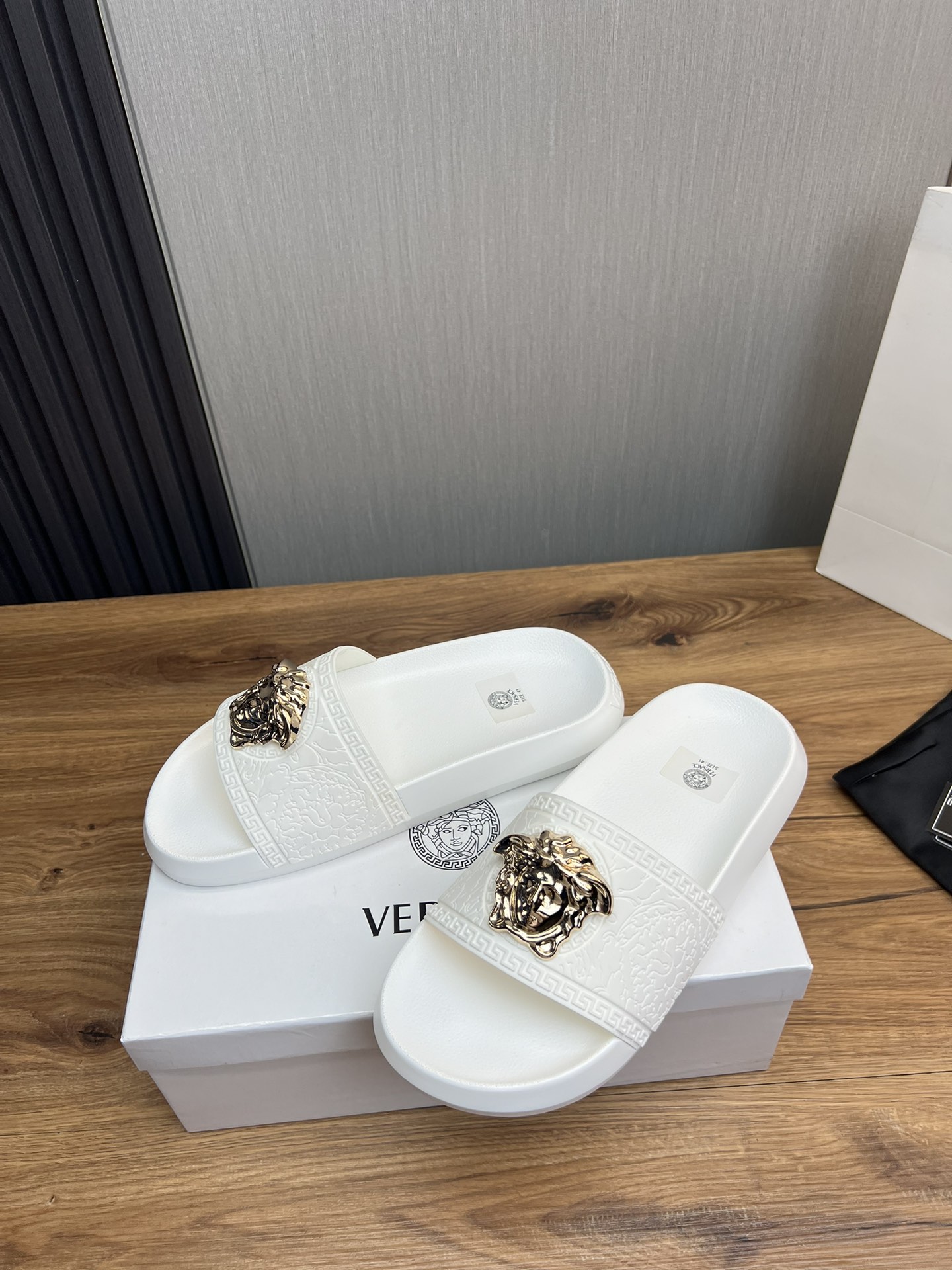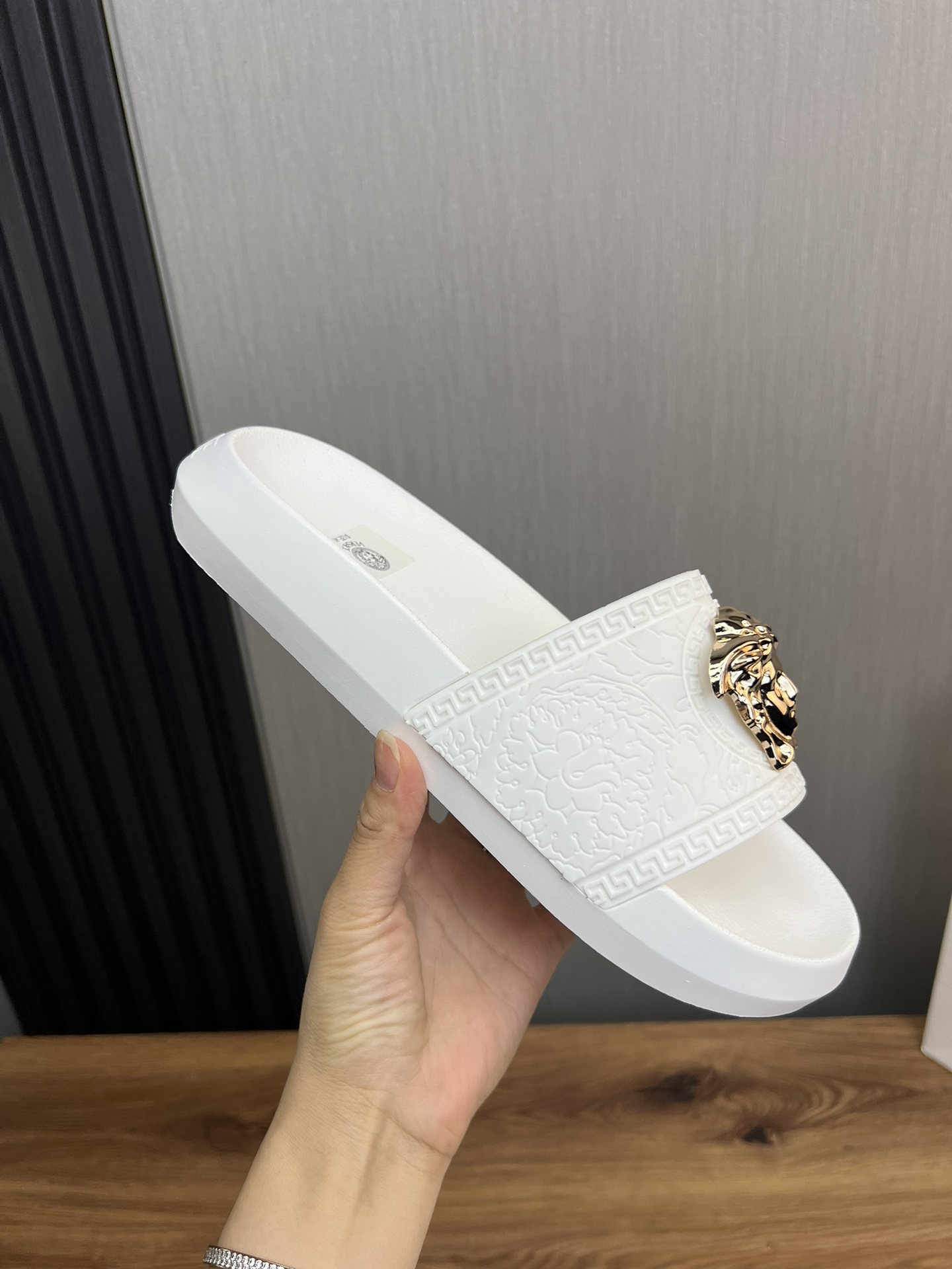 这款鞋子是AAAAA 1:1 质量 (非常棒). 使用了和原版一模一样的材料. 商标部分也保持了和范思哲/Versace一样. 图片拍摄是实物鞋子拍摄, 您所收到的实物保证和我们图片一模一样.