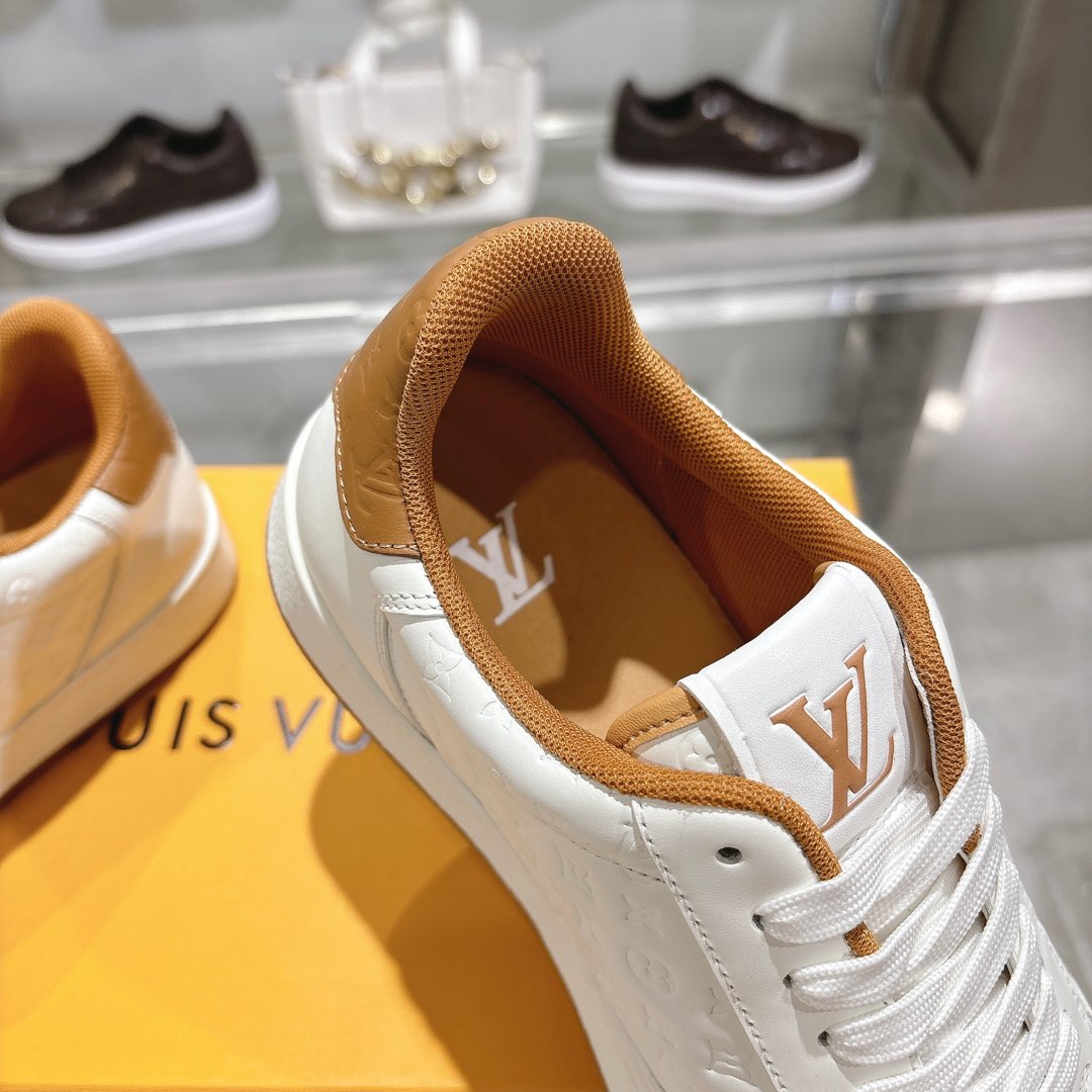 这款鞋子是AAAAA 1:1 质量 (非常棒). 使用了和原版一模一样的材料. 商标部分也保持了和路易威登/Louis Vuitton一样. 图片拍摄是实物鞋子拍摄, 您所收到的实物保证和我们图片一模一样.