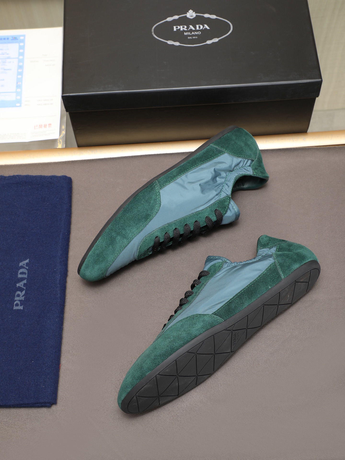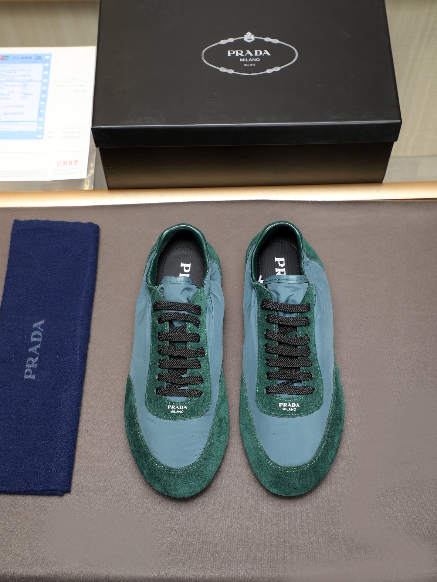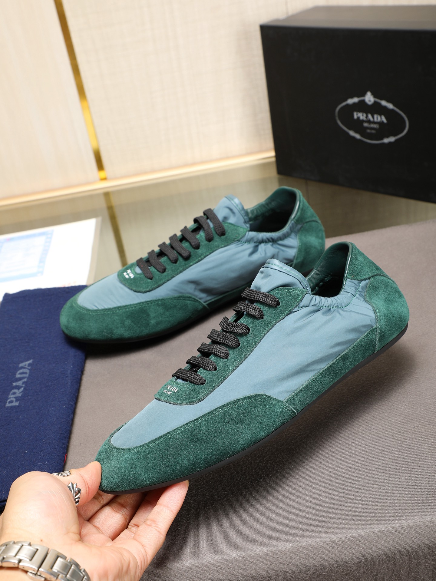 这款鞋子是AAAAA 1:1 质量 (非常棒). 使用了和原版一模一样的材料. 商标部分也保持了和普拉达/Prada一样. 图片拍摄是实物鞋子拍摄, 您所收到的实物保证和我们图片一模一样.