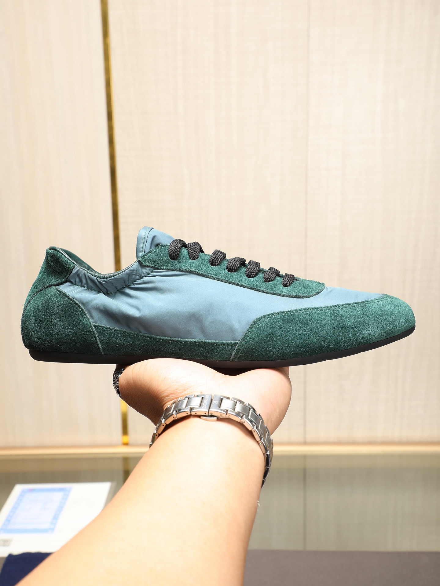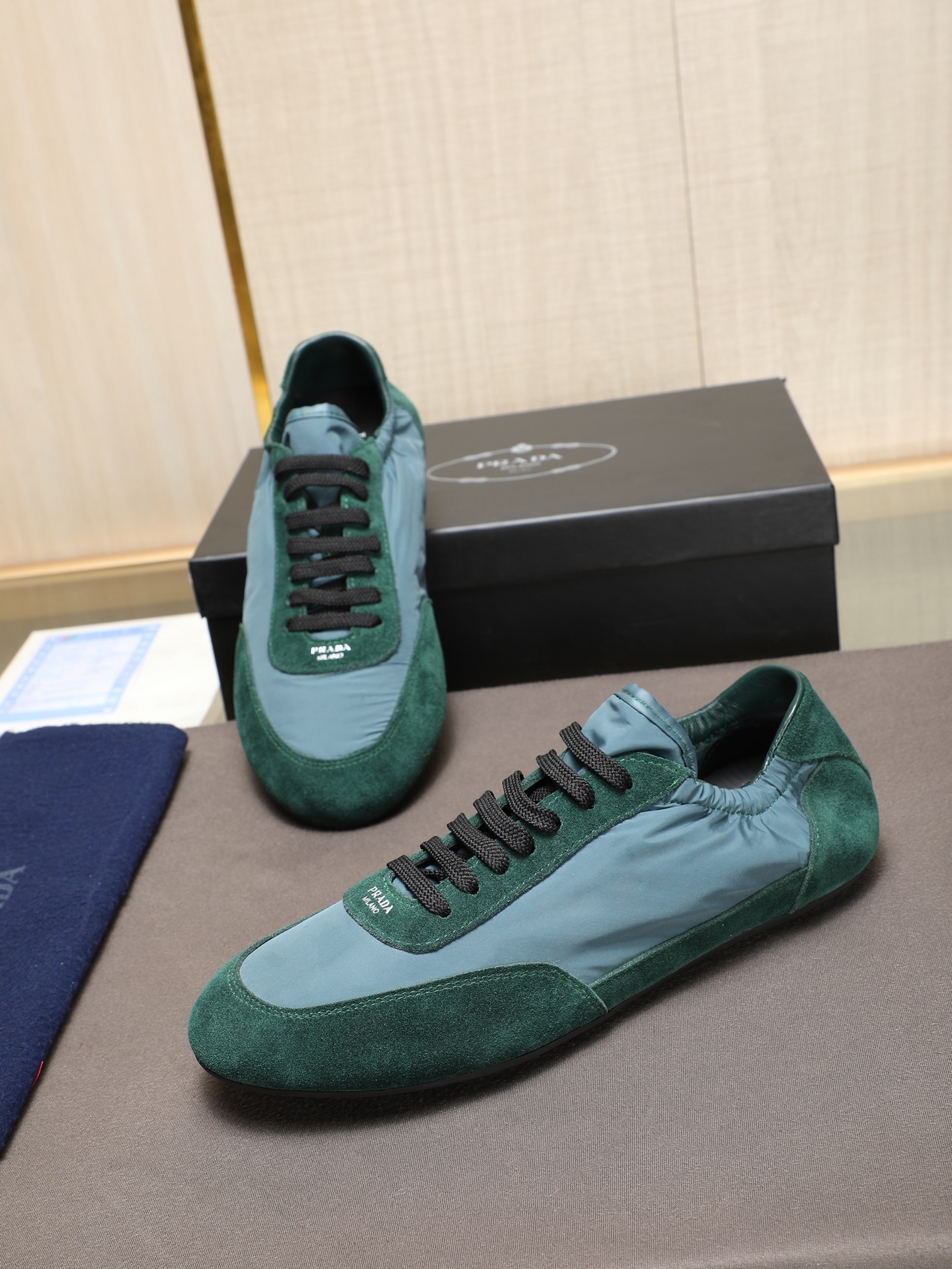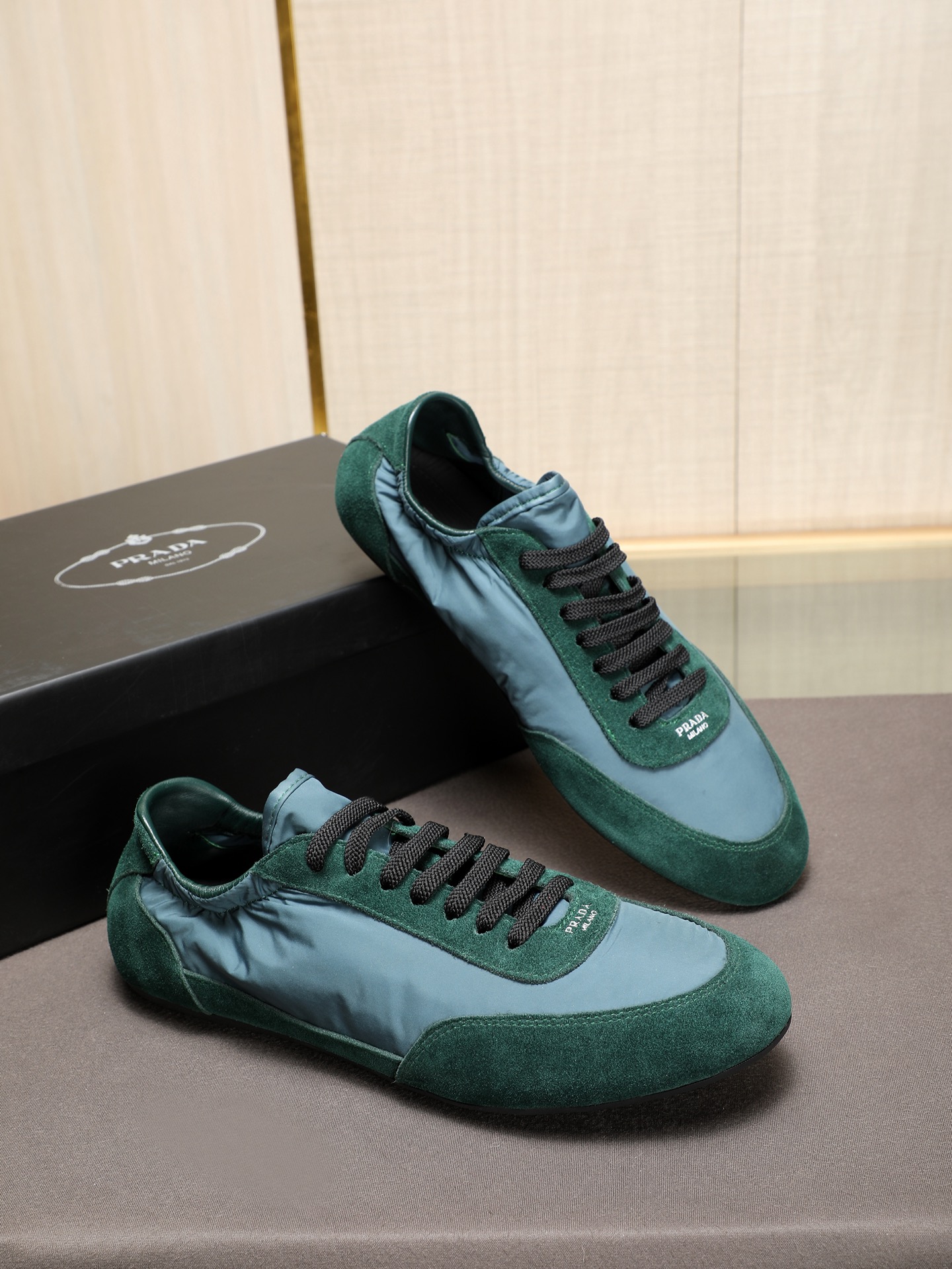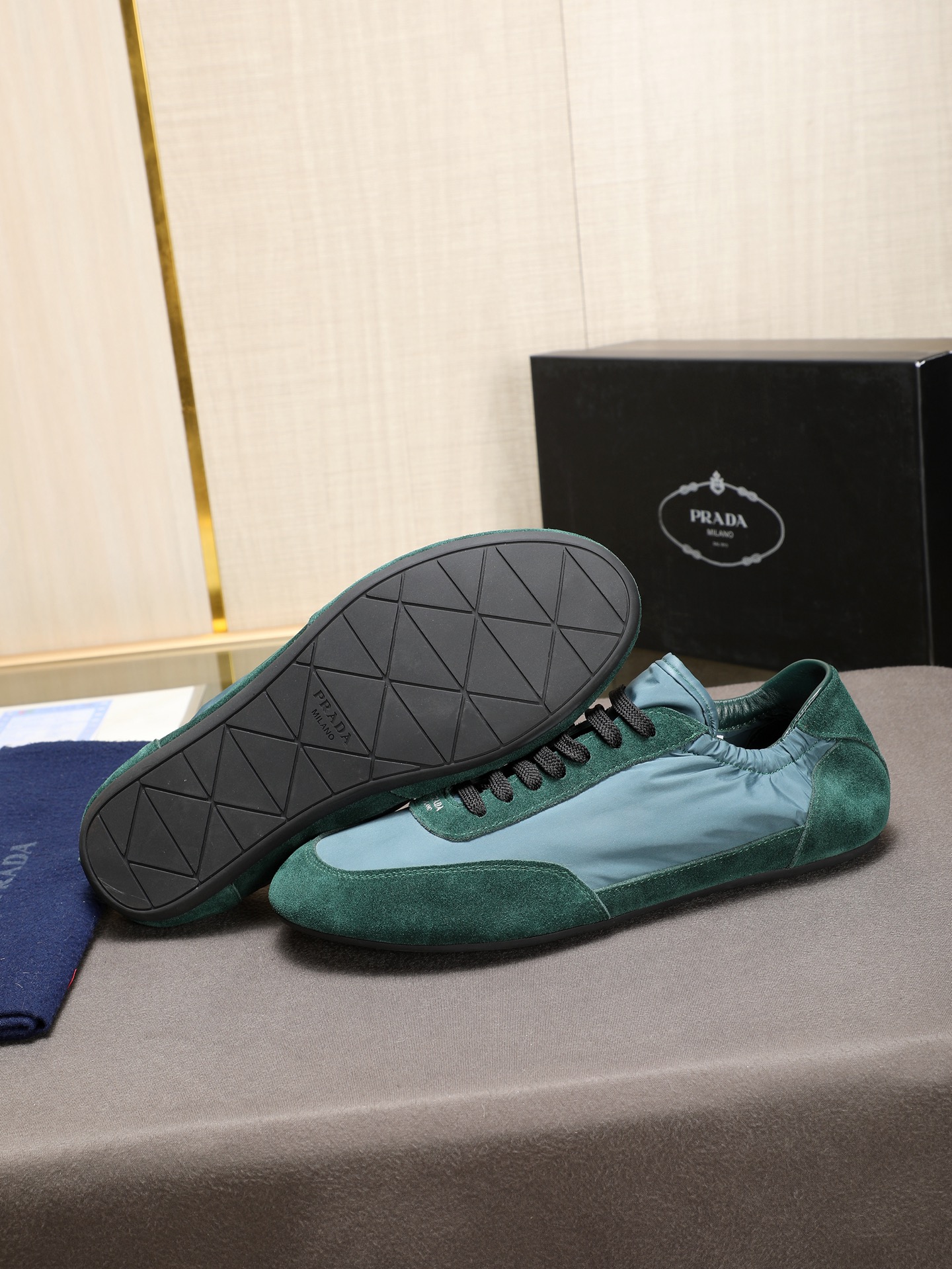 这款鞋子是AAAAA 1:1 质量 (非常棒). 使用了和原版一模一样的材料. 商标部分也保持了和普拉达/Prada一样. 图片拍摄是实物鞋子拍摄, 您所收到的实物保证和我们图片一模一样.