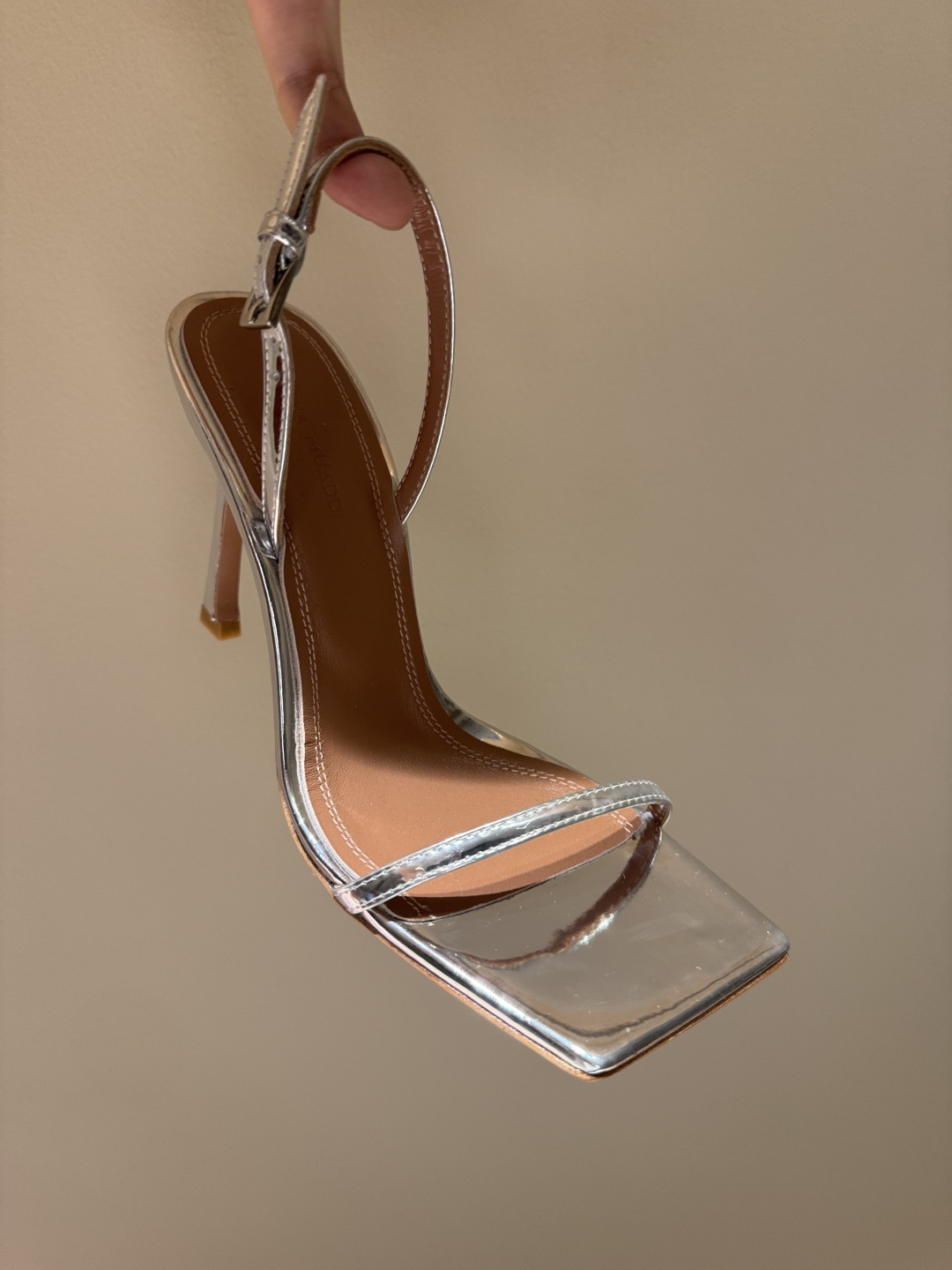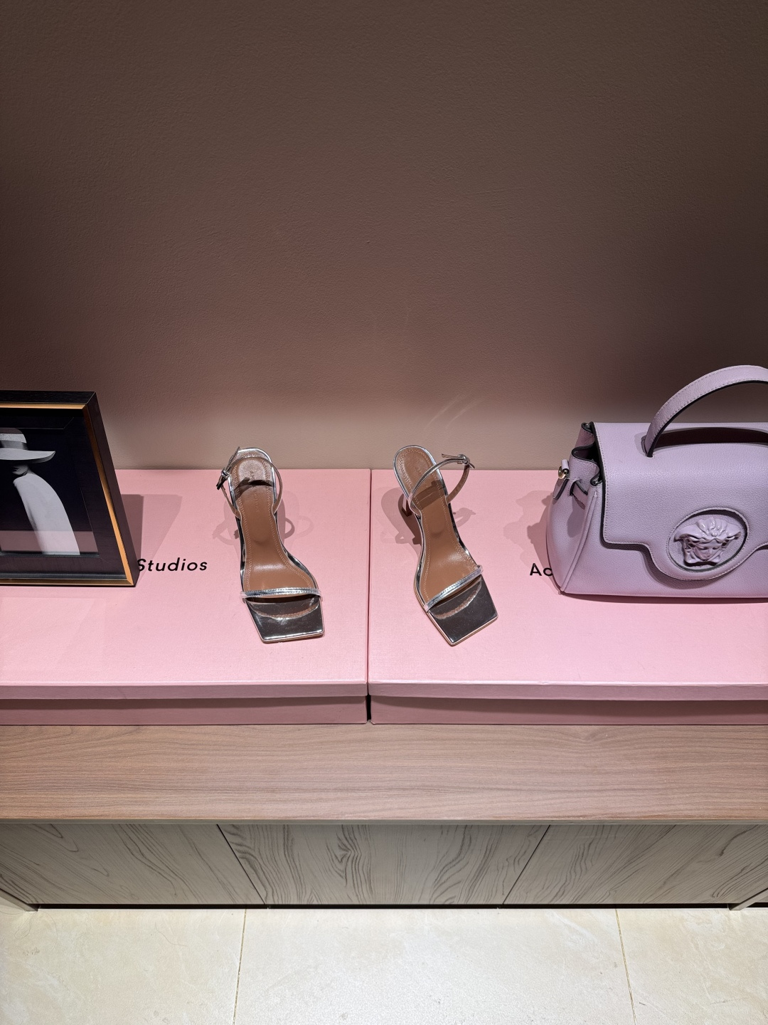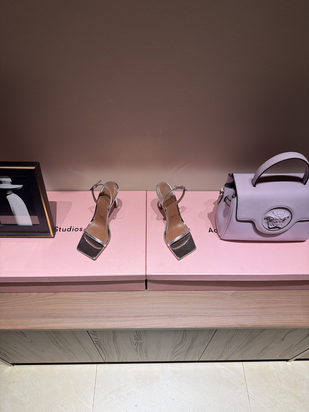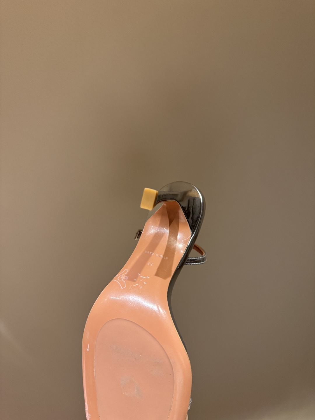 这款鞋子是AAAAA 1:1 质量 (非常棒). 使用了和原版一模一样的材料. 商标部分也保持了和Amina Muaddi一样. 图片拍摄是实物鞋子拍摄, 您所收到的实物保证和我们图片一模一样.