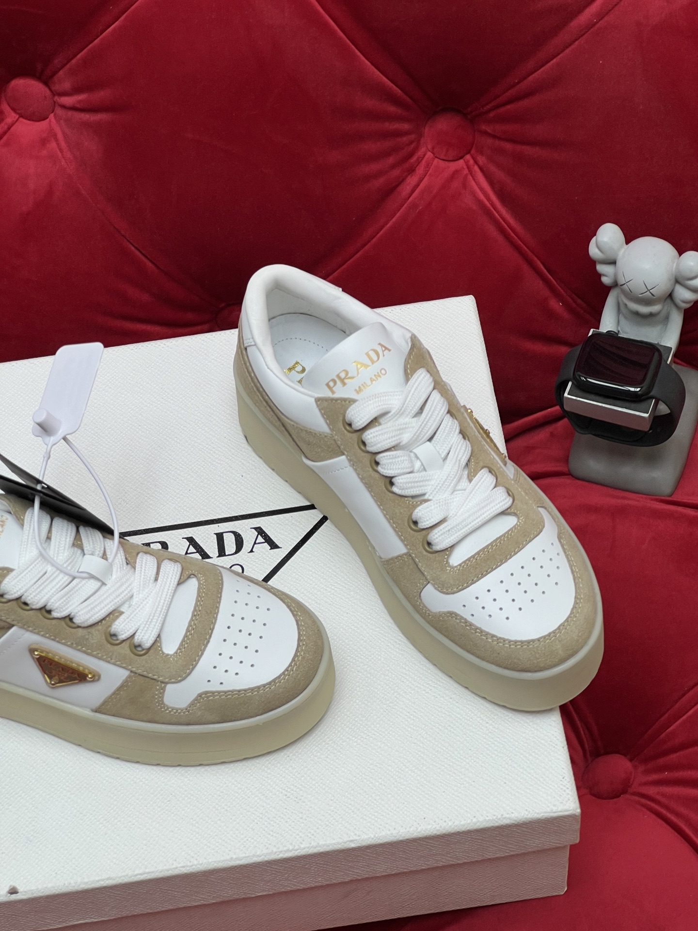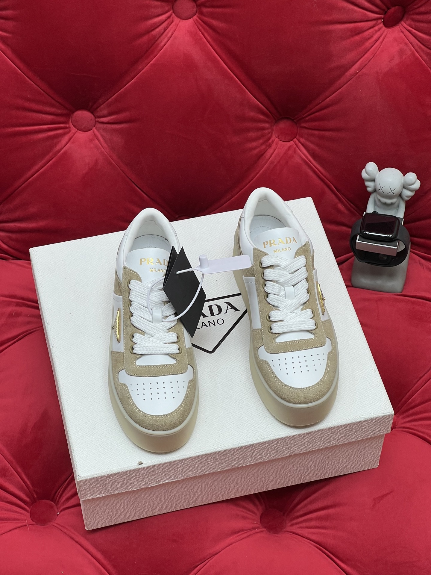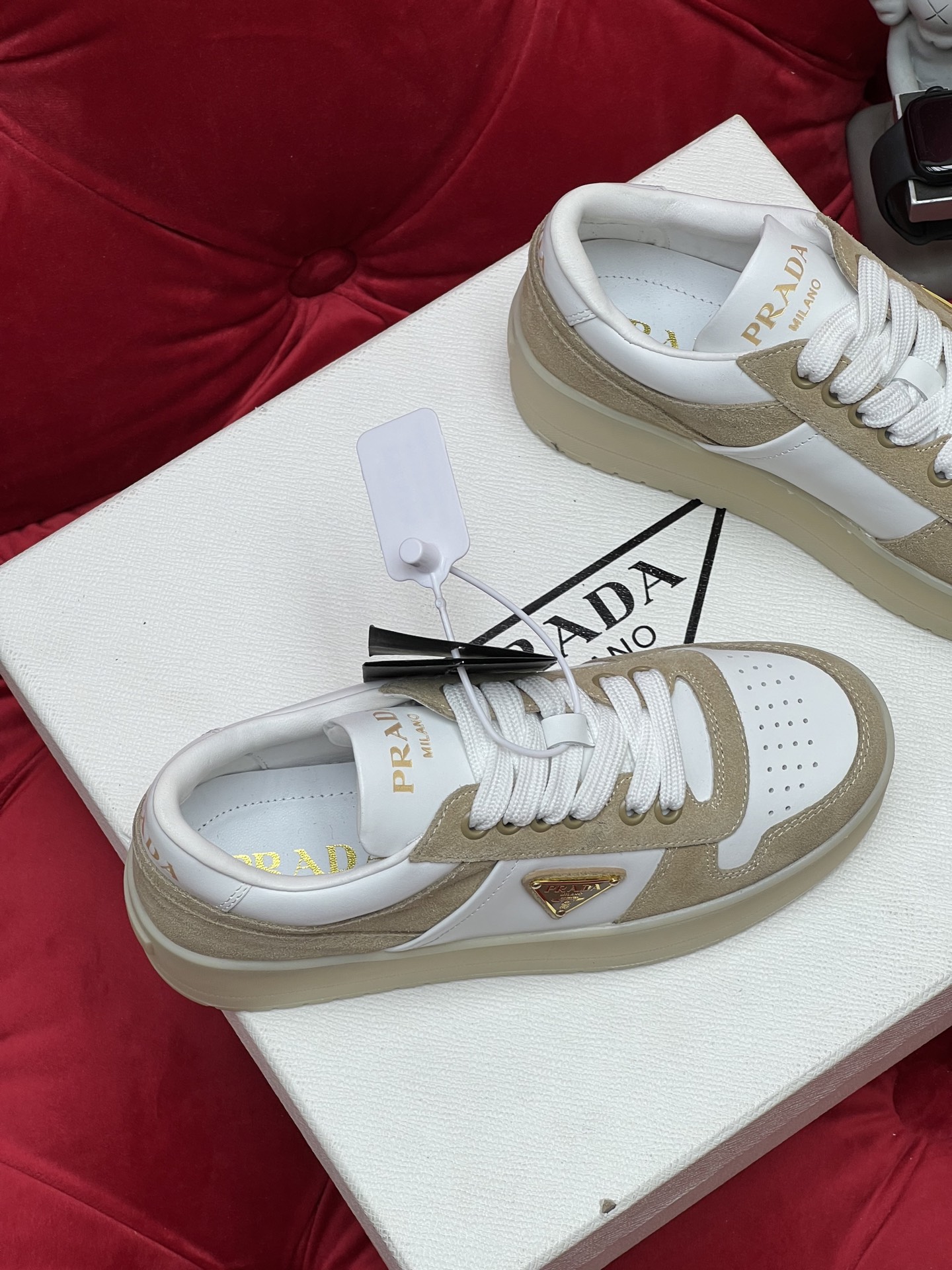 这款鞋子是AAAAA 1:1 质量 (非常棒). 使用了和原版一模一样的材料. 商标部分也保持了和普拉达/Prada一样. 图片拍摄是实物鞋子拍摄, 您所收到的实物保证和我们图片一模一样.
