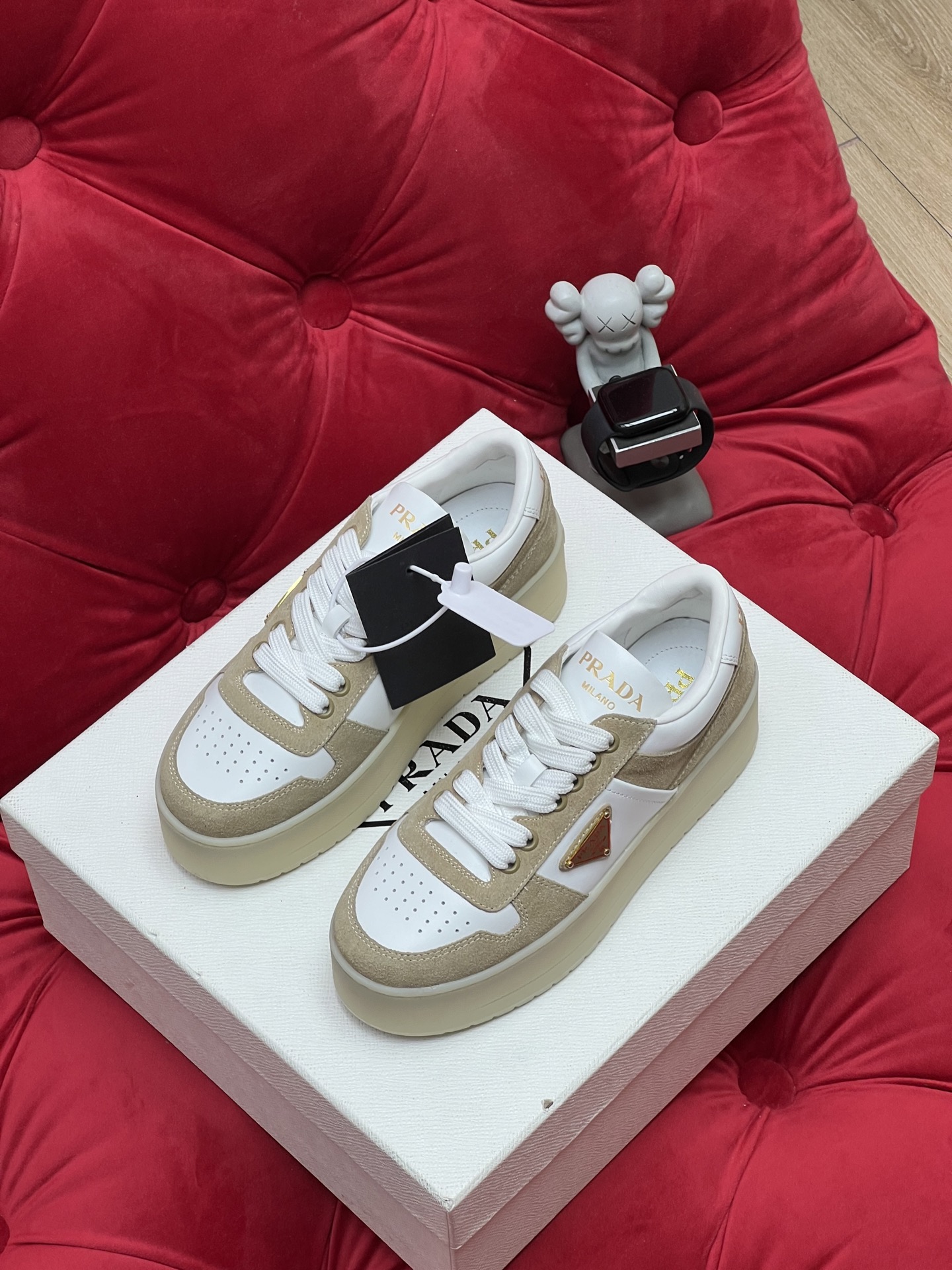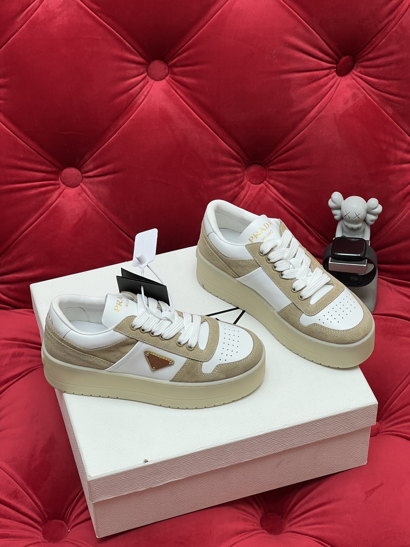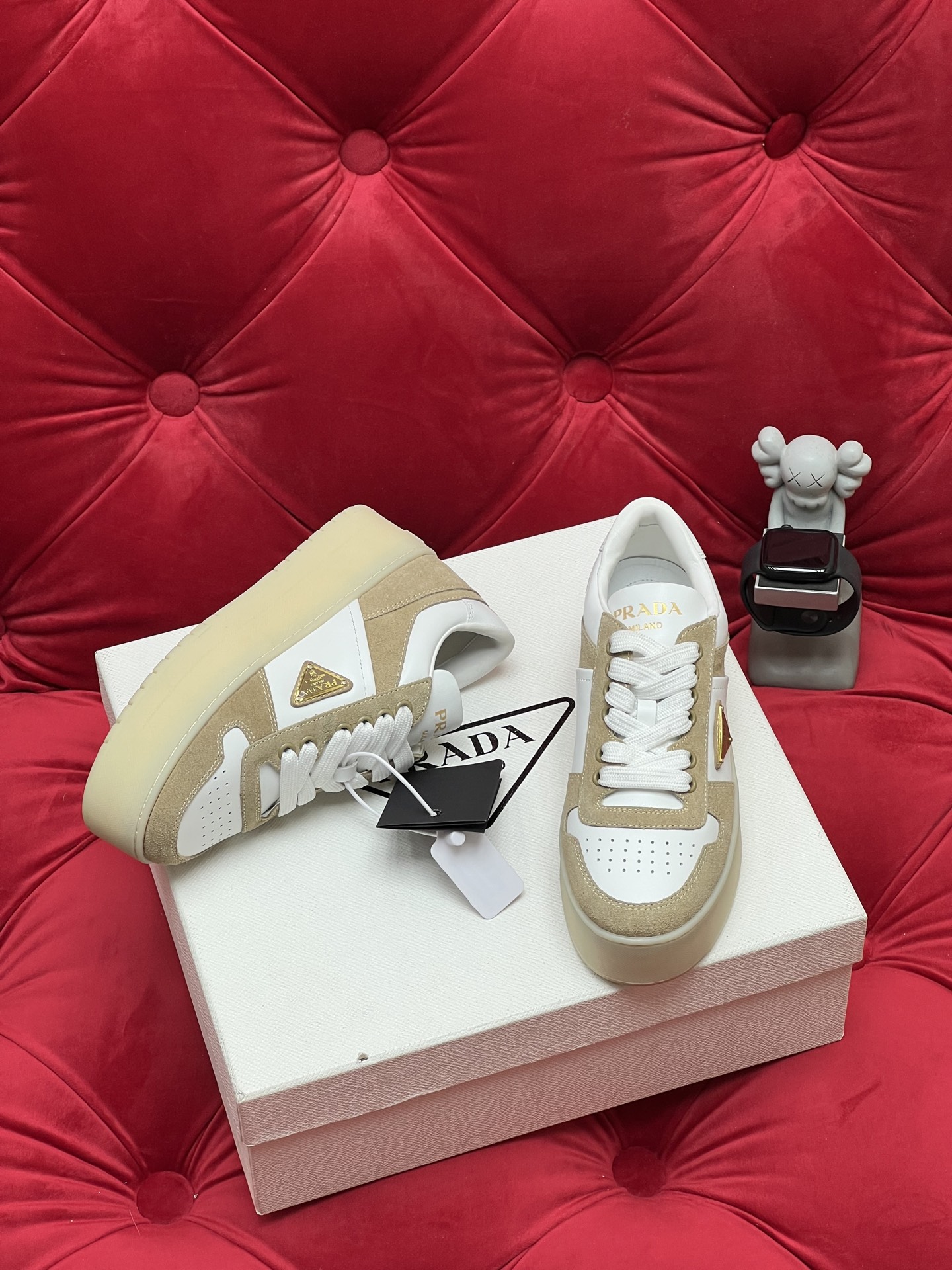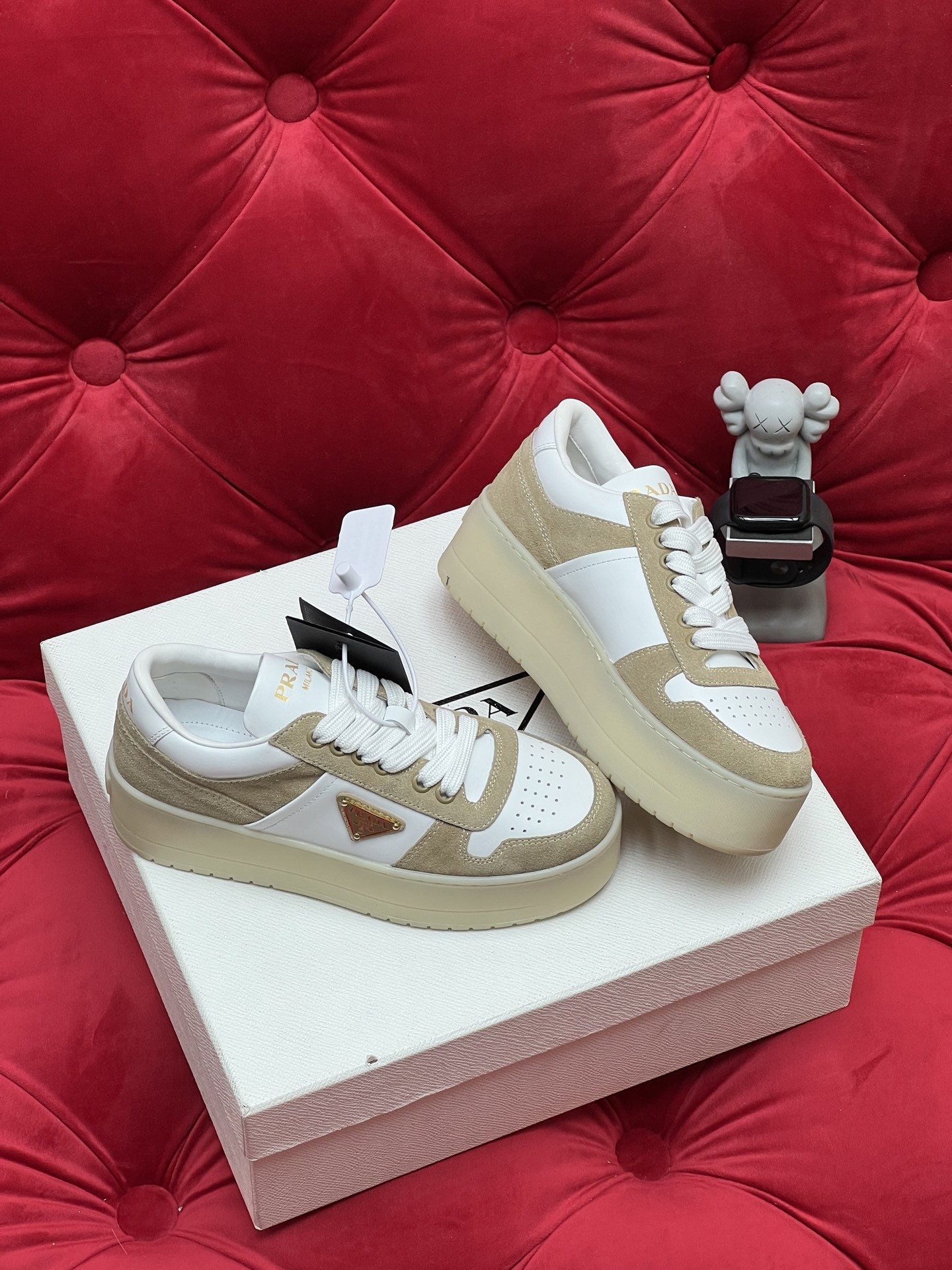 这款鞋子是AAAAA 1:1 质量 (非常棒). 使用了和原版一模一样的材料. 商标部分也保持了和普拉达/Prada一样. 图片拍摄是实物鞋子拍摄, 您所收到的实物保证和我们图片一模一样.