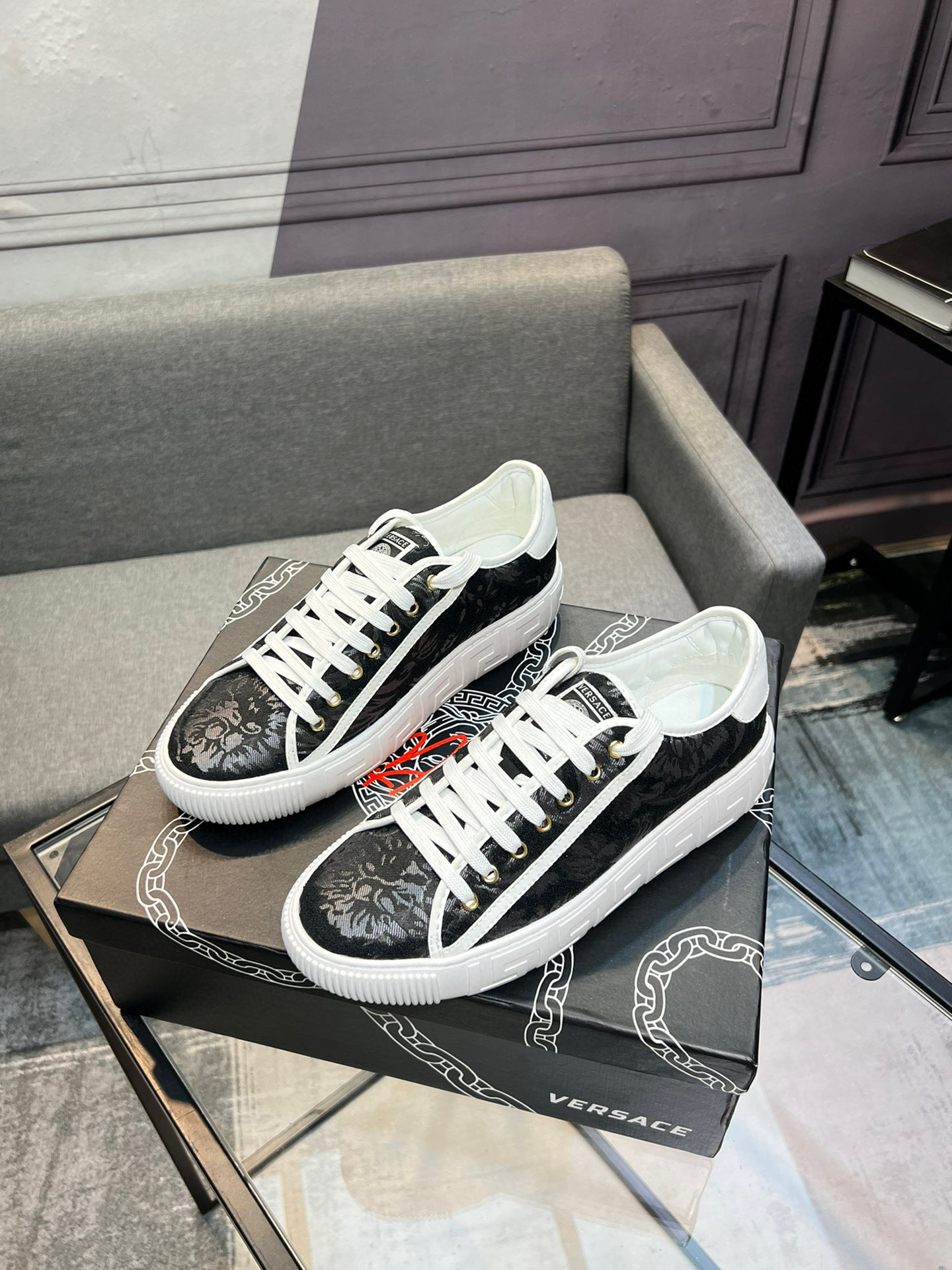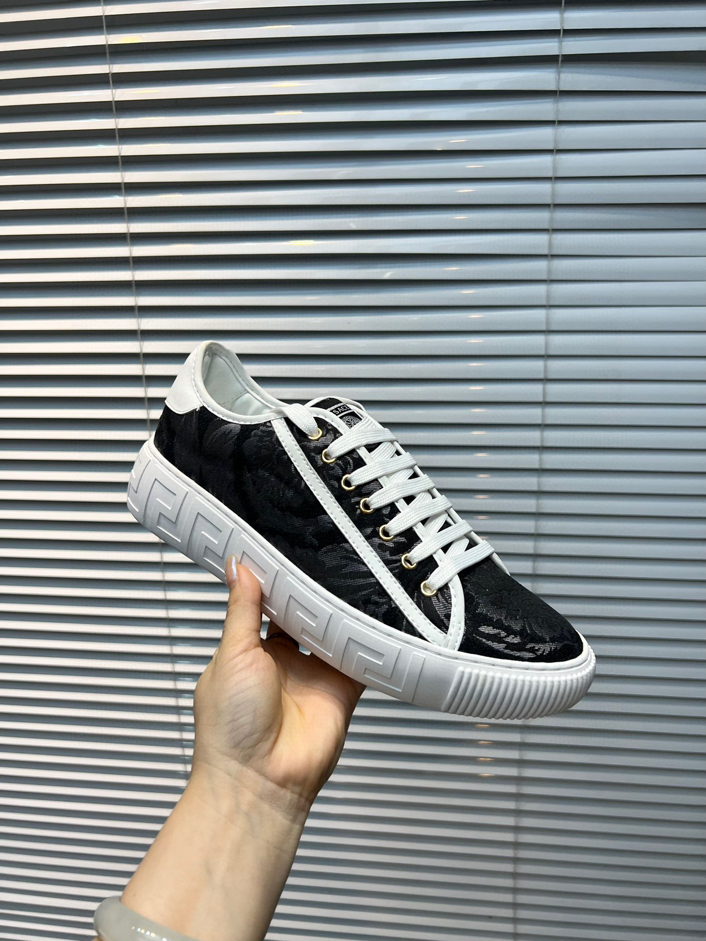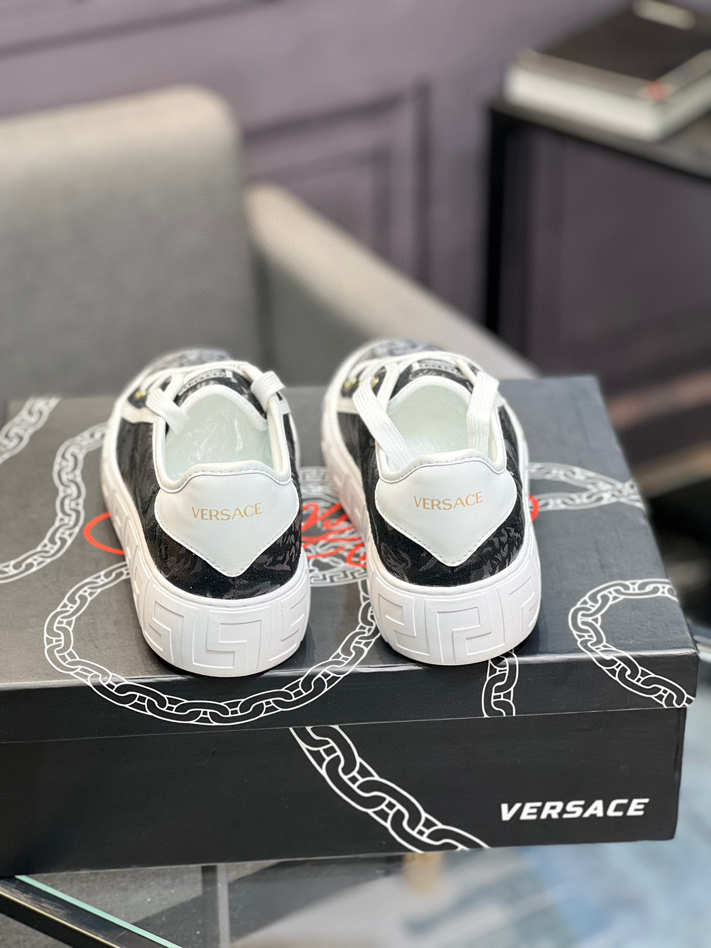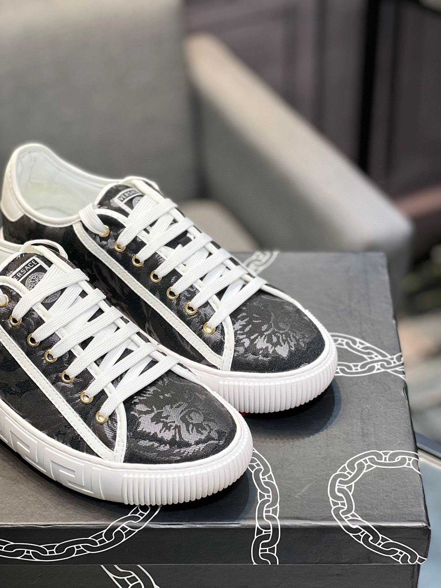 这款鞋子是AAAAA 1:1 质量 (非常棒). 使用了和原版一模一样的材料. 商标部分也保持了和范思哲/Versace一样. 图片拍摄是实物鞋子拍摄, 您所收到的实物保证和我们图片一模一样.