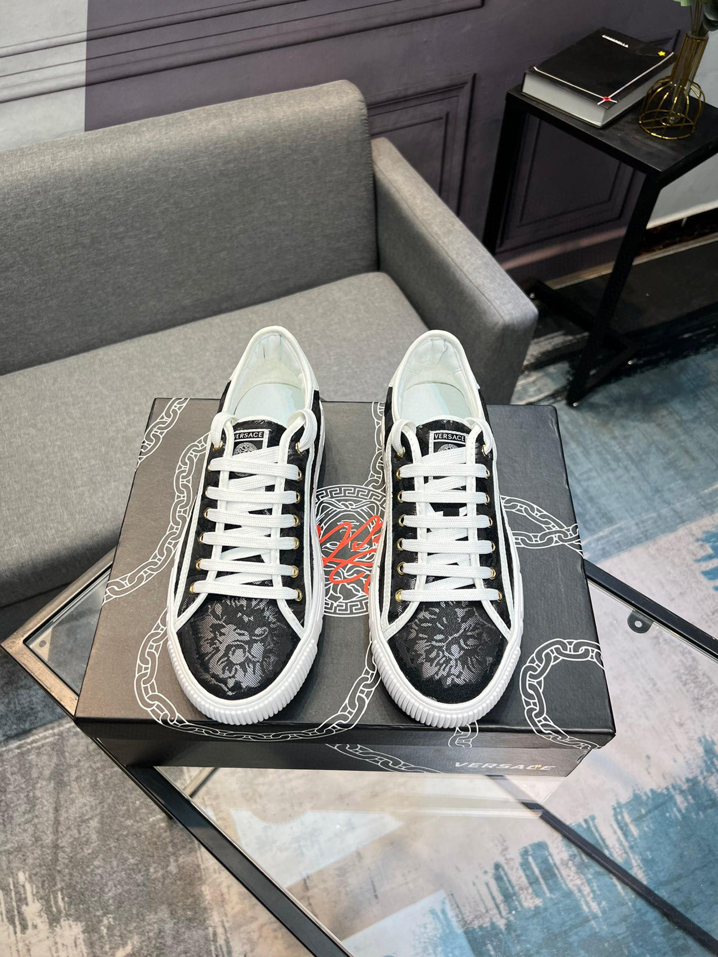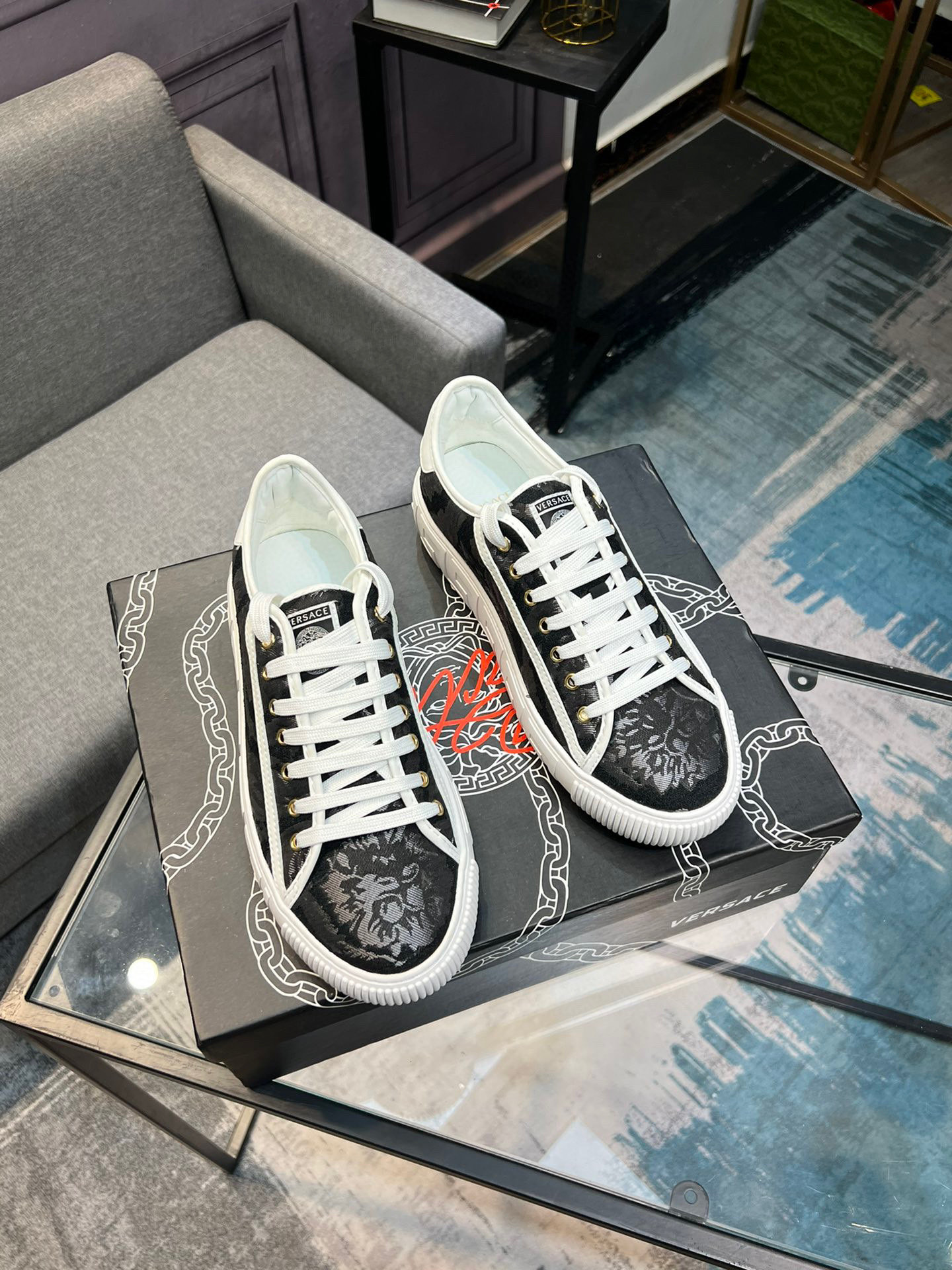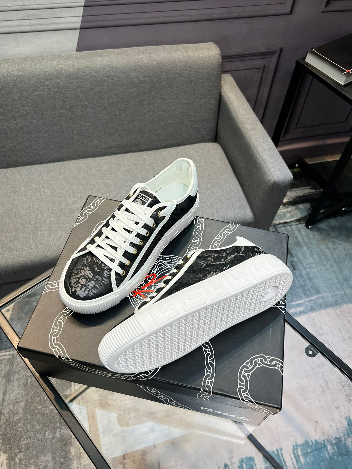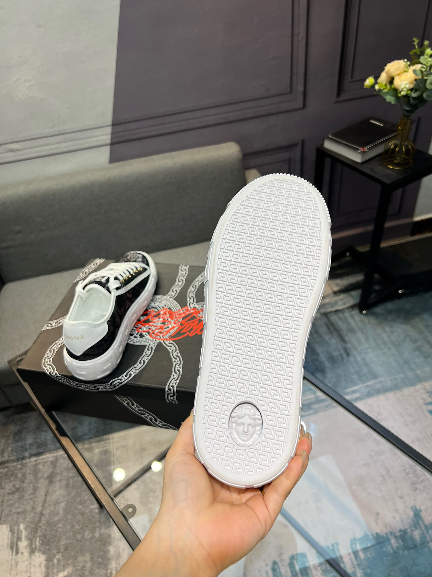 这款鞋子是AAAAA 1:1 质量 (非常棒). 使用了和原版一模一样的材料. 商标部分也保持了和范思哲/Versace一样. 图片拍摄是实物鞋子拍摄, 您所收到的实物保证和我们图片一模一样.