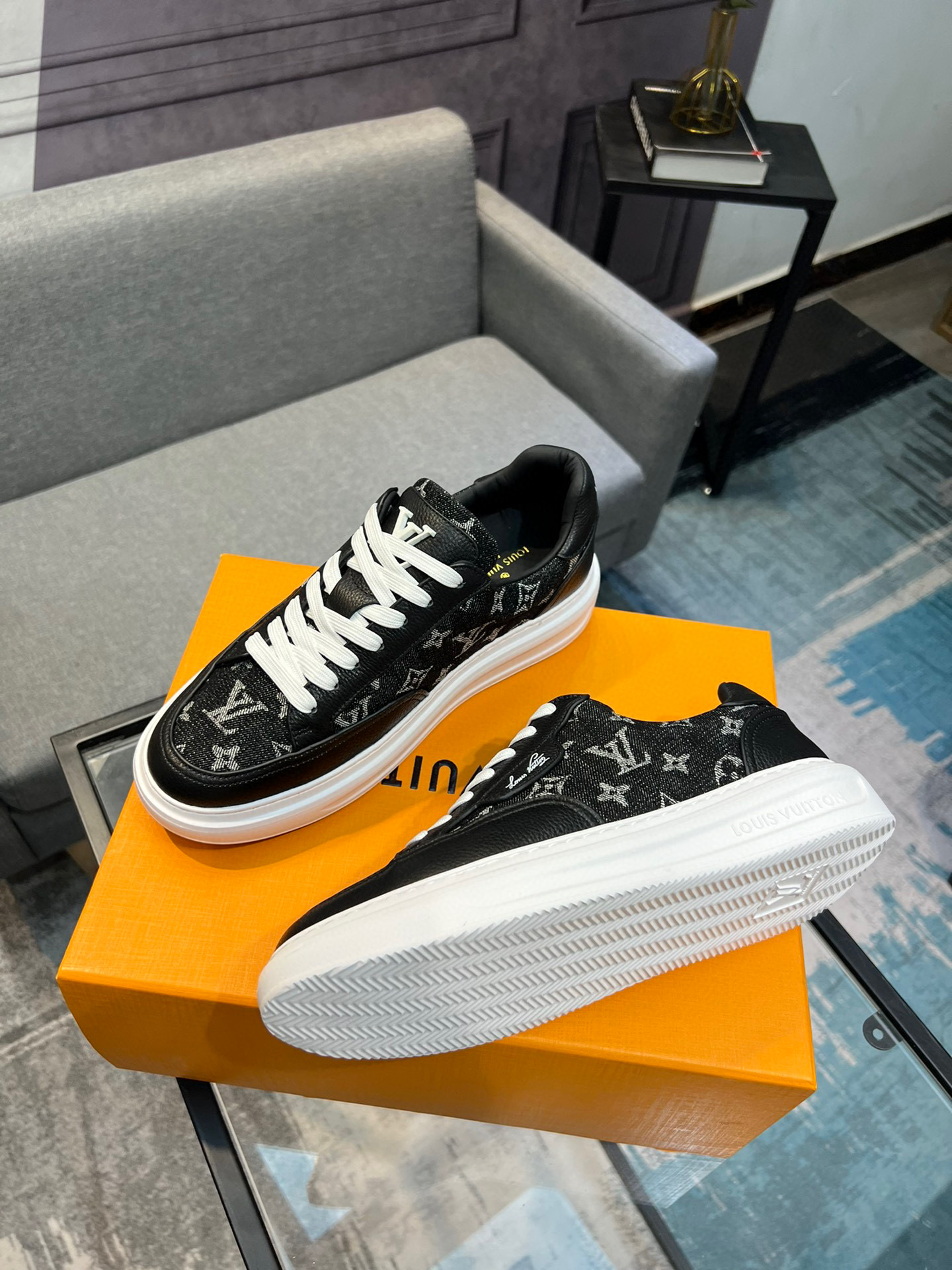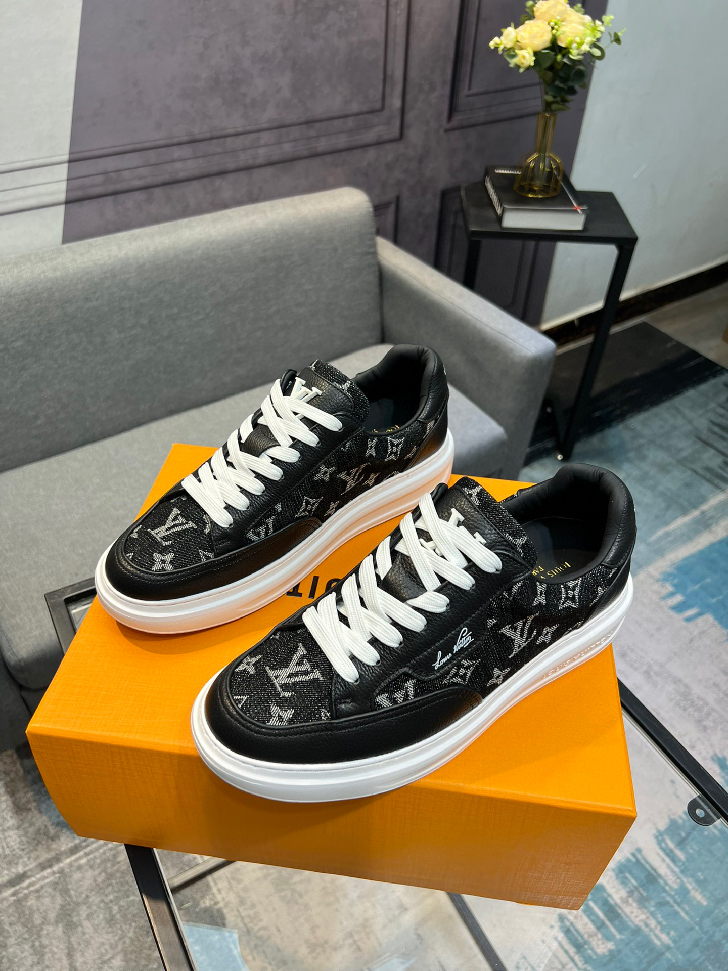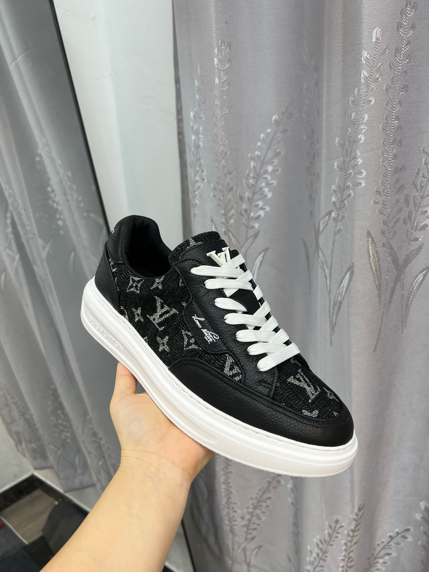 这款鞋子是AAAAA 1:1 质量 (非常棒). 使用了和原版一模一样的材料. 商标部分也保持了和路易威登/Louis Vuitton一样. 图片拍摄是实物鞋子拍摄, 您所收到的实物保证和我们图片一模一样.