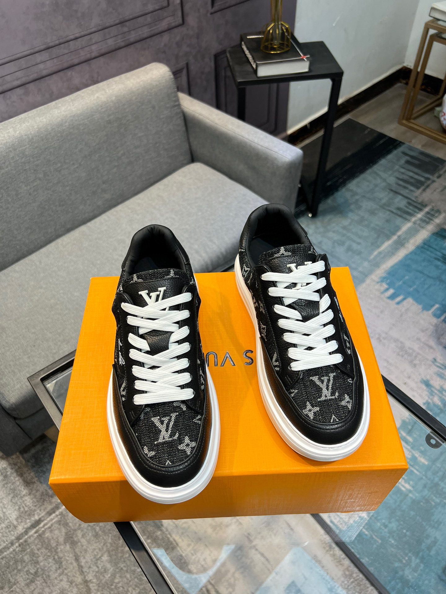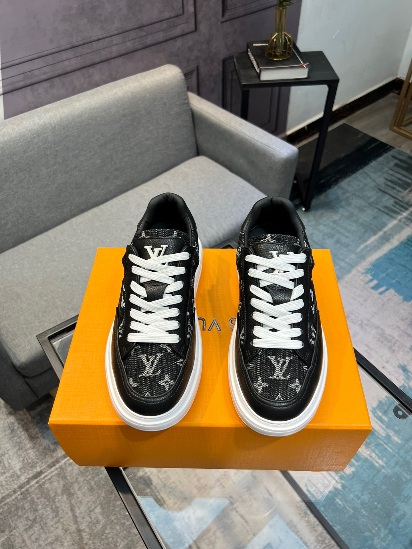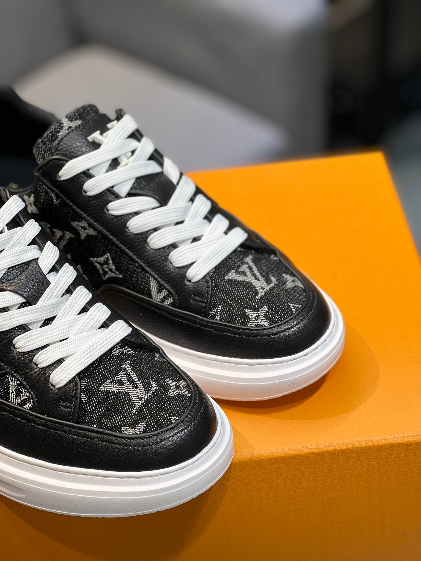 这款鞋子是AAAAA 1:1 质量 (非常棒). 使用了和原版一模一样的材料. 商标部分也保持了和路易威登/Louis Vuitton一样. 图片拍摄是实物鞋子拍摄, 您所收到的实物保证和我们图片一模一样.