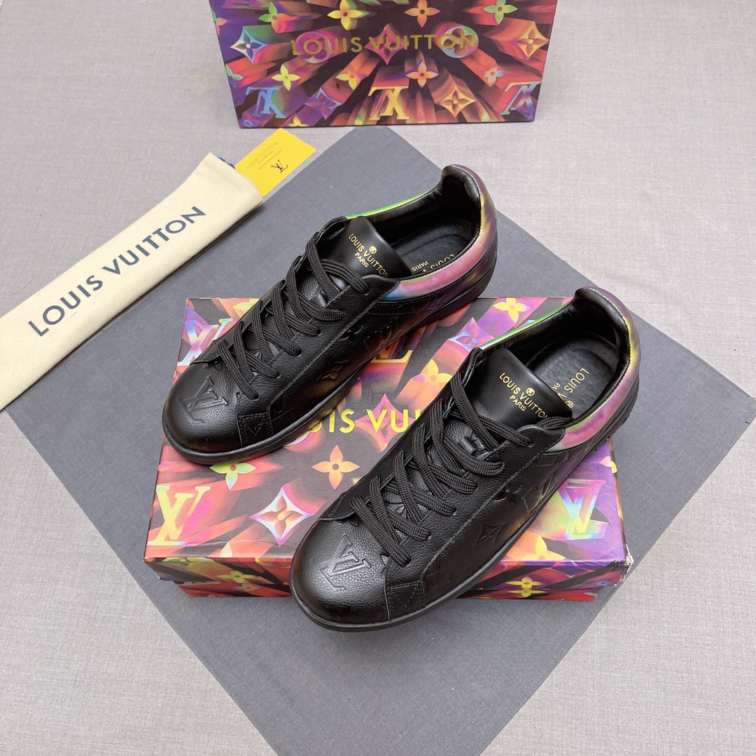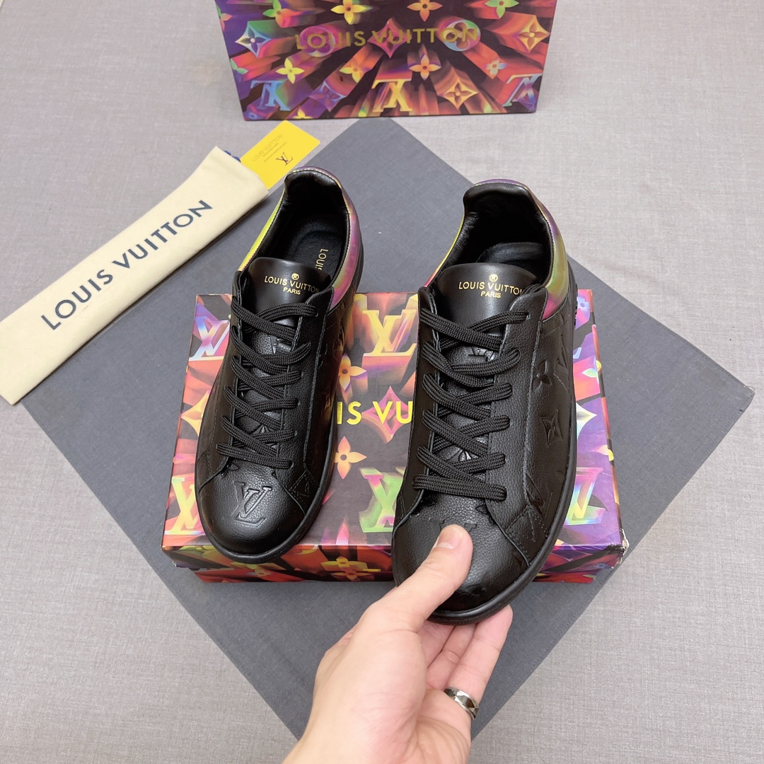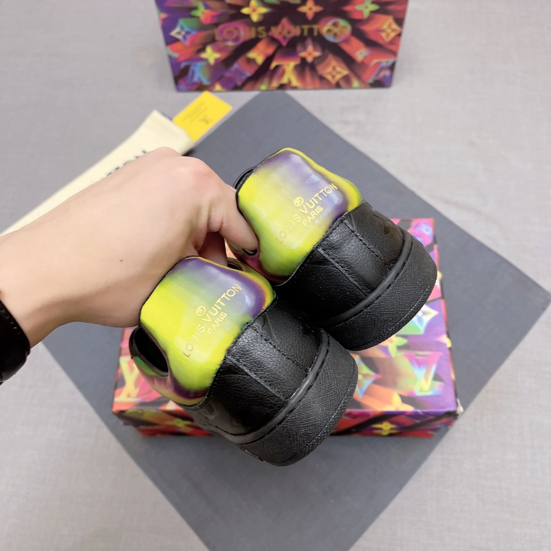 这款鞋子是AAAAA 1:1 质量 (非常棒). 使用了和原版一模一样的材料. 商标部分也保持了和路易威登/Louis Vuitton一样. 图片拍摄是实物鞋子拍摄, 您所收到的实物保证和我们图片一模一样.