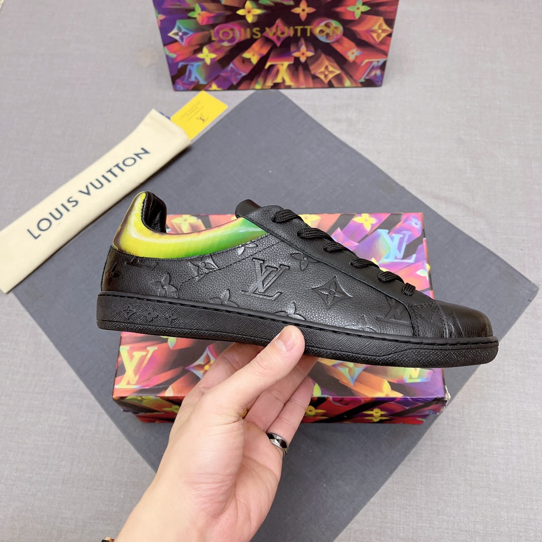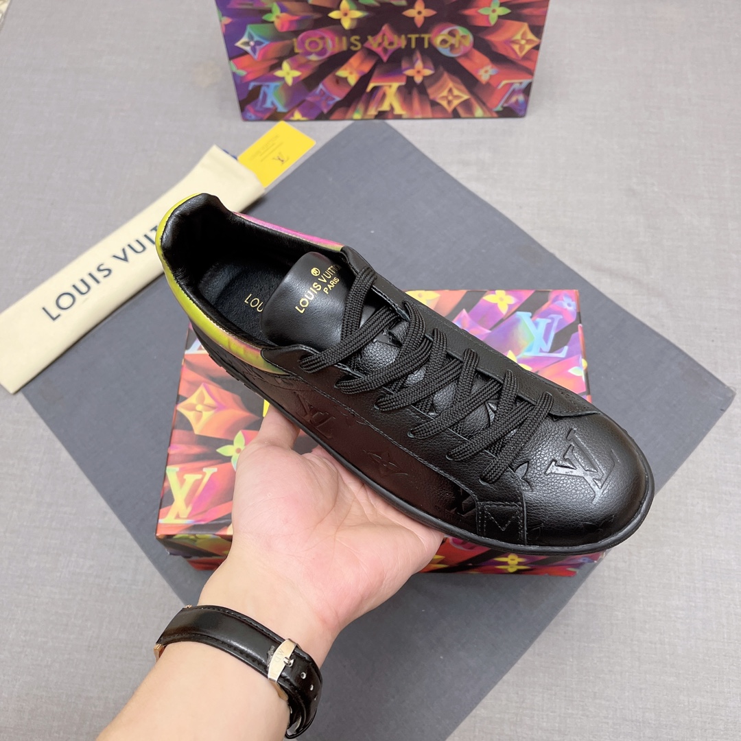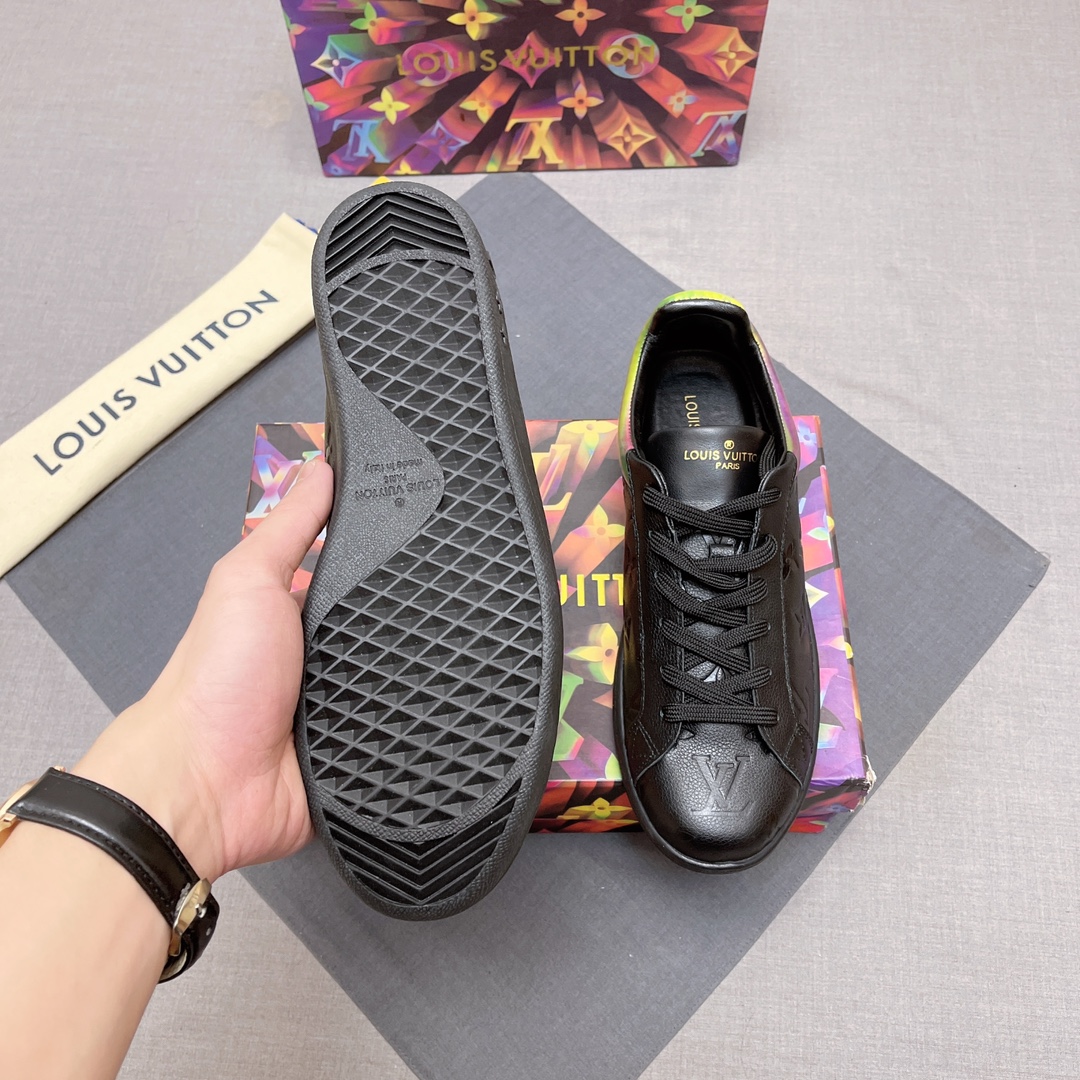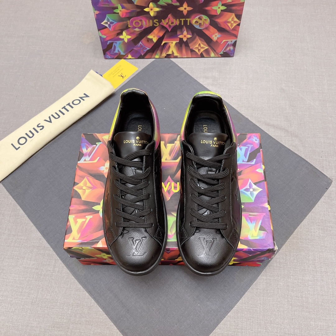 这款鞋子是AAAAA 1:1 质量 (非常棒). 使用了和原版一模一样的材料. 商标部分也保持了和路易威登/Louis Vuitton一样. 图片拍摄是实物鞋子拍摄, 您所收到的实物保证和我们图片一模一样.