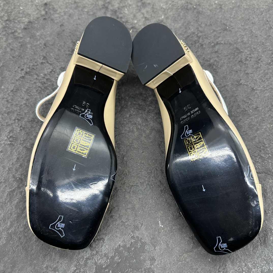 这款鞋子是AAAAA 1:1 质量 (非常棒). 使用了和原版一模一样的材料. 商标部分也保持了和缪缪/Miu Miu一样. 图片拍摄是实物鞋子拍摄, 您所收到的实物保证和我们图片一模一样.
