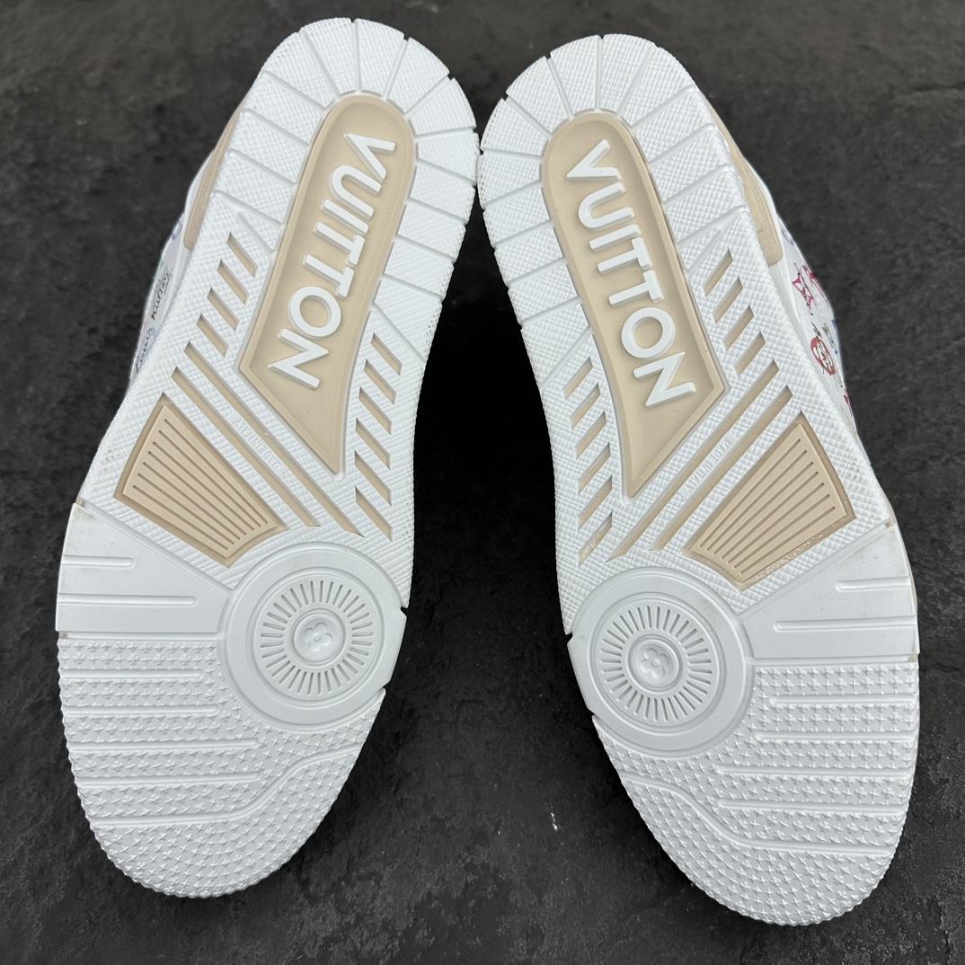 这款鞋子是AAAAA 1:1 质量 (非常棒). 使用了和原版一模一样的材料. 商标部分也保持了和路易威登/Louis Vuitton一样. 图片拍摄是实物鞋子拍摄, 您所收到的实物保证和我们图片一模一样.