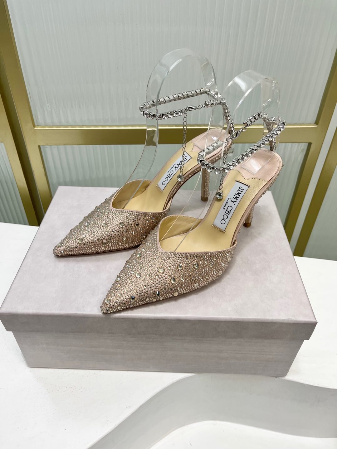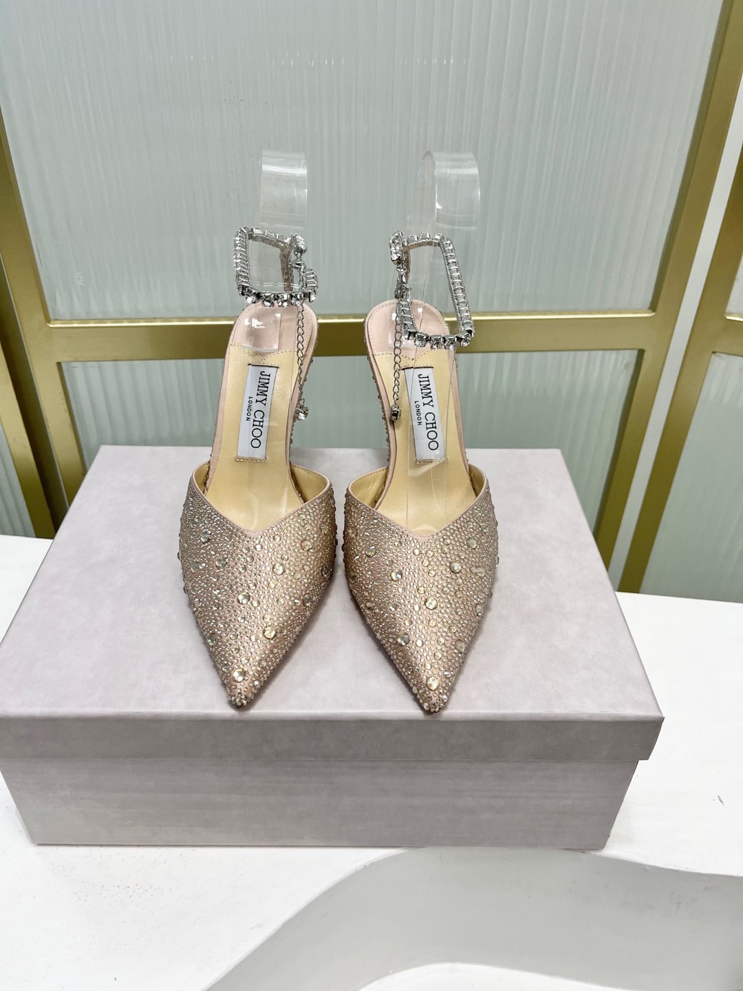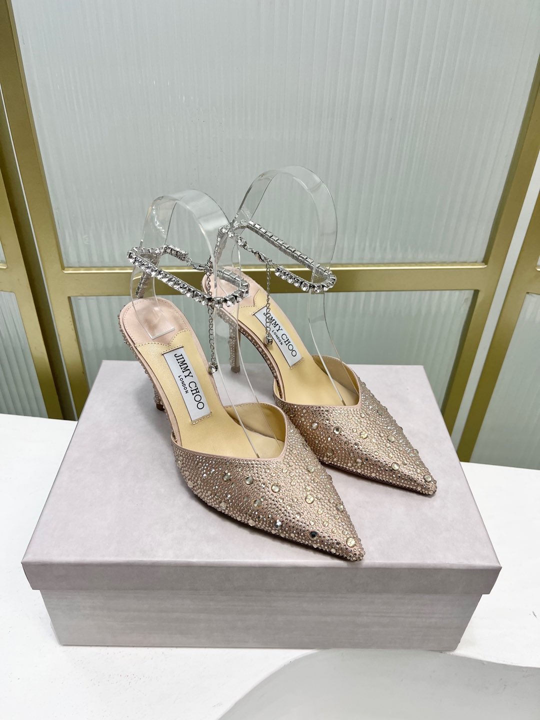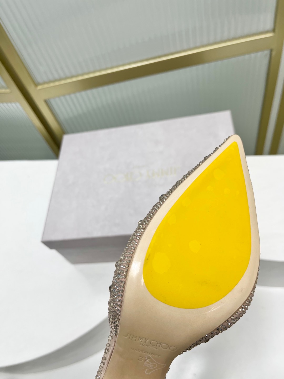 这款鞋子是AAAAA 1:1 质量 (非常棒). 使用了和原版一模一样的材料. 商标部分也保持了和吉米乔/JIMMY CHOO一样. 图片拍摄是实物鞋子拍摄, 您所收到的实物保证和我们图片一模一样.