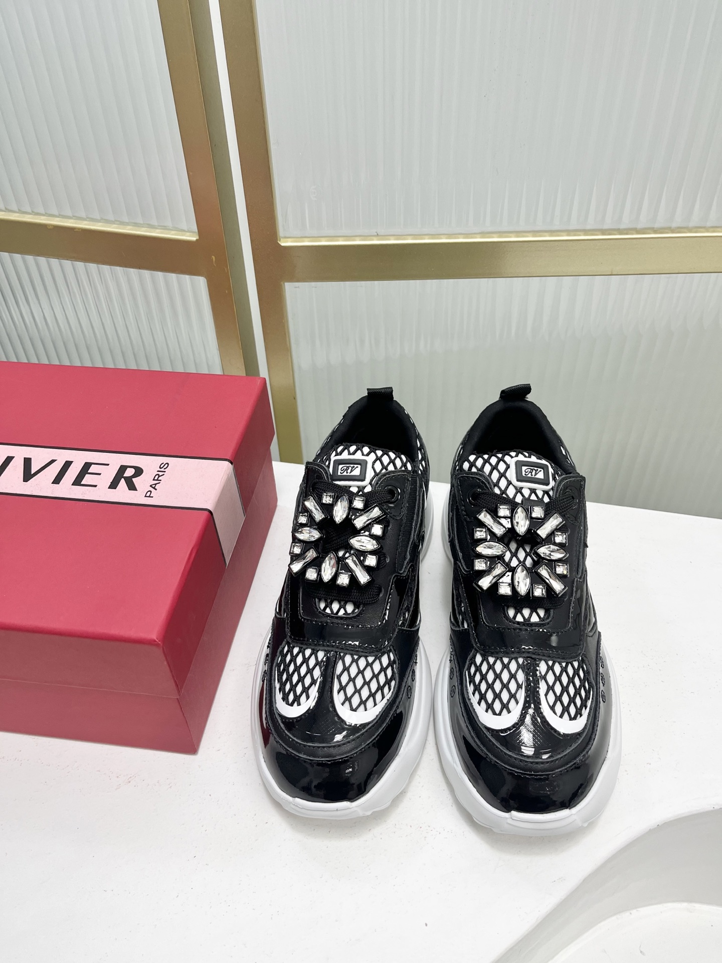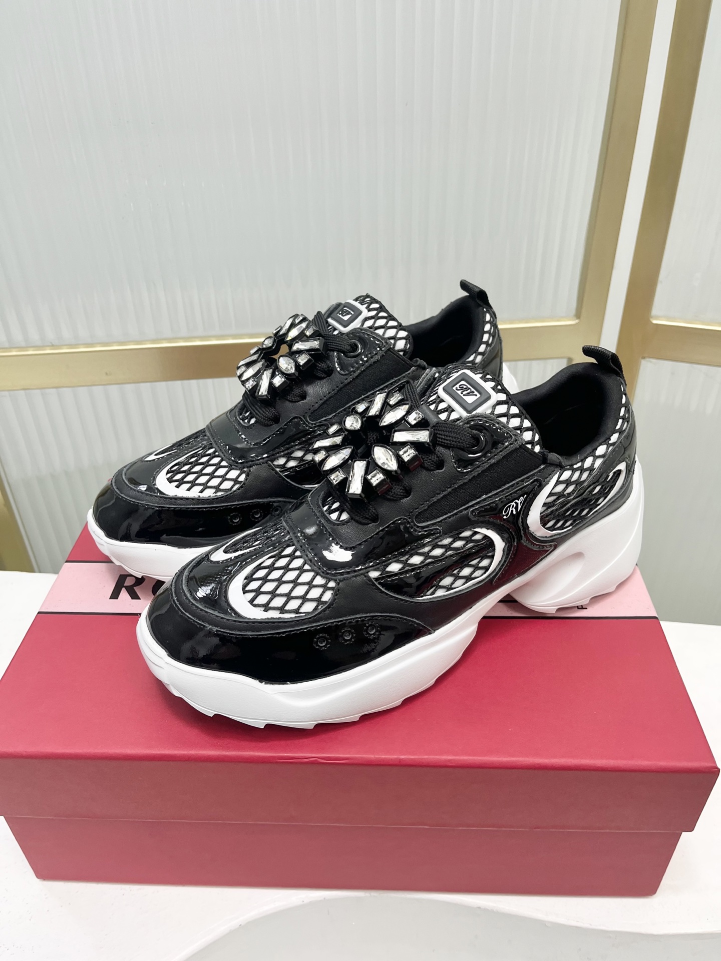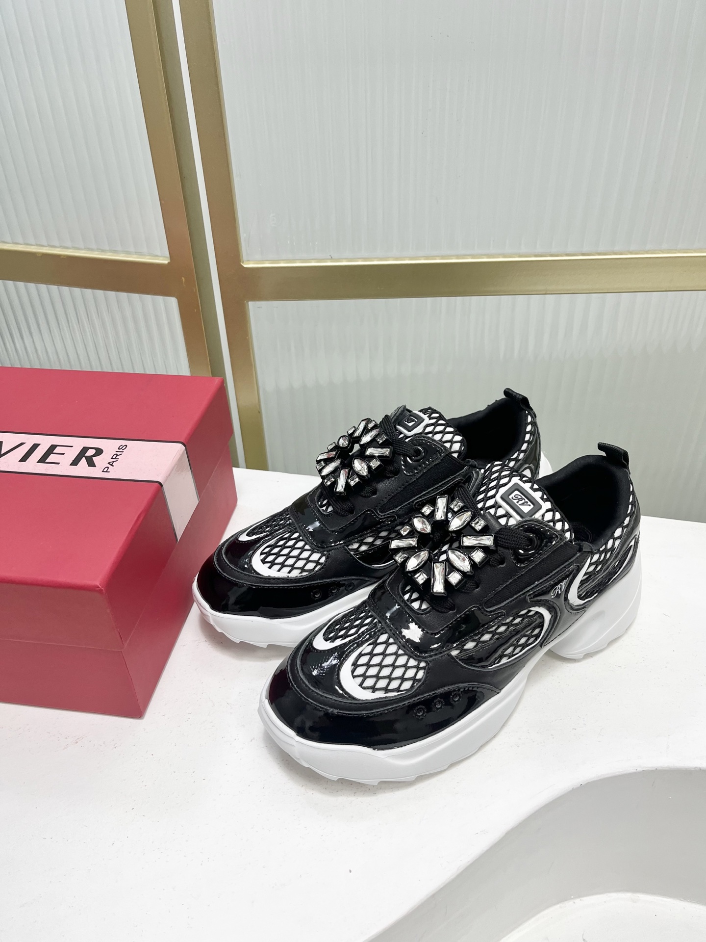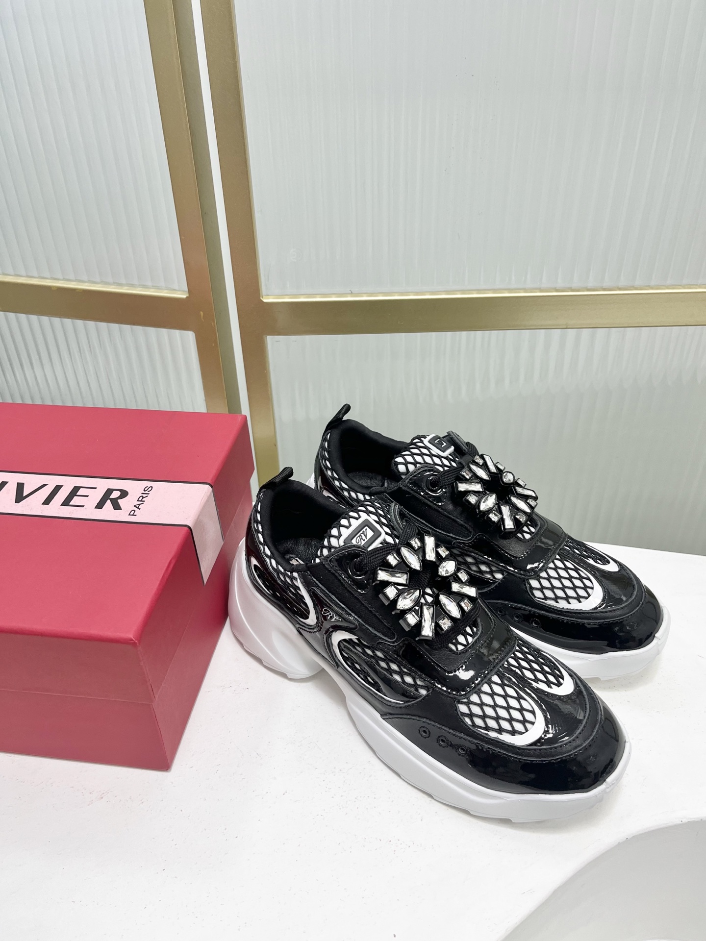 这款鞋子是AAAAA 1:1 质量 (非常棒). 使用了和原版一模一样的材料. 商标部分也保持了和罗杰维维耶/Roger Vivier一样. 图片拍摄是实物鞋子拍摄, 您所收到的实物保证和我们图片一模一样.