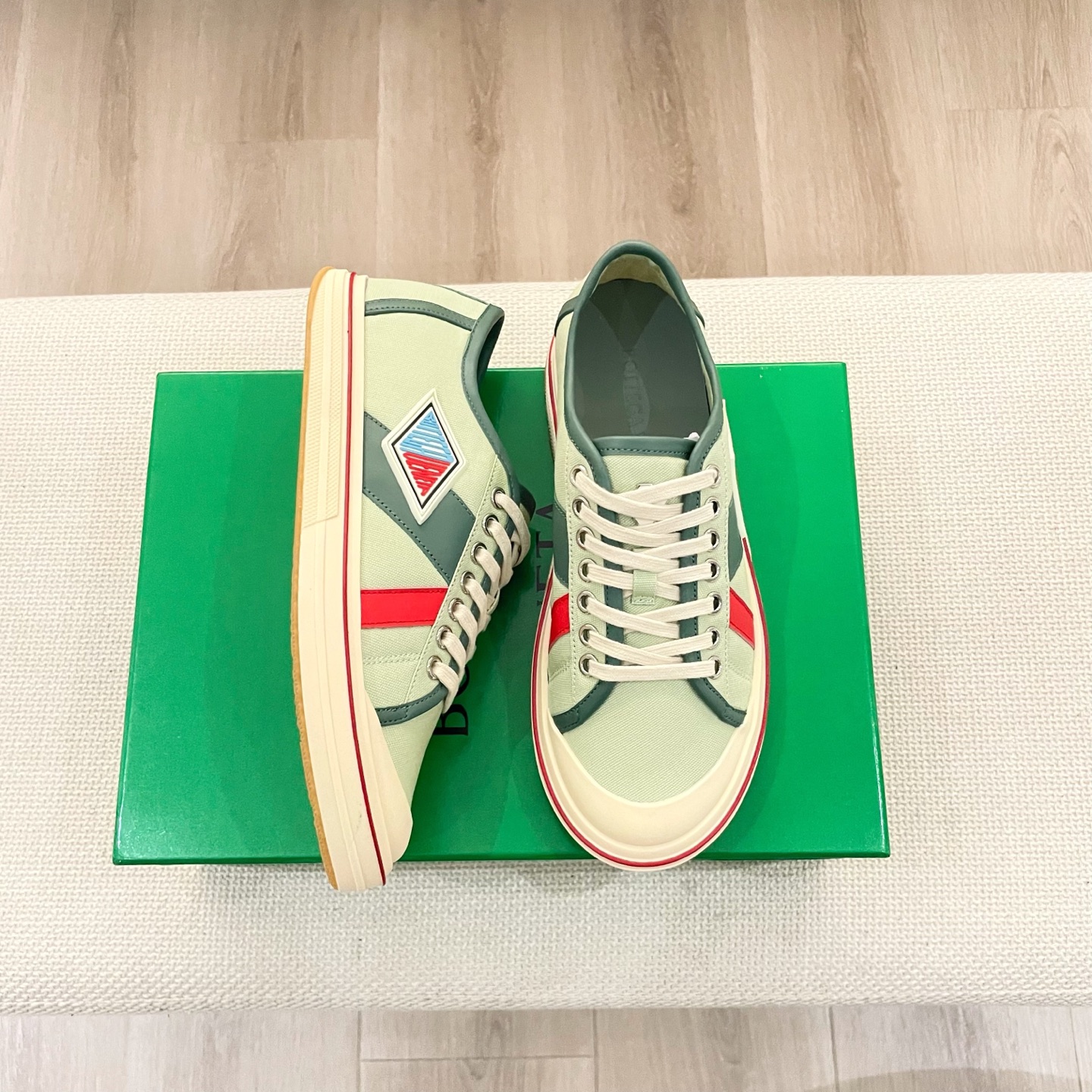这款鞋子是AAAAA 1:1 质量 (非常棒). 使用了和原版一模一样的材料. 商标部分也保持了和葆蝶家/Bottega Veneta一样. 图片拍摄是实物鞋子拍摄, 您所收到的实物保证和我们图片一模一样.