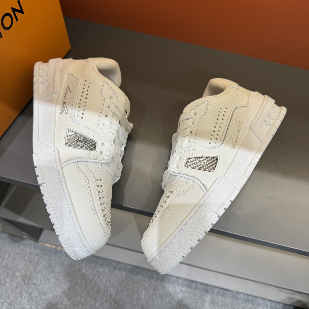 这款鞋子是AAAAA 1:1 质量 (非常棒). 使用了和原版一模一样的材料. 商标部分也保持了和路易威登/Louis Vuitton一样. 图片拍摄是实物鞋子拍摄, 您所收到的实物保证和我们图片一模一样.
