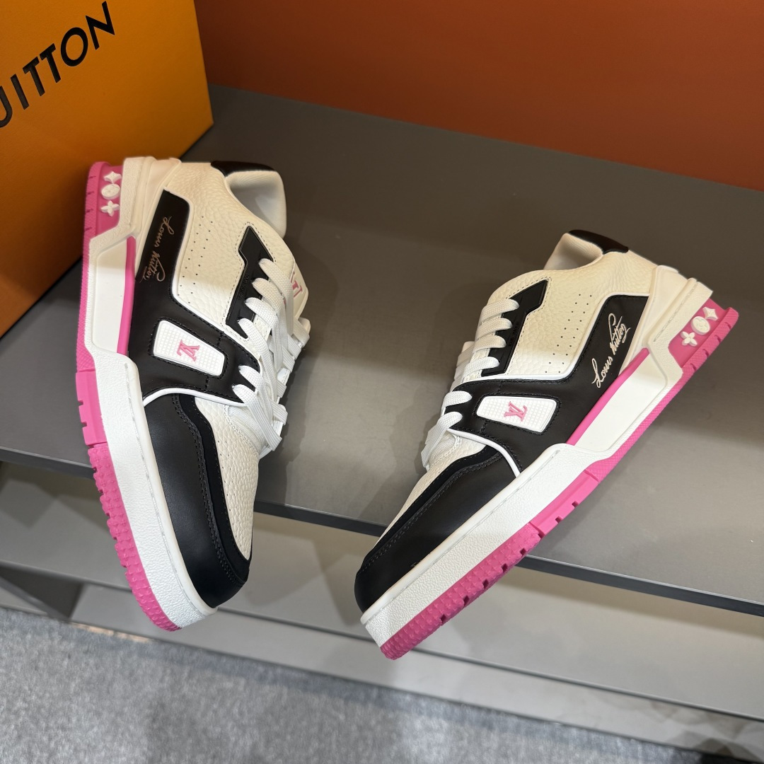 这款鞋子是AAAAA 1:1 质量 (非常棒). 使用了和原版一模一样的材料. 商标部分也保持了和路易威登/Louis Vuitton一样. 图片拍摄是实物鞋子拍摄, 您所收到的实物保证和我们图片一模一样.