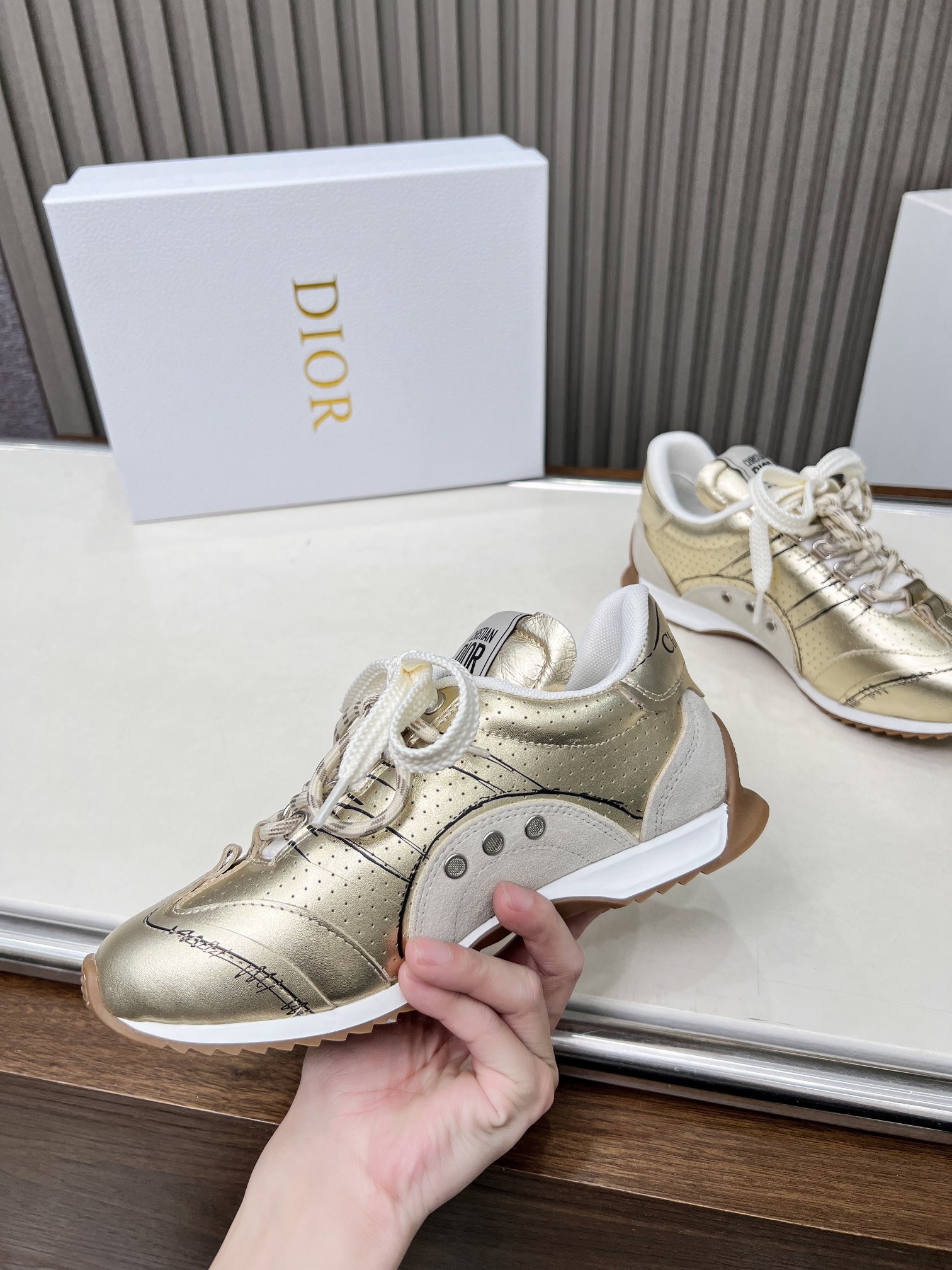 这款鞋子是AAAAA 1:1 质量 (非常棒). 使用了和原版一模一样的材料. 商标部分也保持了和迪奥/Dior一样. 图片拍摄是实物鞋子拍摄, 您所收到的实物保证和我们图片一模一样.