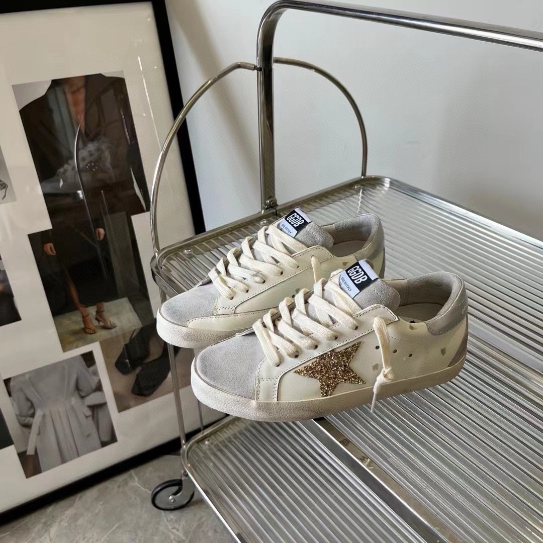 这款鞋子是AAAAA 1:1 质量 (非常棒). 使用了和原版一模一样的材料. 商标部分也保持了和Golden Goose一样. 图片拍摄是实物鞋子拍摄, 您所收到的实物保证和我们图片一模一样.