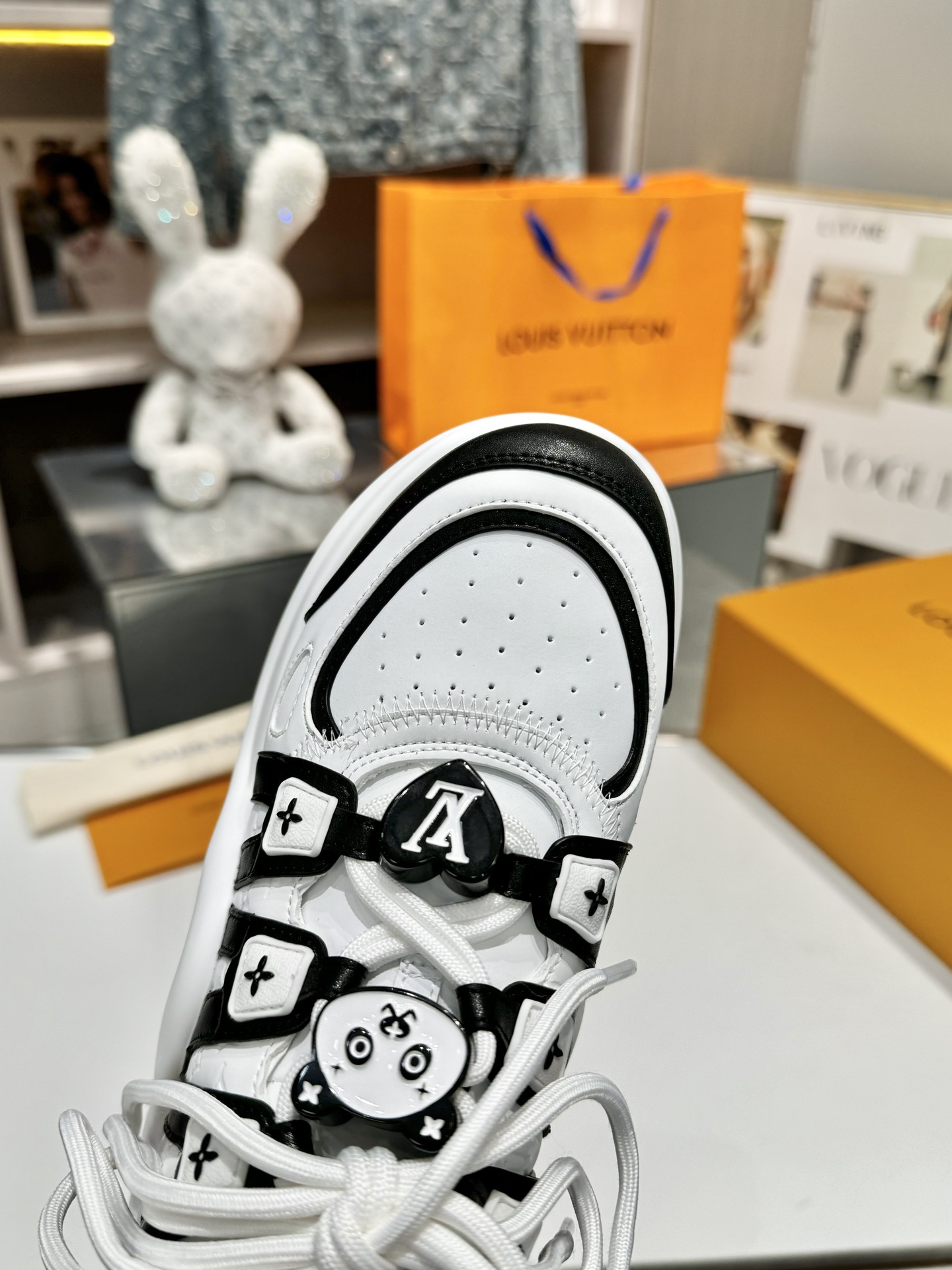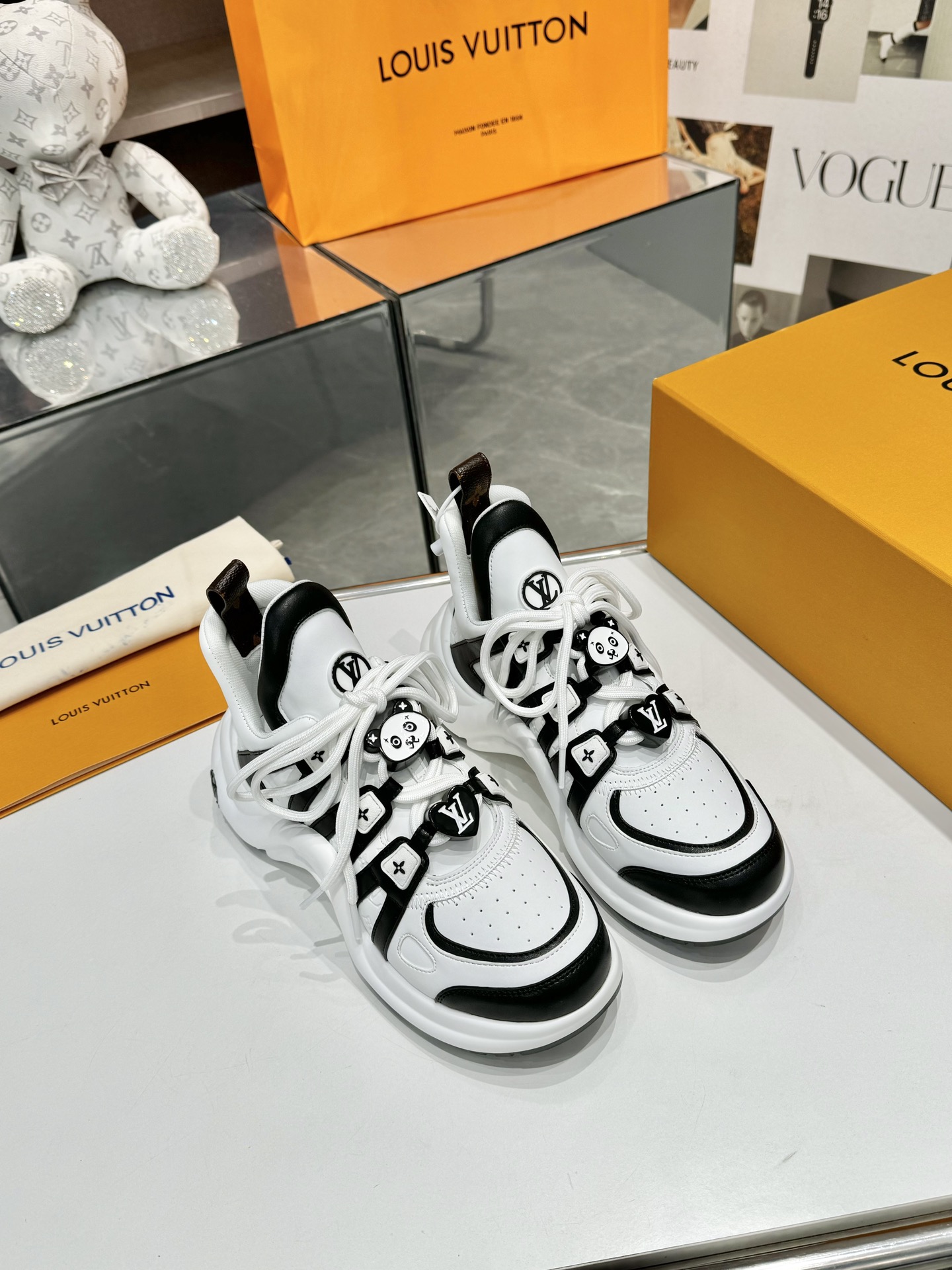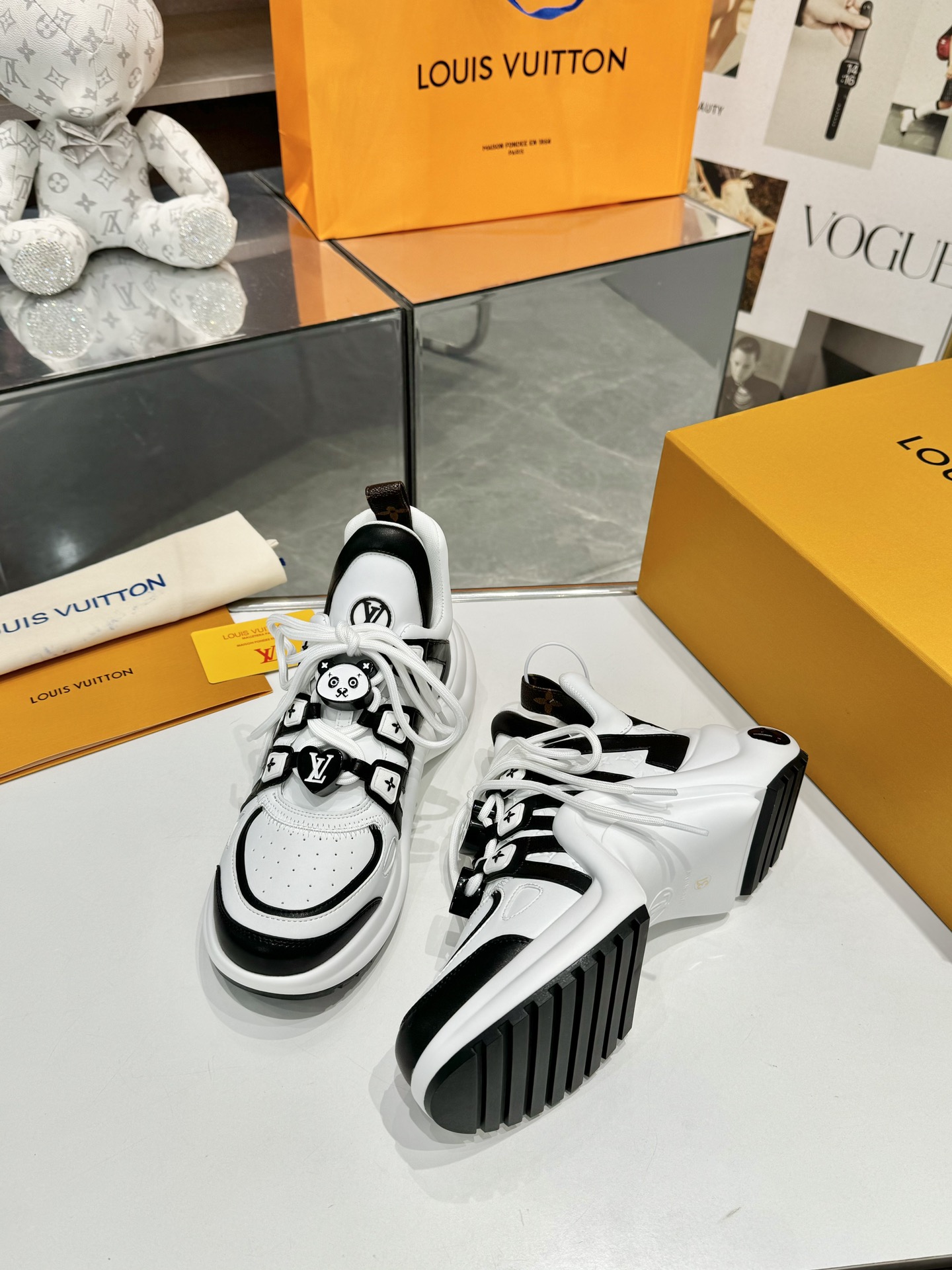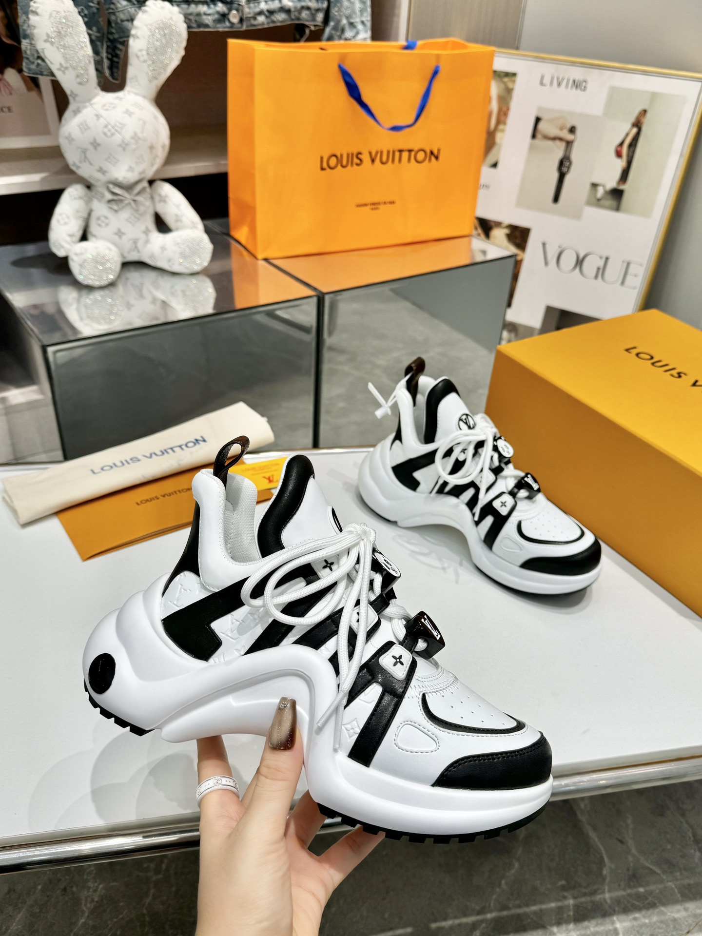 这款鞋子是AAAAA 1:1 质量 (非常棒). 使用了和原版一模一样的材料. 商标部分也保持了和路易威登/Louis Vuitton一样. 图片拍摄是实物鞋子拍摄, 您所收到的实物保证和我们图片一模一样.