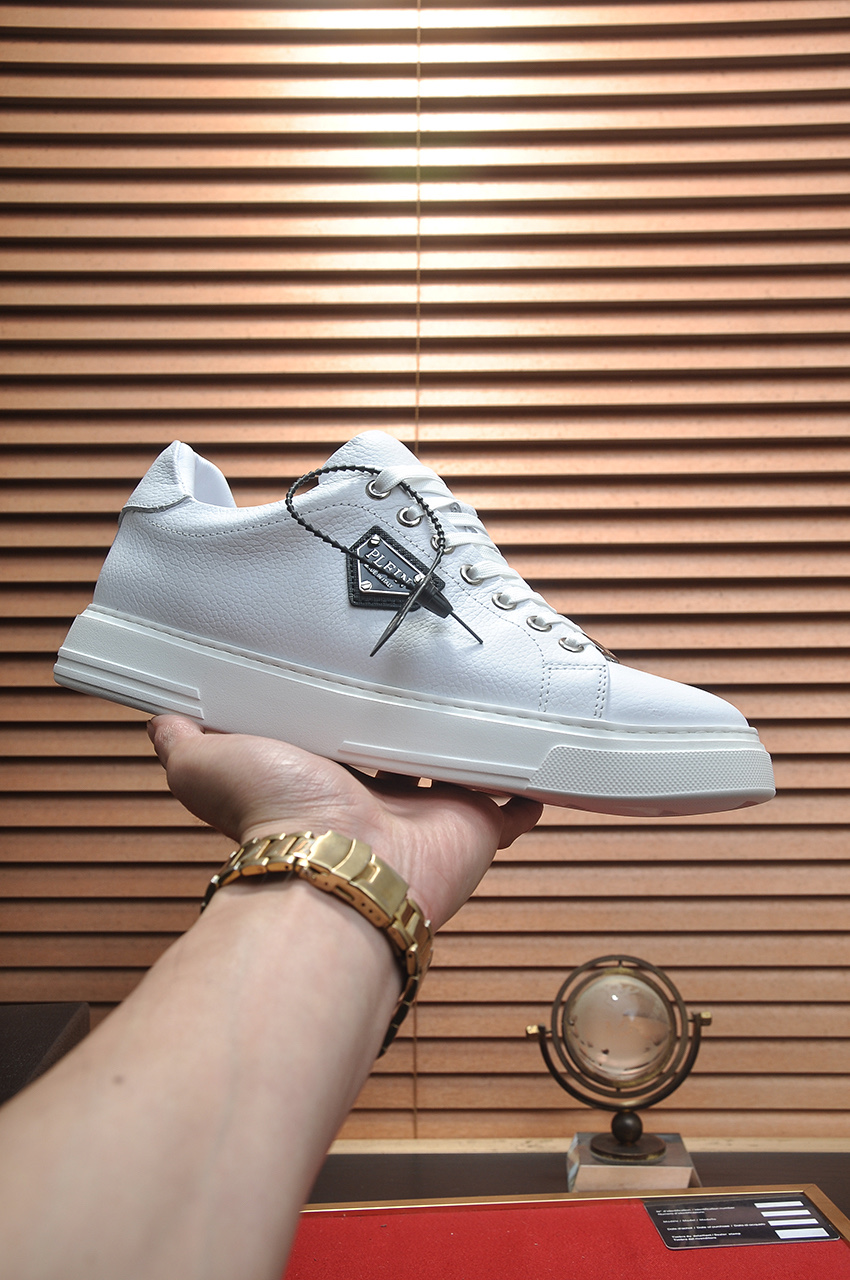 这款鞋子是AAAAA 1:1 质量 (非常棒). 使用了和原版一模一样的材料. 商标部分也保持了和菲利普·普林/Philipp Plein一样. 图片拍摄是实物鞋子拍摄, 您所收到的实物保证和我们图片一模一样.