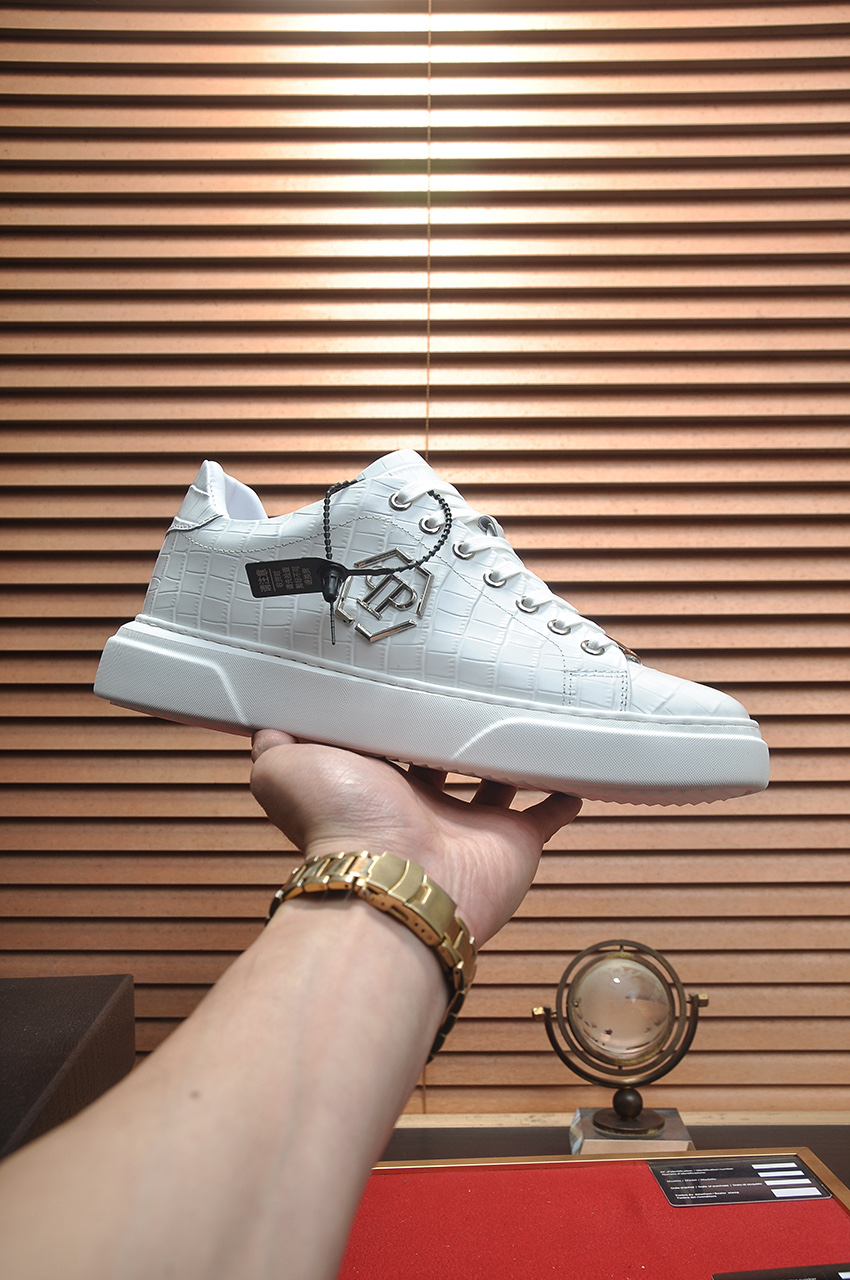 这款鞋子是AAAAA 1:1 质量 (非常棒). 使用了和原版一模一样的材料. 商标部分也保持了和菲利普·普林/Philipp Plein一样. 图片拍摄是实物鞋子拍摄, 您所收到的实物保证和我们图片一模一样.