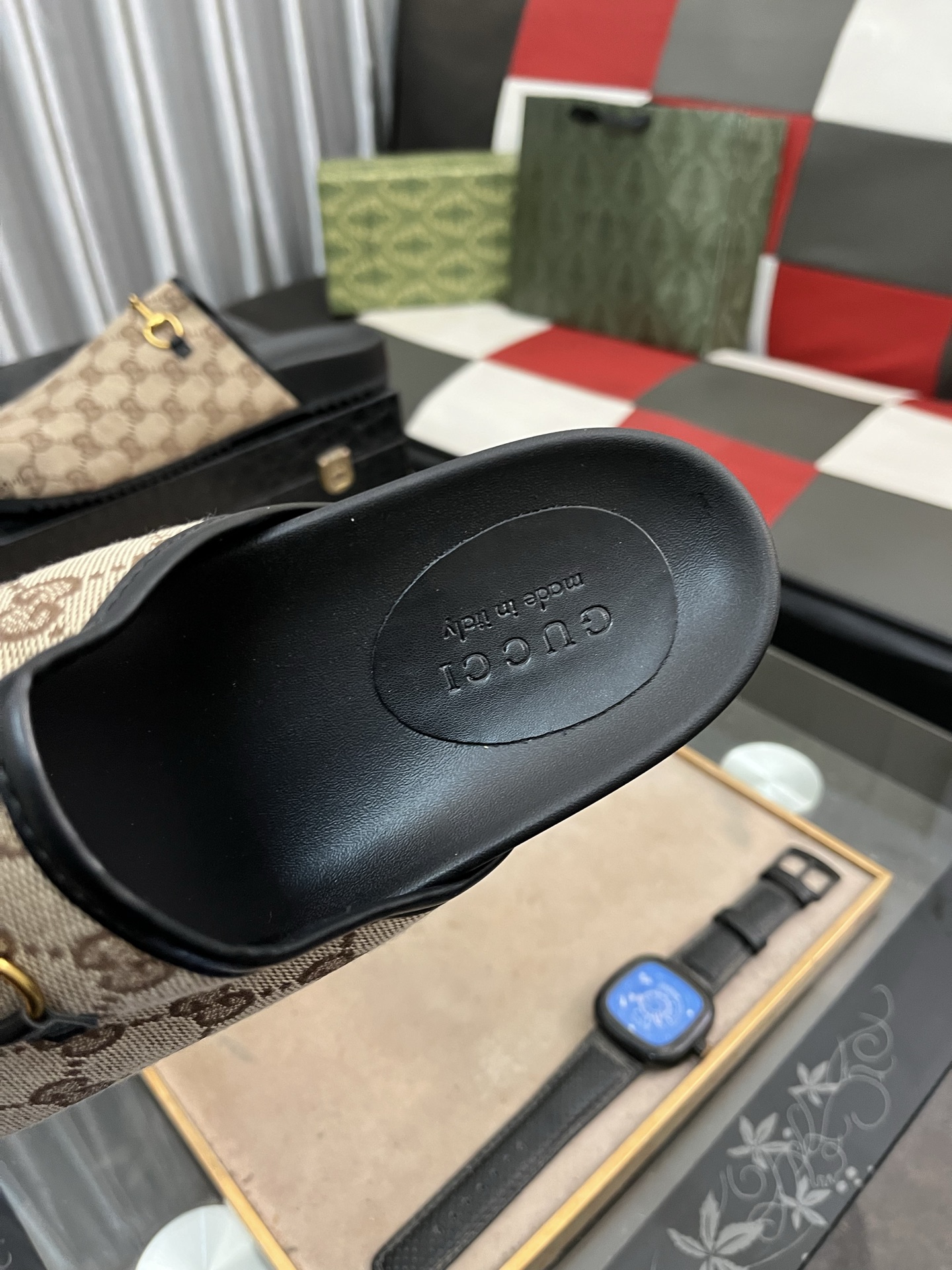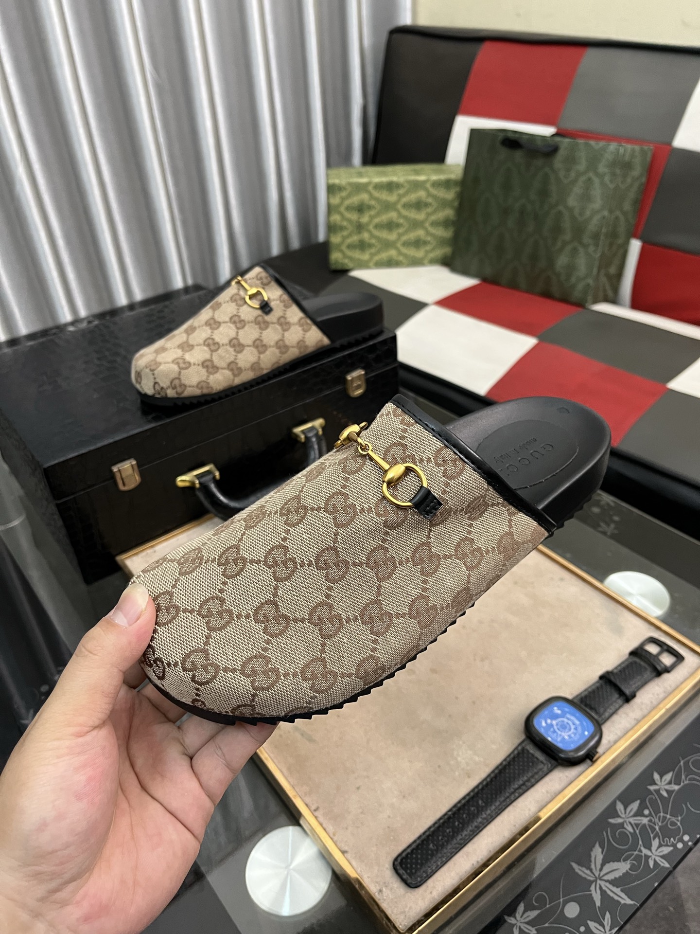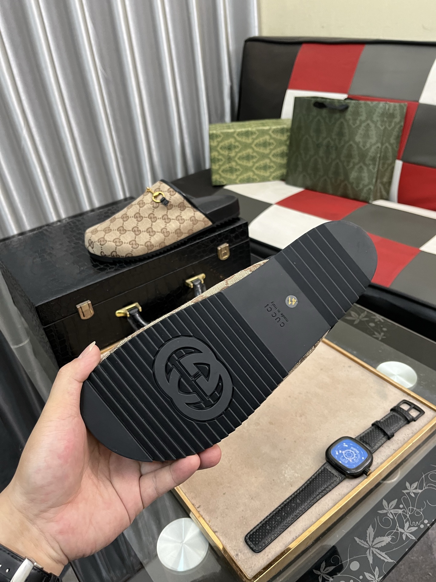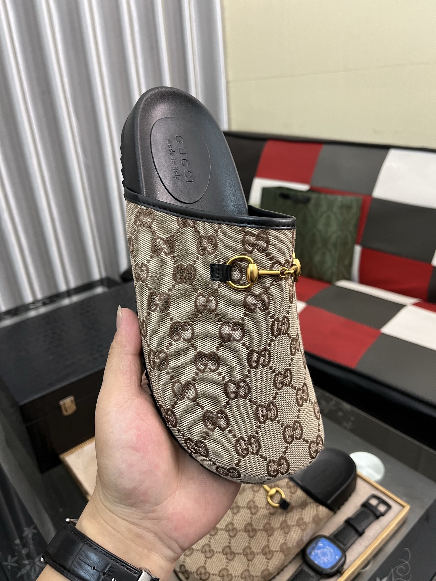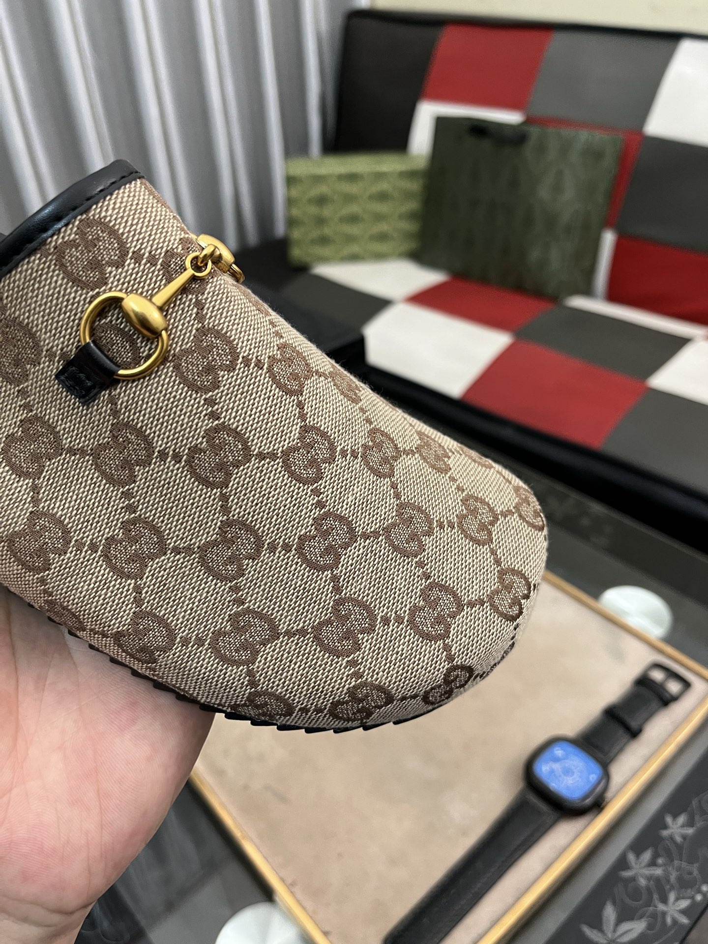 这款鞋子是AAAAA 1:1 质量 (非常棒). 使用了和原版一模一样的材料. 商标部分也保持了和古奇/Gucci一样. 图片拍摄是实物鞋子拍摄, 您所收到的实物保证和我们图片一模一样.