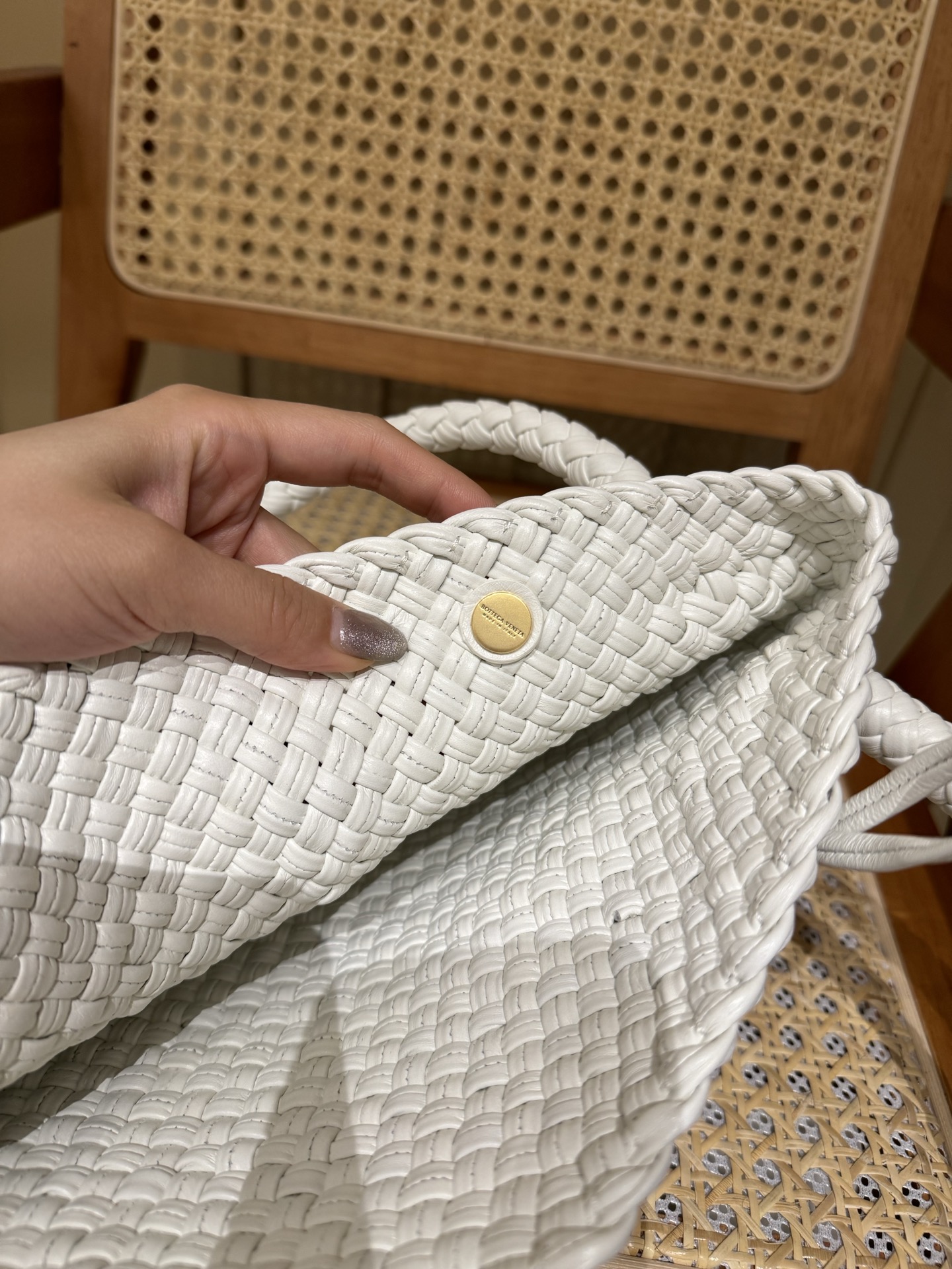 这款包包是AAAAA 1:1 质量 (非常棒). 使用了和原版一模一样的材料. 商标部分也保持了和葆蝶家/Bottega Veneta一样. 图片拍摄是实物包包拍摄, 您所收到的实物保证和我们图片一模一样.