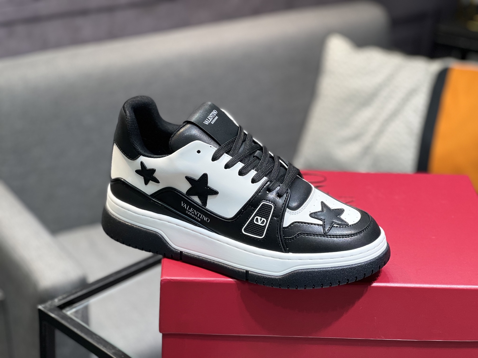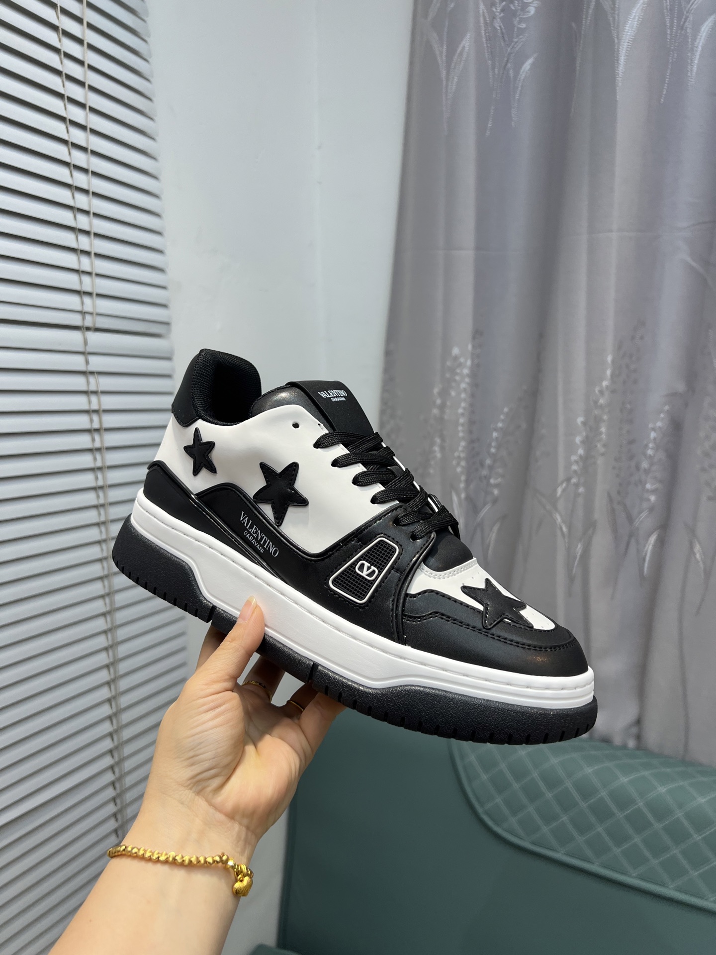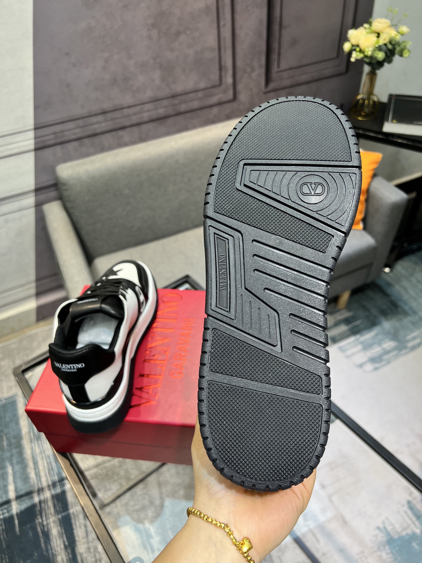 这款鞋子是AAAAA 1:1 质量 (非常棒). 使用了和原版一模一样的材料. 商标部分也保持了和华伦天奴/Valentino一样. 图片拍摄是实物鞋子拍摄, 您所收到的实物保证和我们图片一模一样.