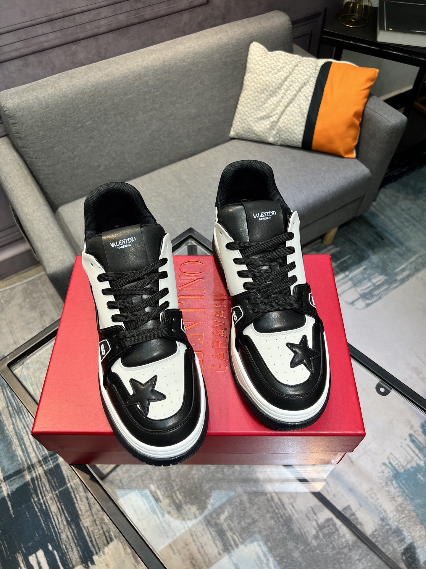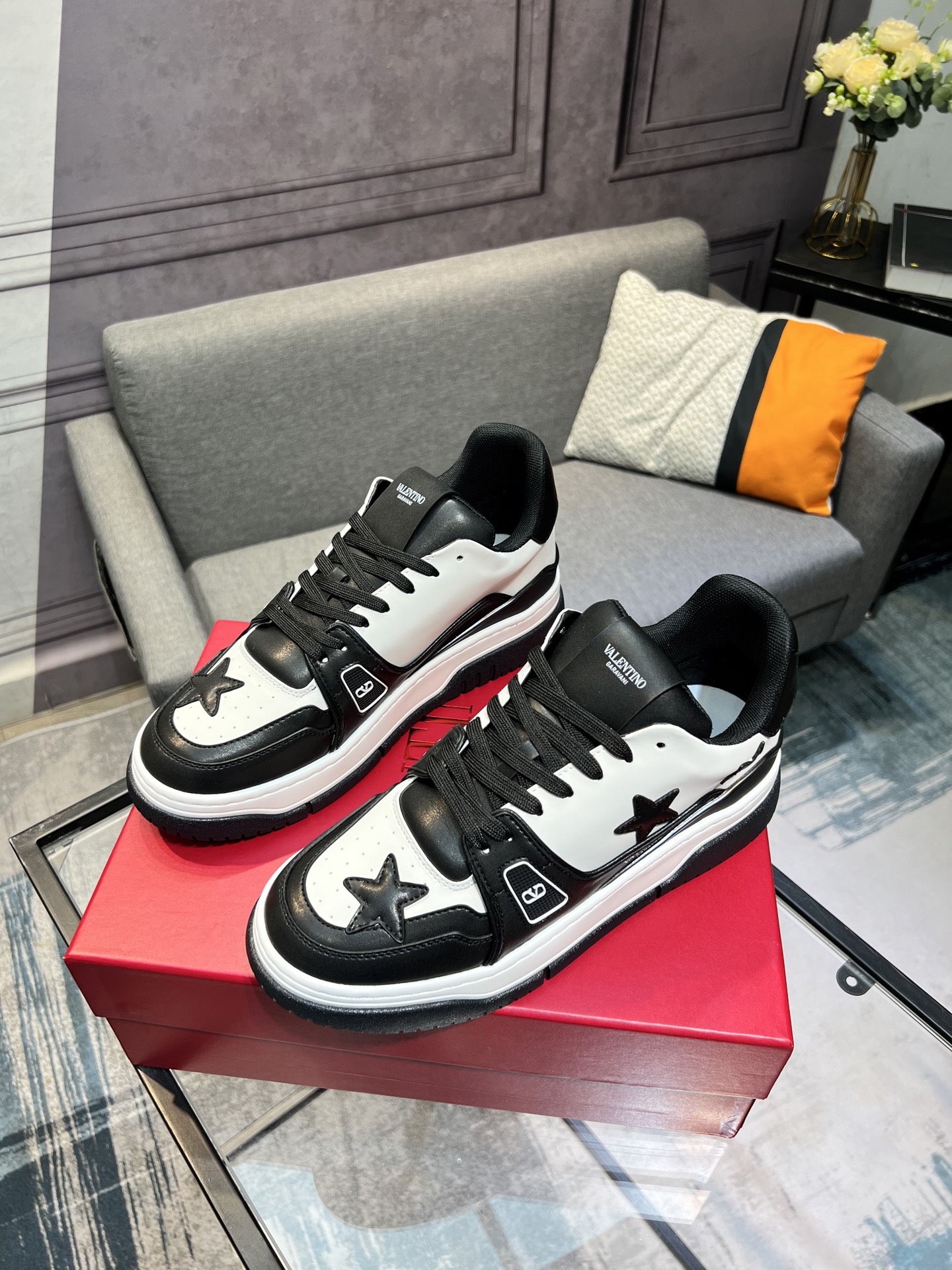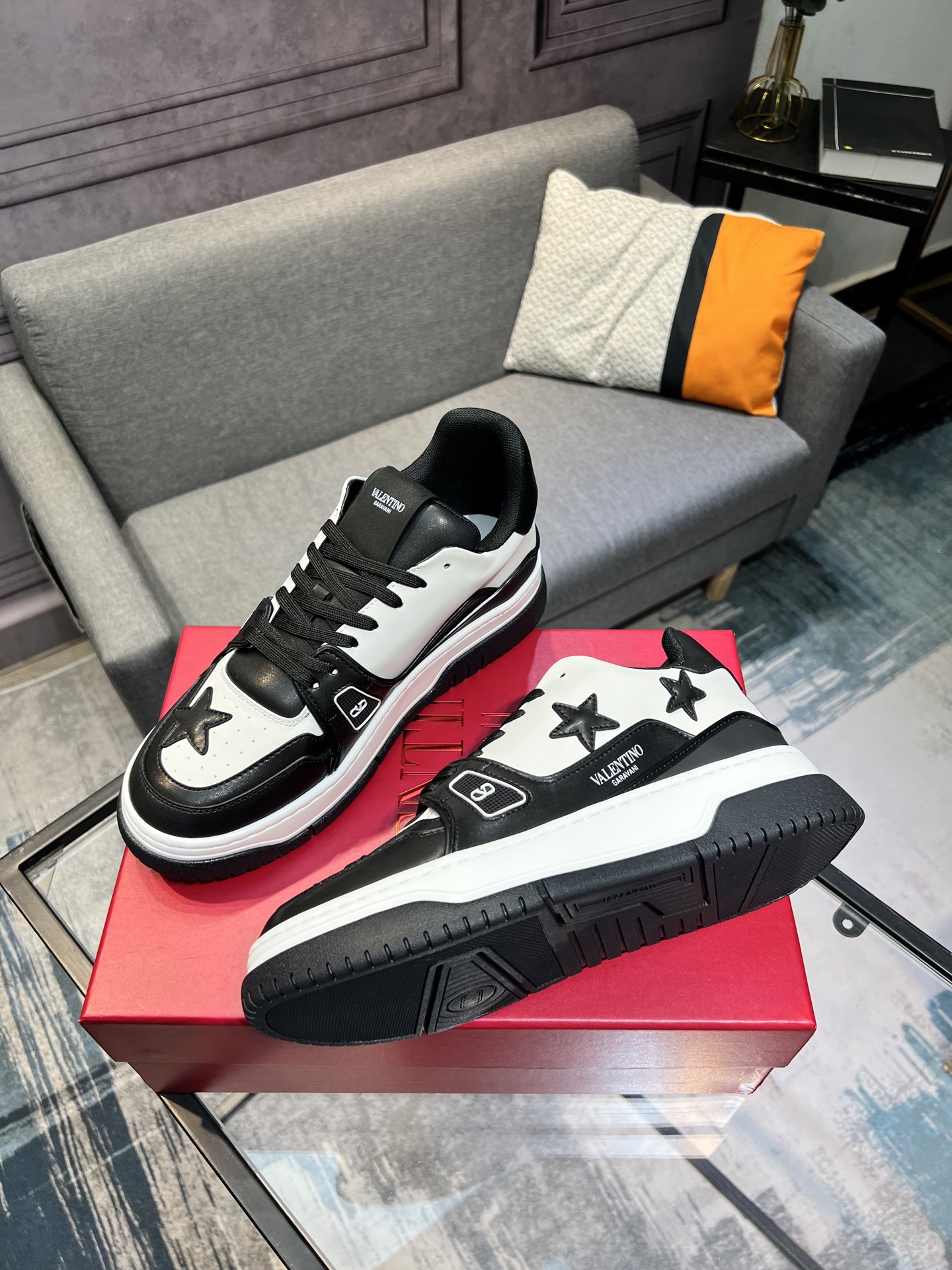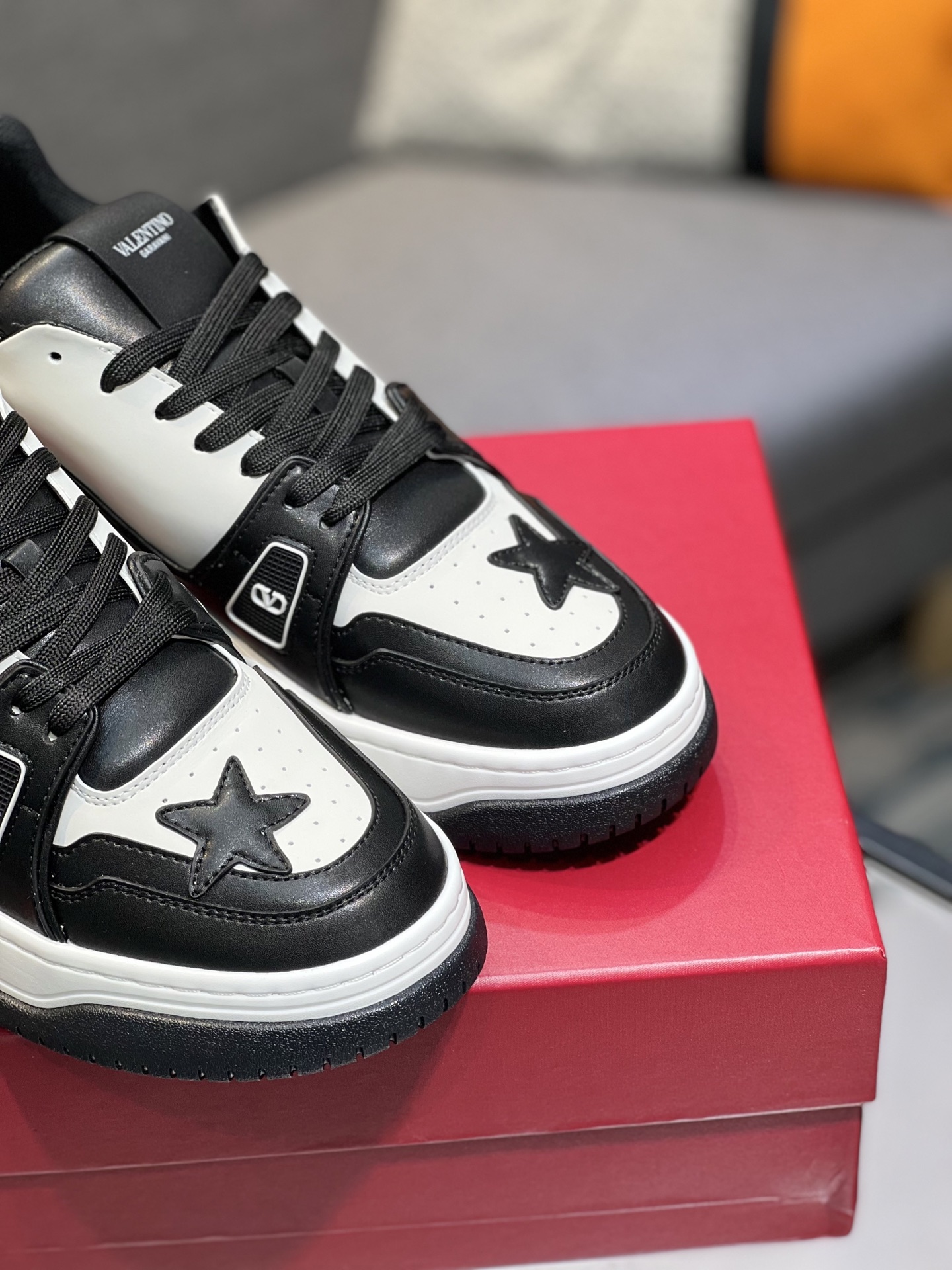 这款鞋子是AAAAA 1:1 质量 (非常棒). 使用了和原版一模一样的材料. 商标部分也保持了和华伦天奴/Valentino一样. 图片拍摄是实物鞋子拍摄, 您所收到的实物保证和我们图片一模一样.