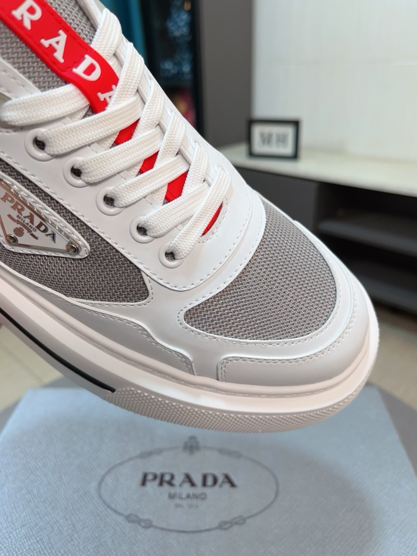 这款鞋子是AAAAA 1:1 质量 (非常棒). 使用了和原版一模一样的材料. 商标部分也保持了和普拉达/Prada一样. 图片拍摄是实物鞋子拍摄, 您所收到的实物保证和我们图片一模一样.