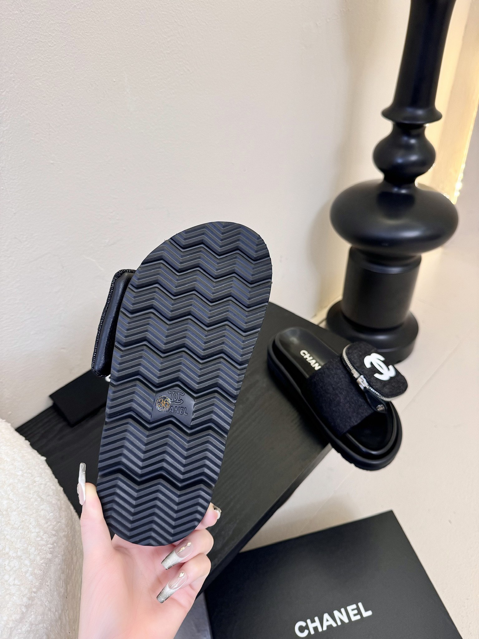 这款鞋子是AAAAA 1:1 质量 (非常棒). 使用了和原版一模一样的材料. 商标部分也保持了和香奈儿/Chanel一样. 图片拍摄是实物鞋子拍摄, 您所收到的实物保证和我们图片一模一样.