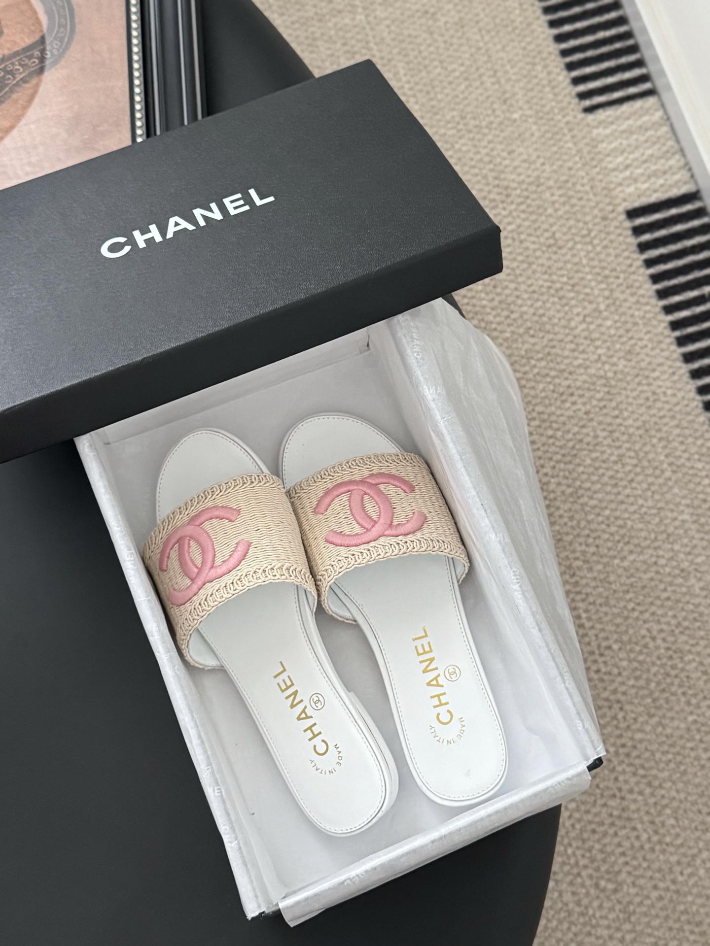 这款鞋子是AAAAA 1:1 质量 (非常棒). 使用了和原版一模一样的材料. 商标部分也保持了和香奈儿/Chanel一样. 图片拍摄是实物鞋子拍摄, 您所收到的实物保证和我们图片一模一样.
