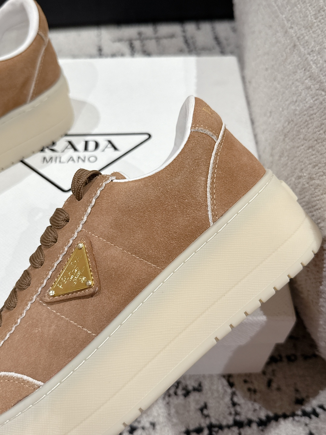 这款鞋子是AAAAA 1:1 质量 (非常棒). 使用了和原版一模一样的材料. 商标部分也保持了和普拉达/Prada一样. 图片拍摄是实物鞋子拍摄, 您所收到的实物保证和我们图片一模一样.