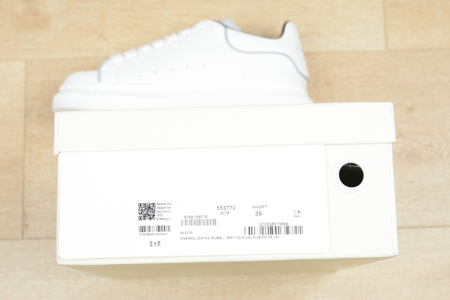 这款鞋子是AAAAA 1:1 质量 (非常棒). 使用了和原版一模一样的材料. 商标部分也保持了和亚历山大·麦昆/McQueen一样. 图片拍摄是实物鞋子拍摄, 您所收到的实物保证和我们图片一模一样.