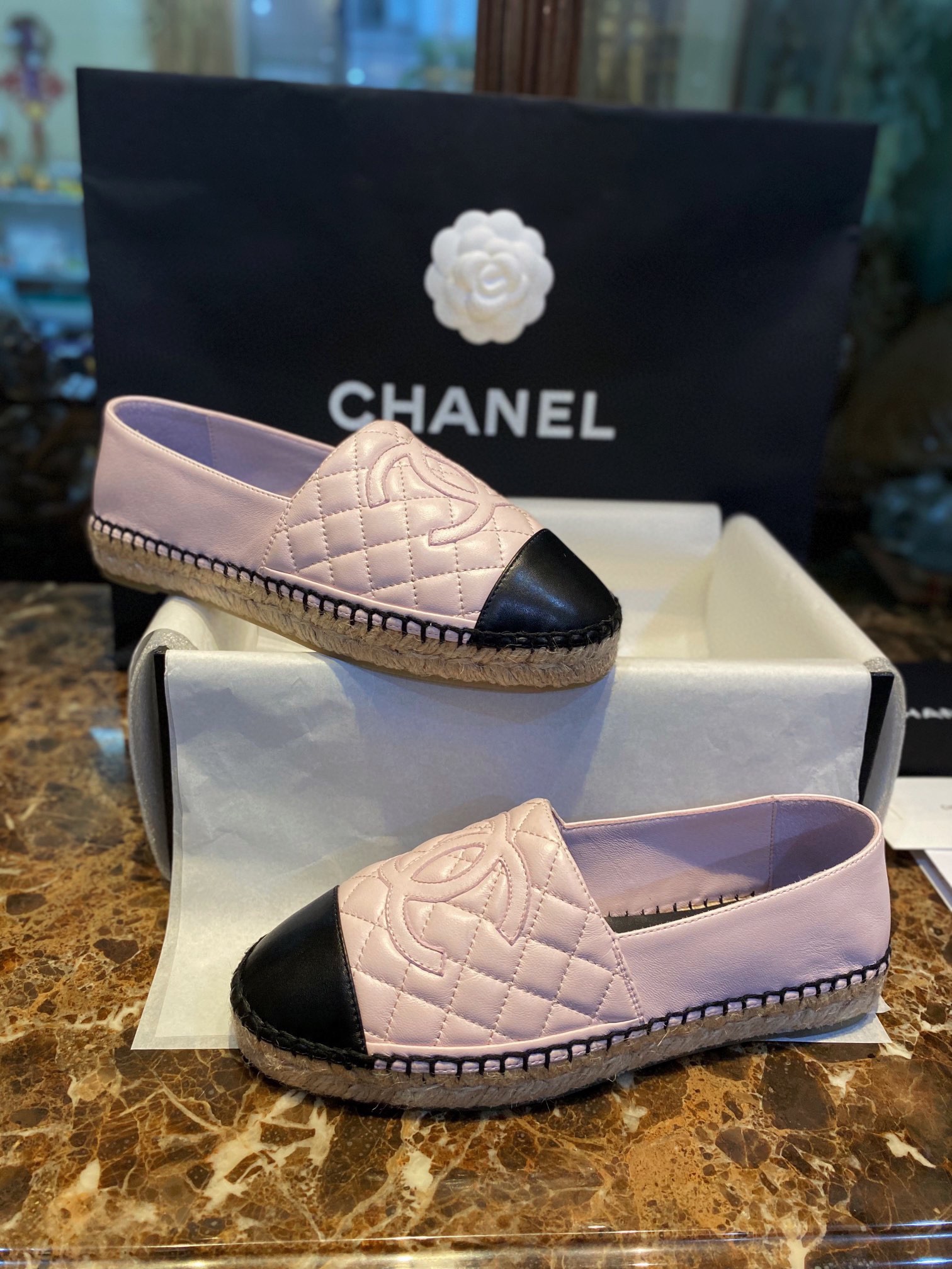 这款鞋子是AAAAA 1:1 质量 (非常棒). 使用了和原版一模一样的材料. 商标部分也保持了和香奈儿/Chanel一样. 图片拍摄是实物鞋子拍摄, 您所收到的实物保证和我们图片一模一样.
