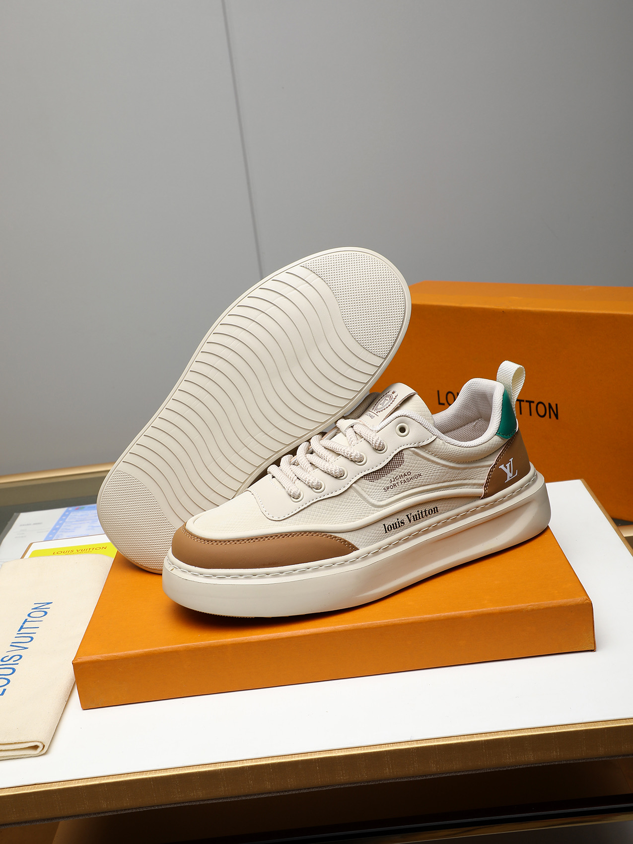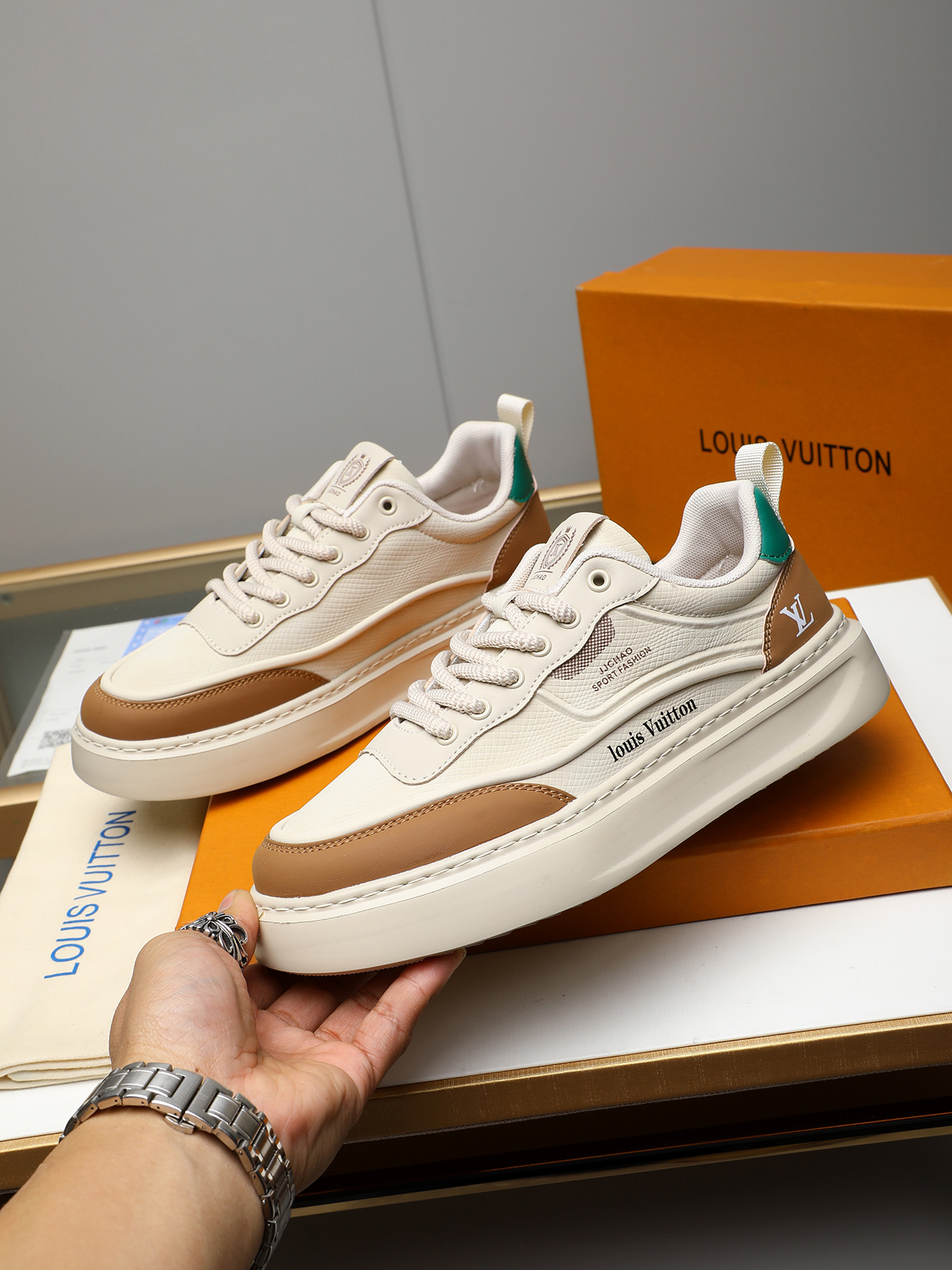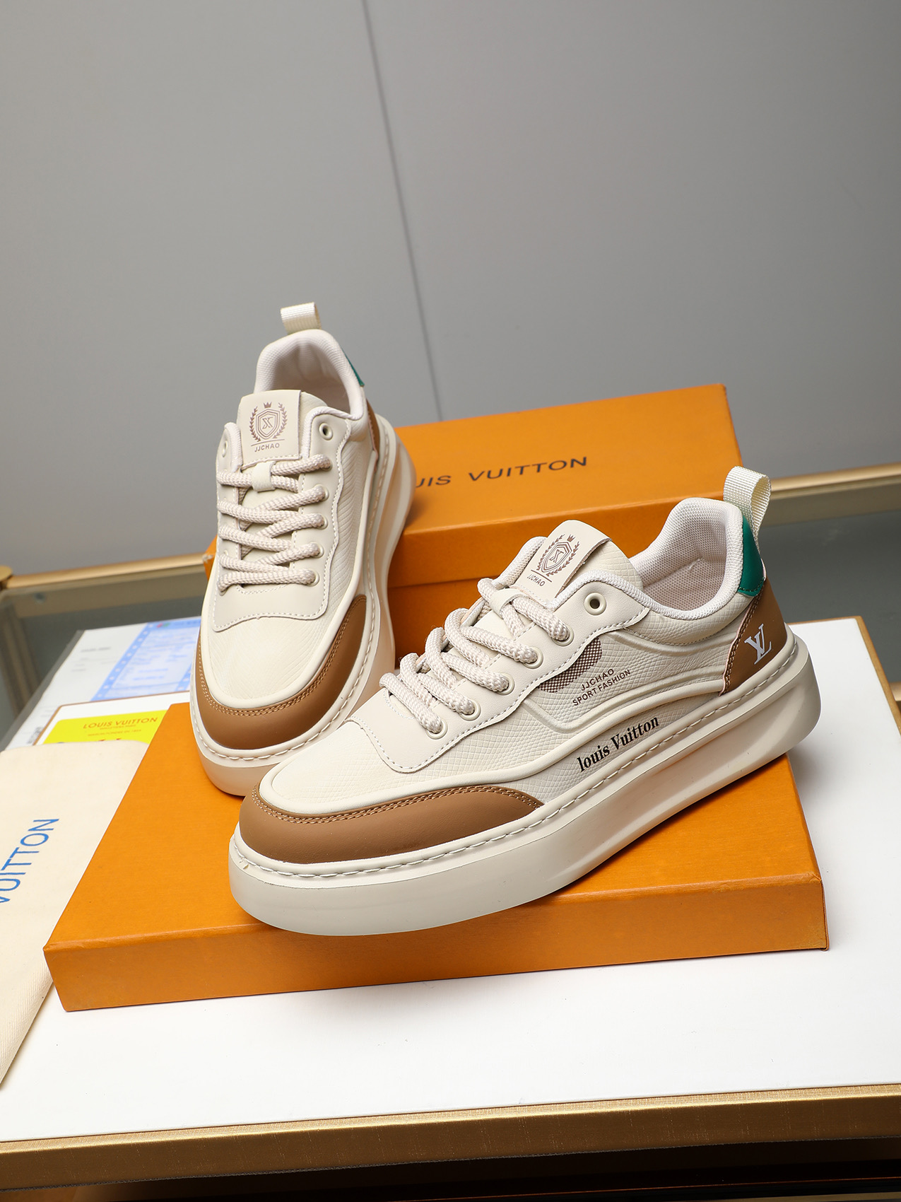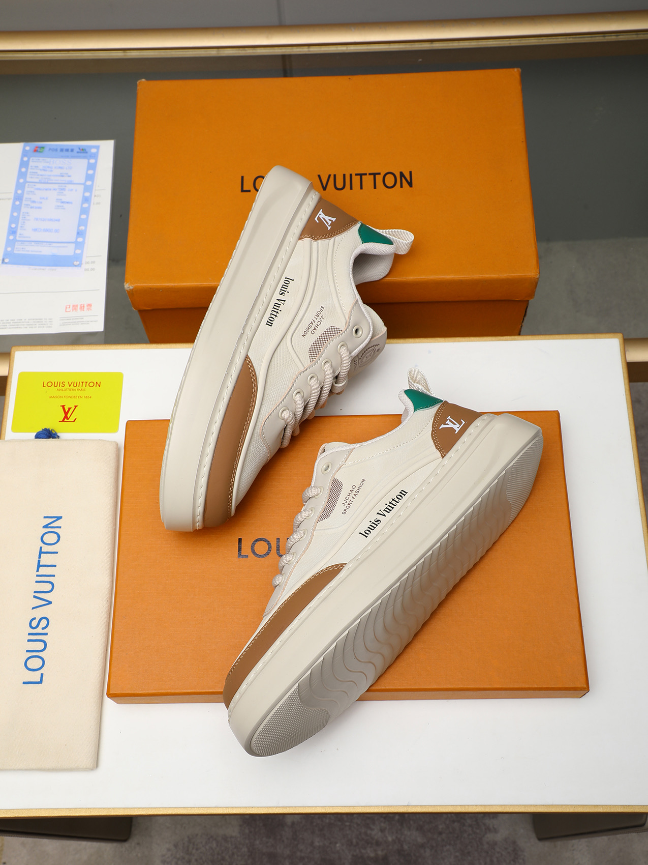 这款鞋子是AAAAA 1:1 质量 (非常棒). 使用了和原版一模一样的材料. 商标部分也保持了和路易威登/Louis Vuitton一样. 图片拍摄是实物鞋子拍摄, 您所收到的实物保证和我们图片一模一样.